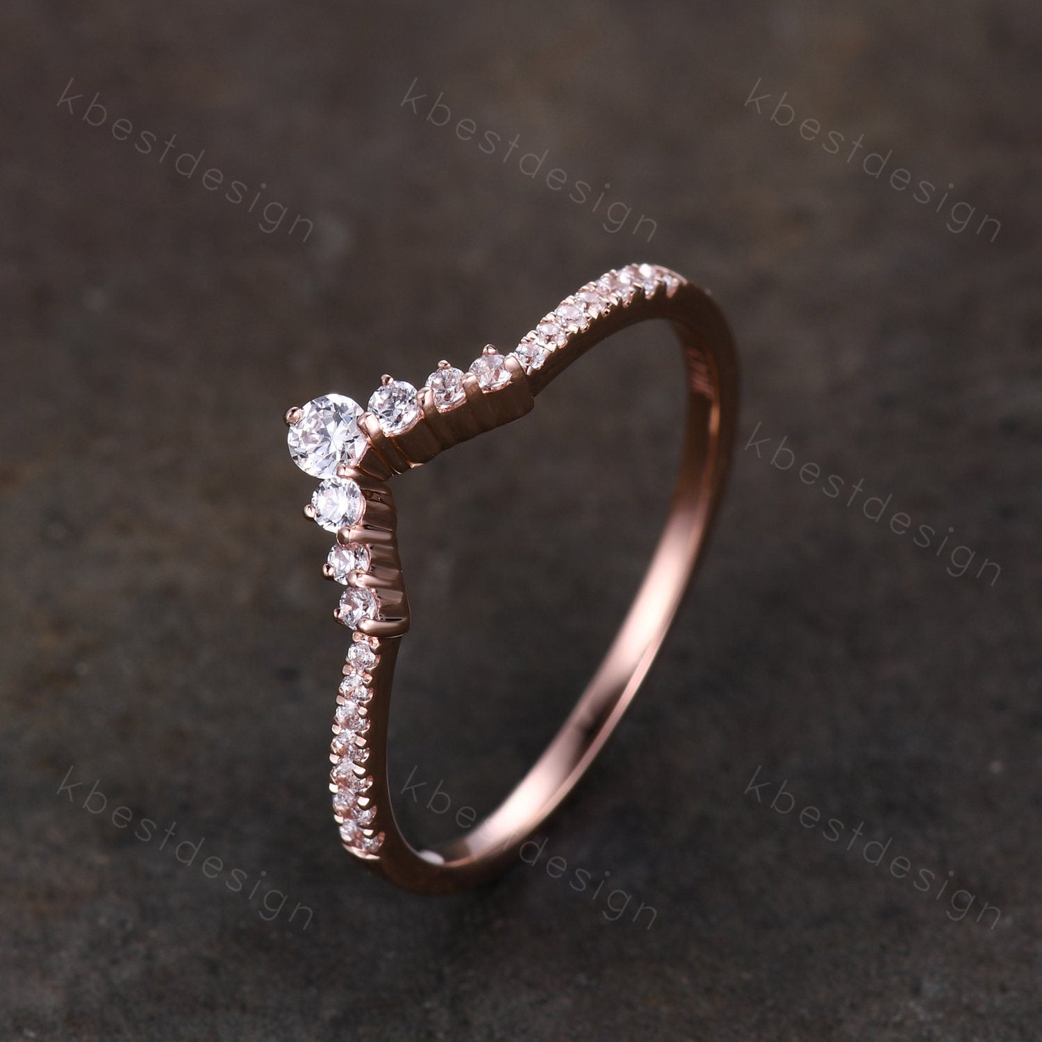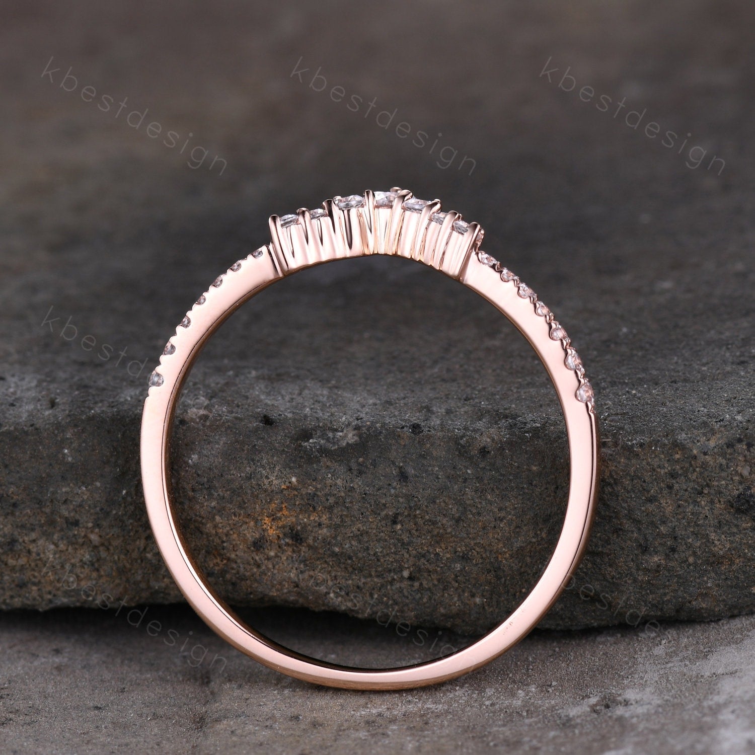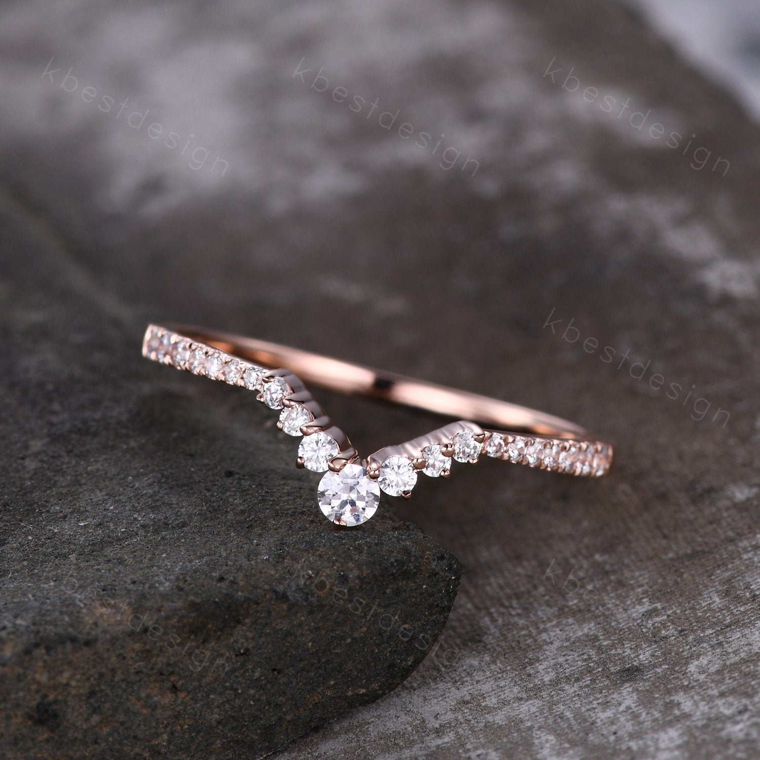 Curved wedding band women vintage round cut Diamond wedding band rose gold unique Moissanite Bridal Stacking promise gift for Her.