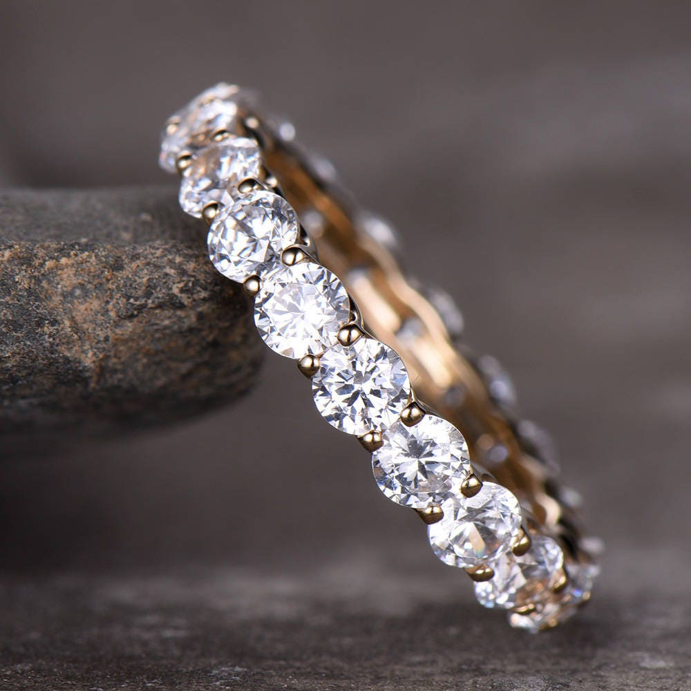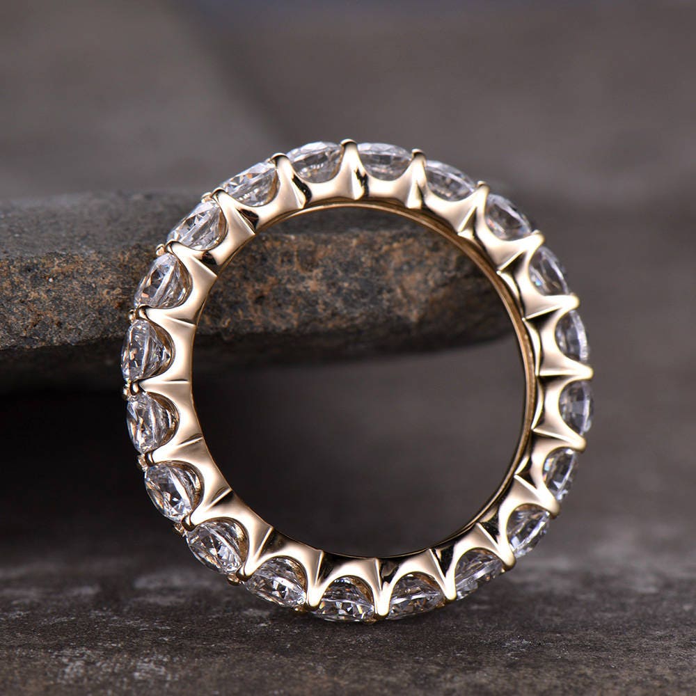 CZ Diamond Wedding Band Full Eternity Matching Band Stackable Anniversary Ring 3mm Round Cut Gemstone Sterling Silver Yellow Gold Plated