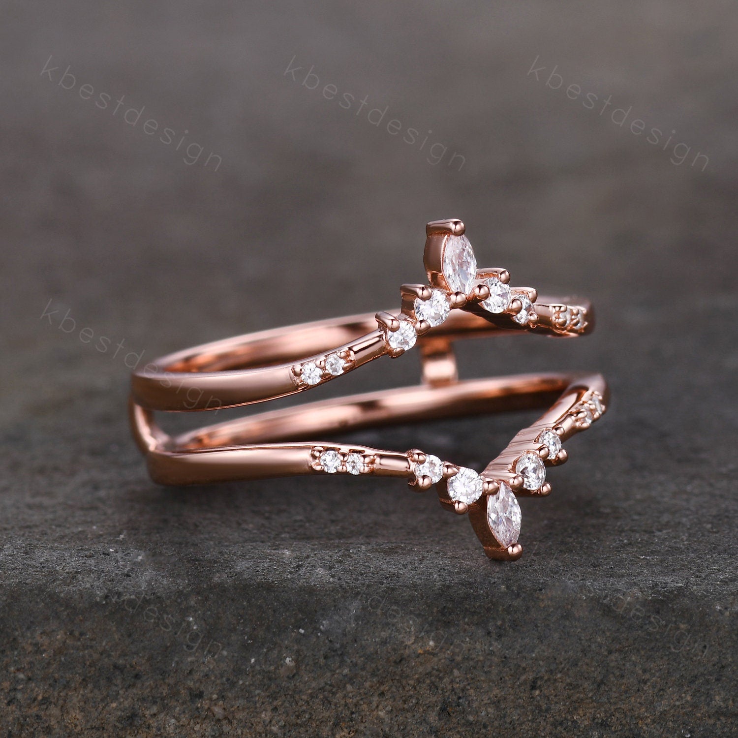 Dainty curved Moissanite wedding band vintage double curved stacking band Rose gold enhancer matching band Unique bridal promise gift