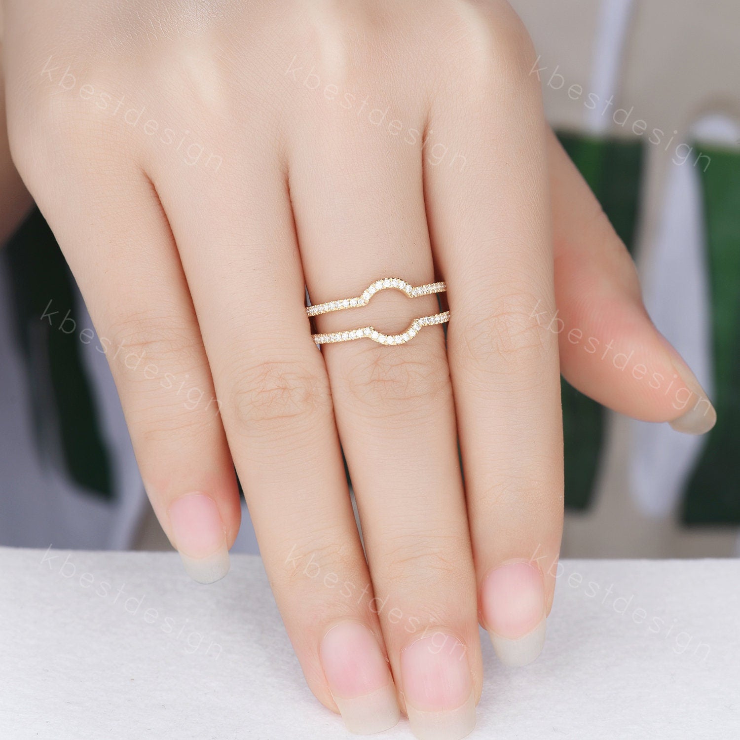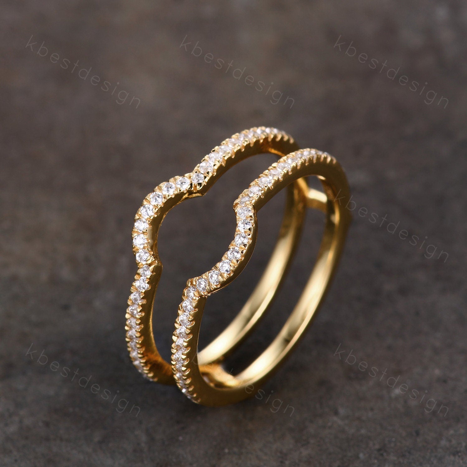 Dainty curved Moissanite wedding band Yellow gold double curve stacking band half eternity enhancer matching band Unique bridal promise gift
