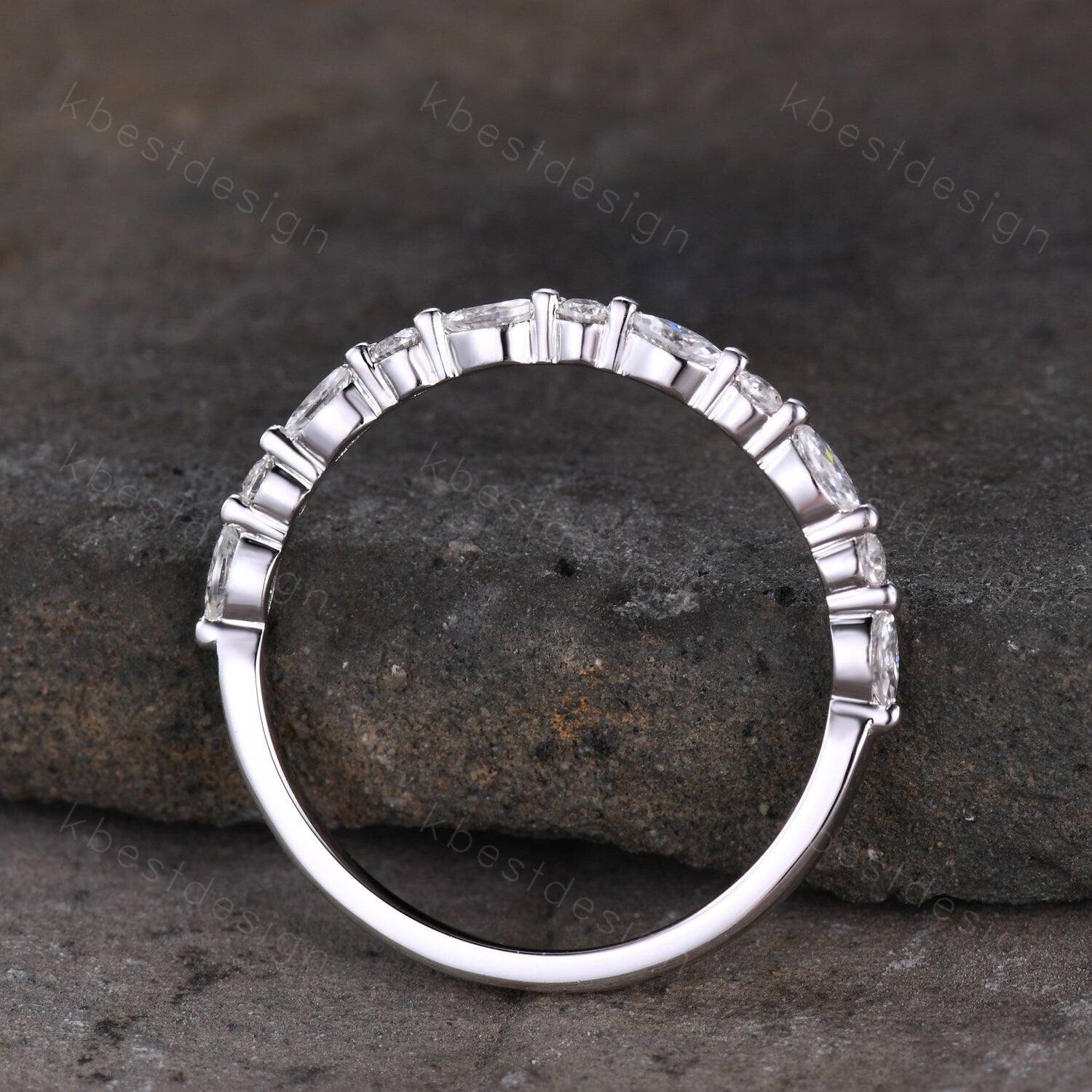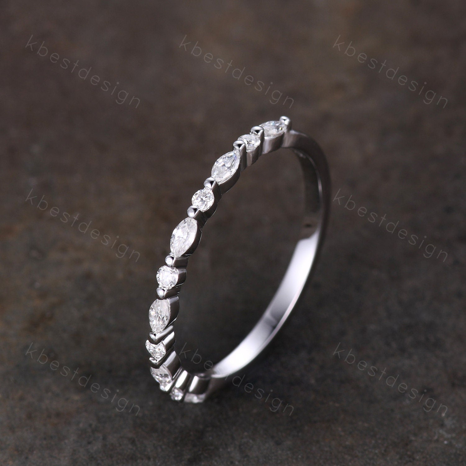 This is a Dainty Moissanite wedding band set women marquise cut half eternity band silver wedding band Unique Stacking Matching anniversary ring gift.