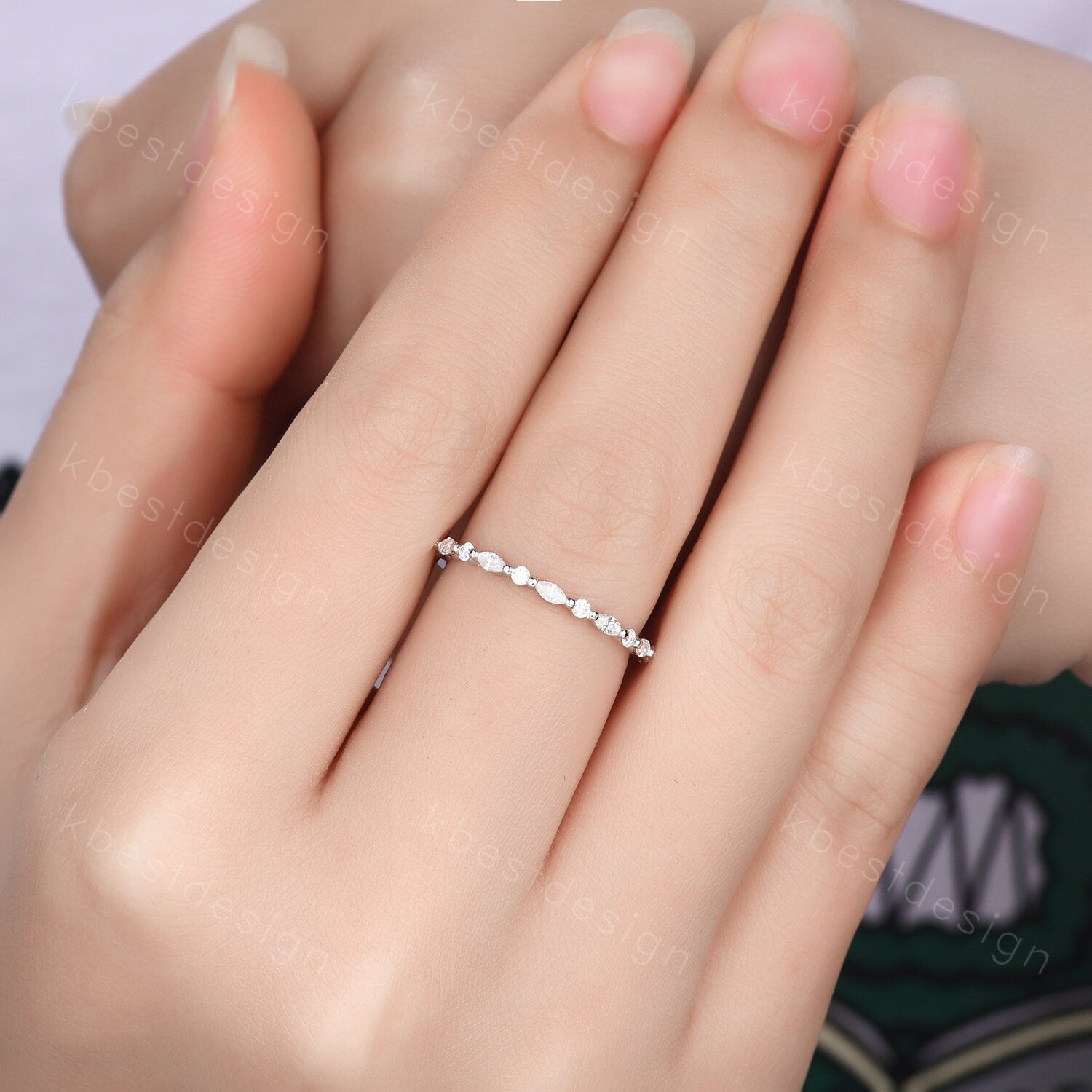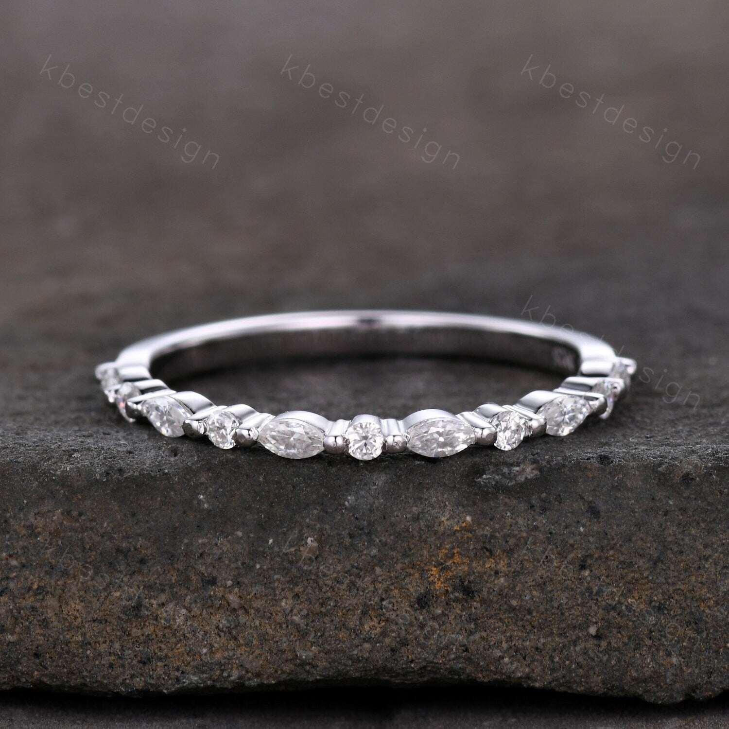 Dainty Moissanite wedding band set women marquise cut half eternity band silver wedding band Unique Stacking Matching anniversary ring gift
