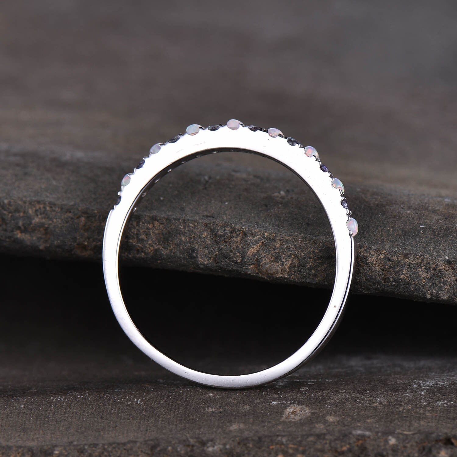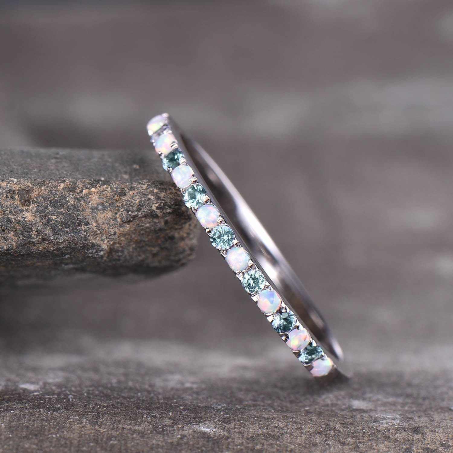 Dainty Opal Alexandrite Ring - Opal Stackable Wedding Band - 925 Sterling Silver - Minimalist Birthstone Ring - Stacking Ring - Gold Ring