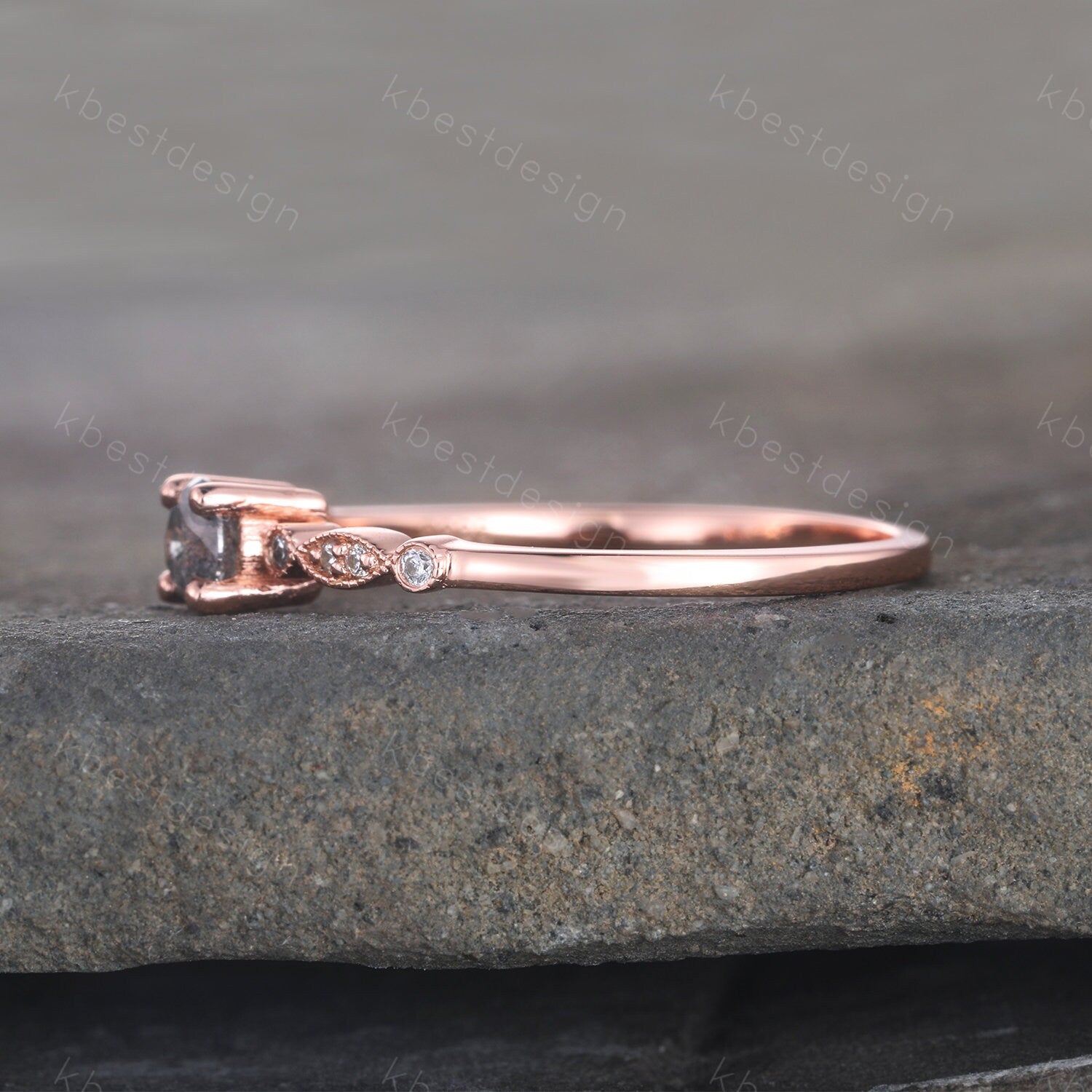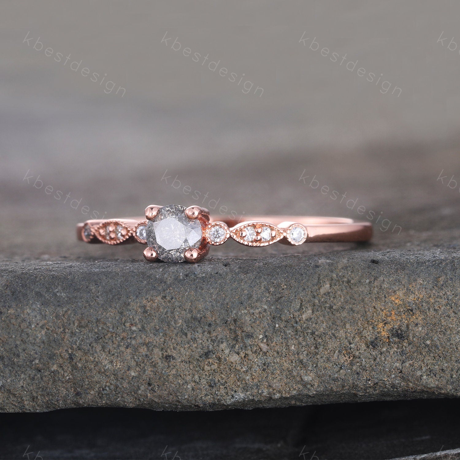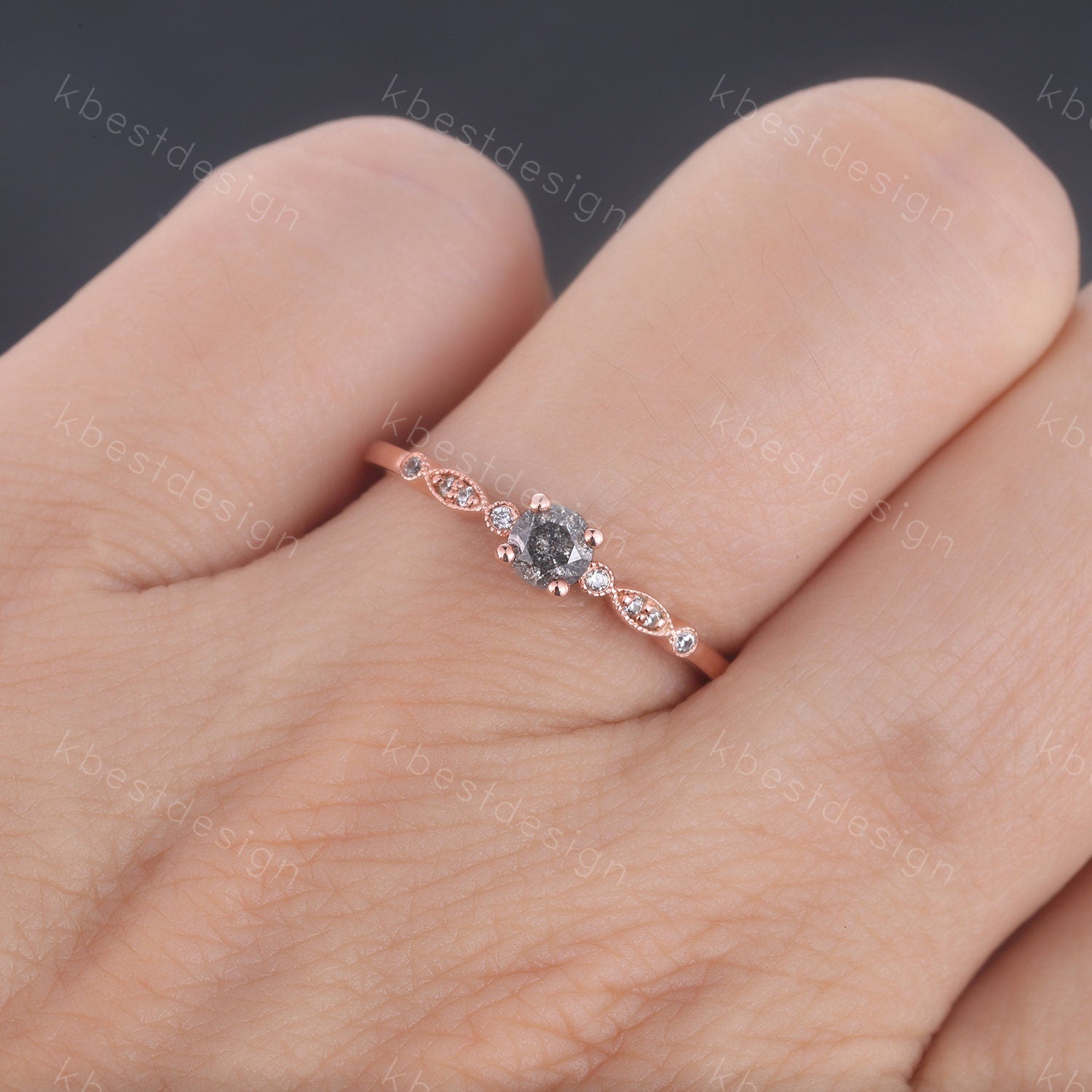 Dainty Salt and Pepper Diamond Engagement Ring Rose Gold Wedding Ring Delicate Engagement Ring Art Deco Wedding Ring Anniversary Ring