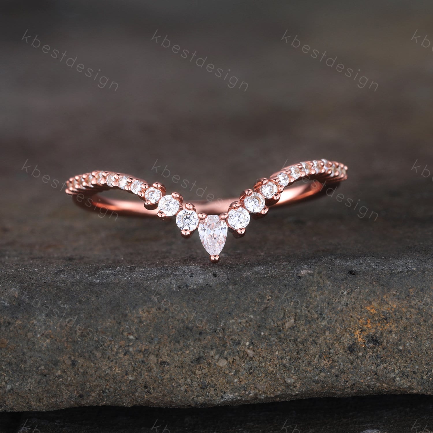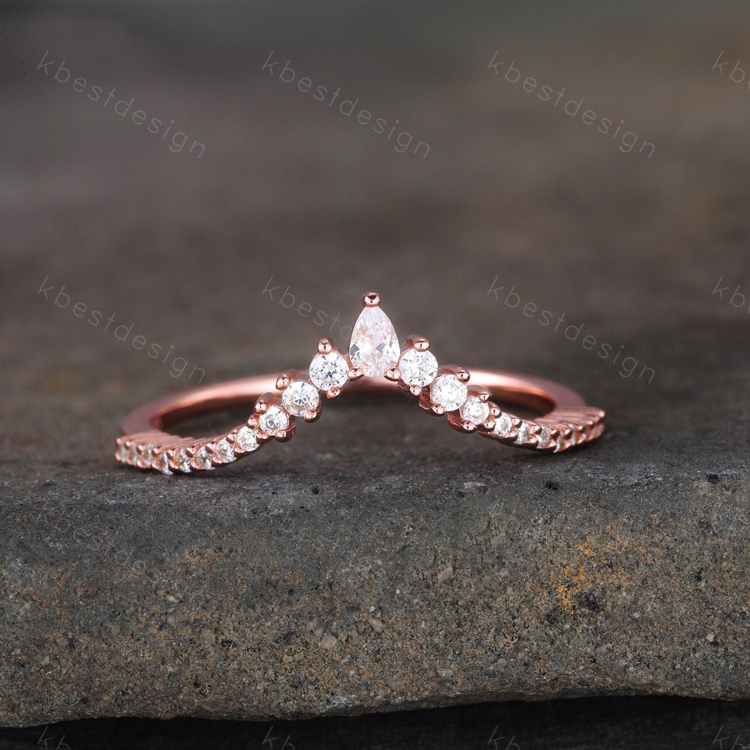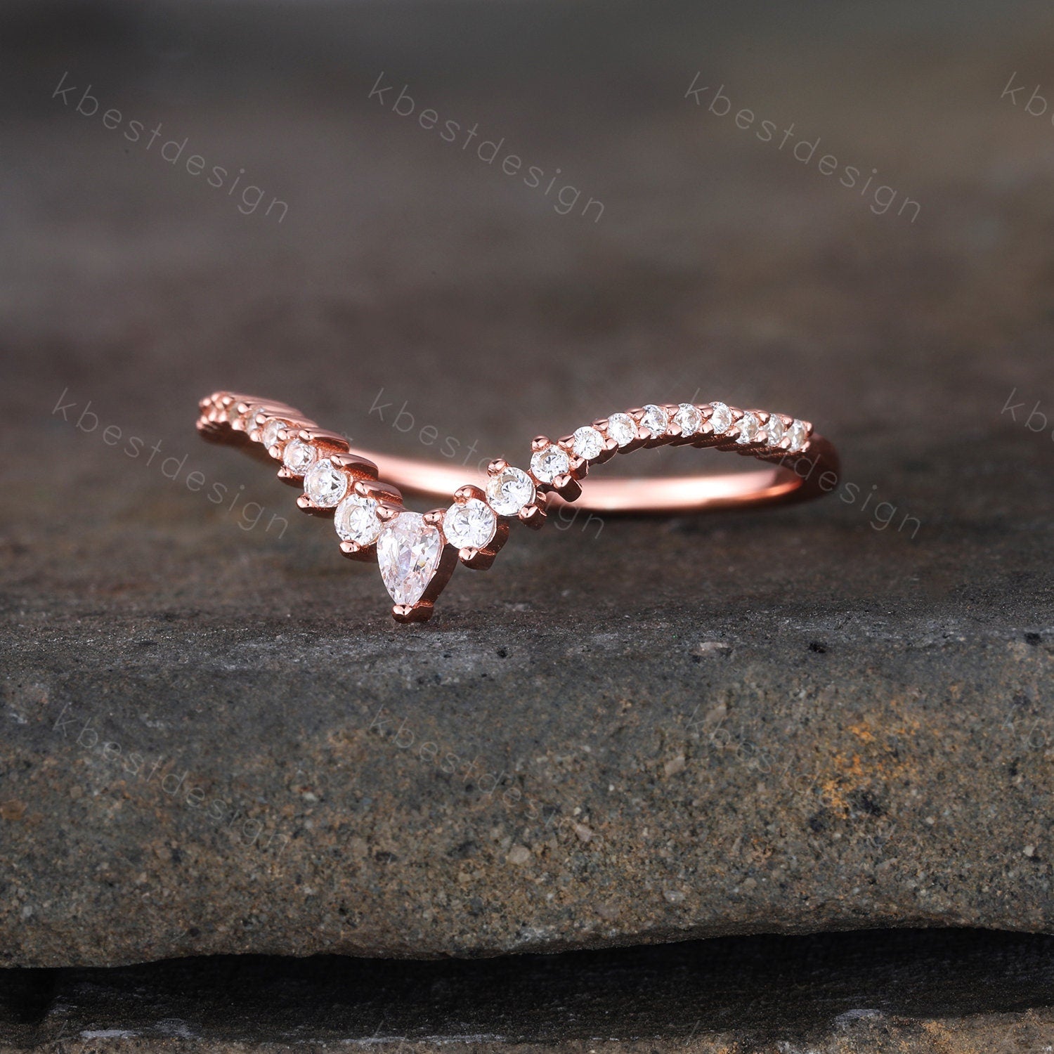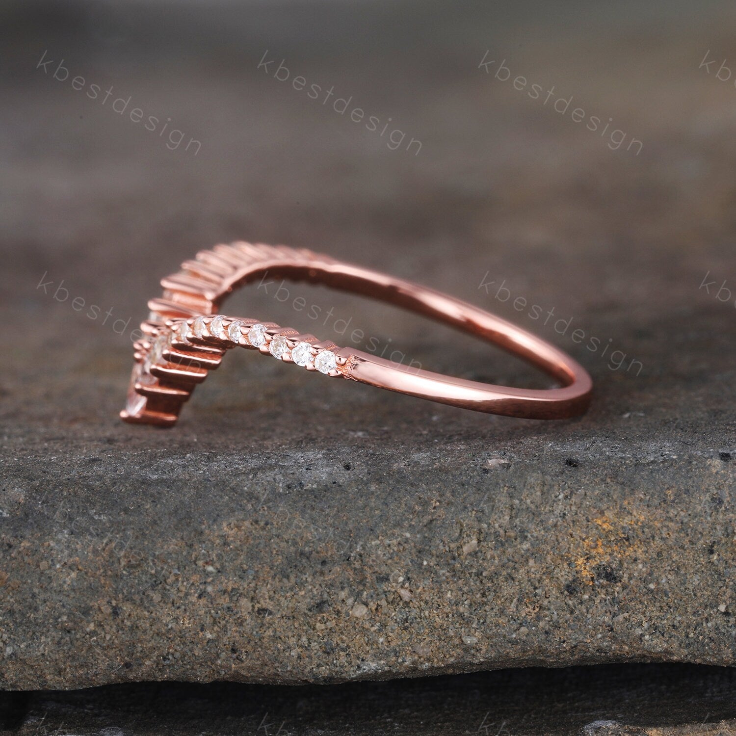 Delicate Chevron Ring Rose Gold Ring for Women Diamond CZ Eternity Stackable Wedding Band Unique Curved Matching Bridal Anniversary Gift