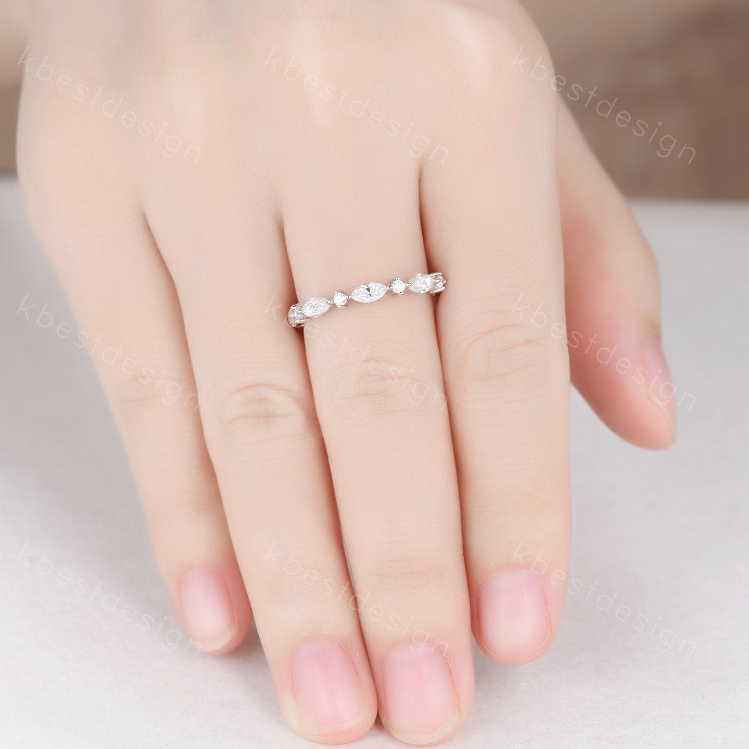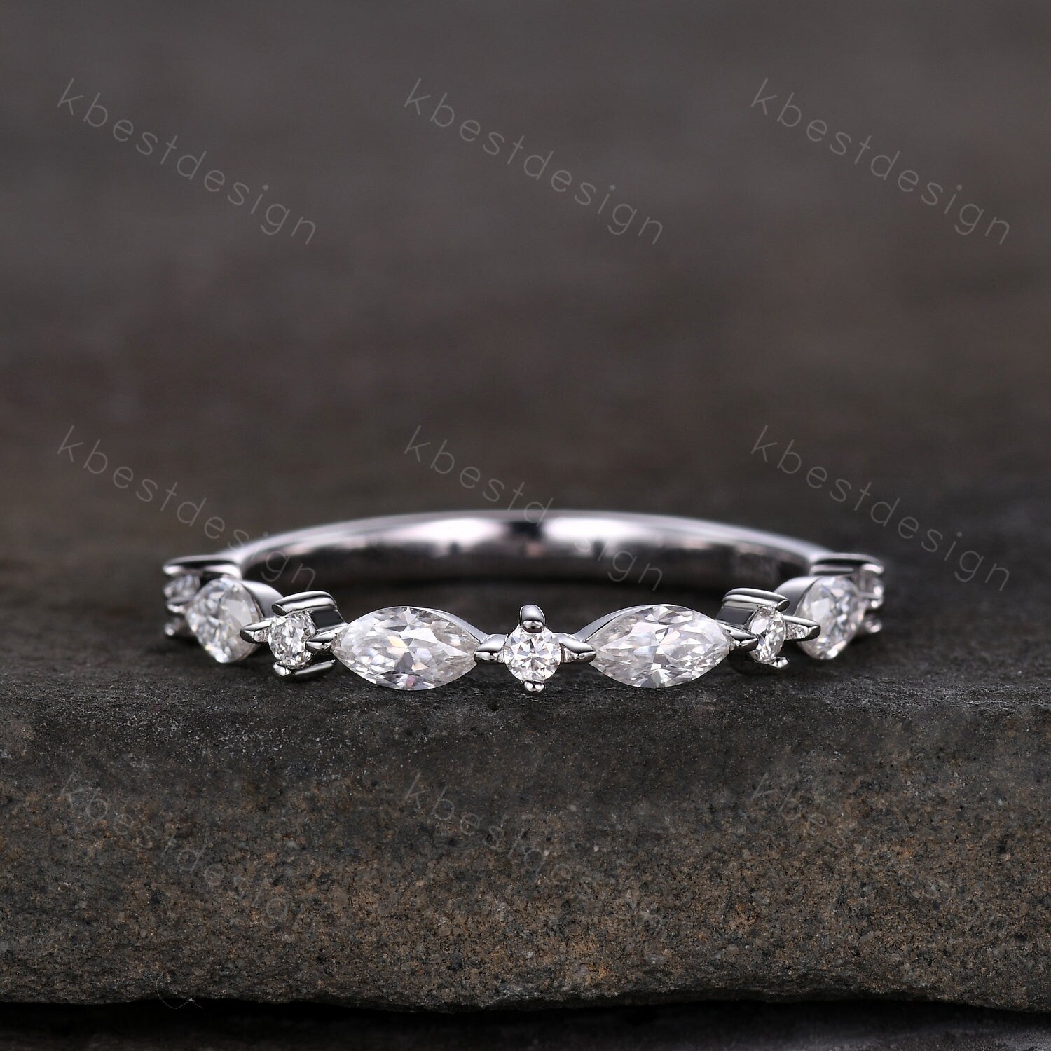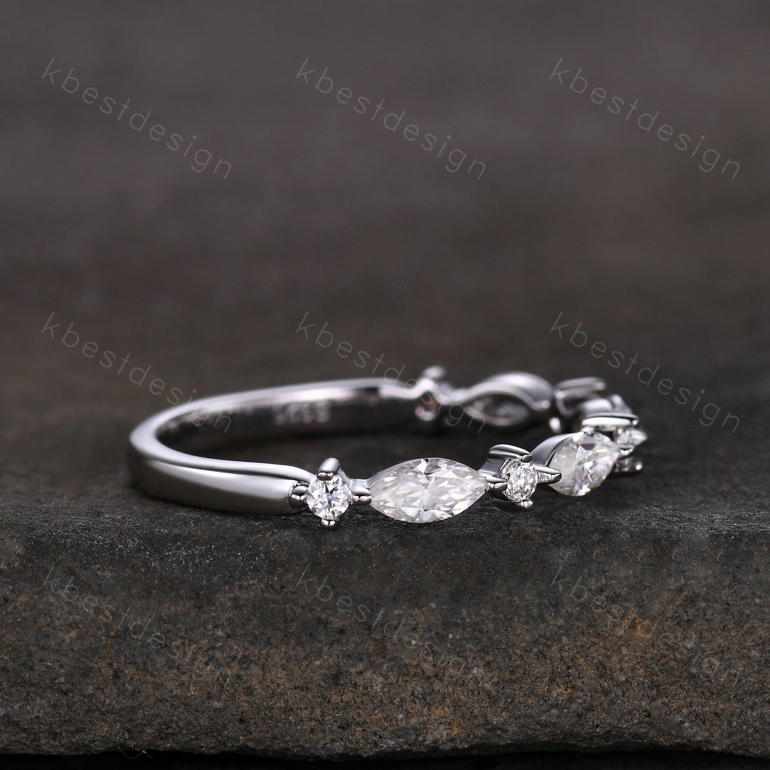 This is a Delicate Moissanite wedding band Half Eternity Marquise cut Moissantie Stacking Band Women Matching Band Promise Anniversary Ring. Perfect for Engagement & Wedding,Christmas,Birthday,New Year gift. :)