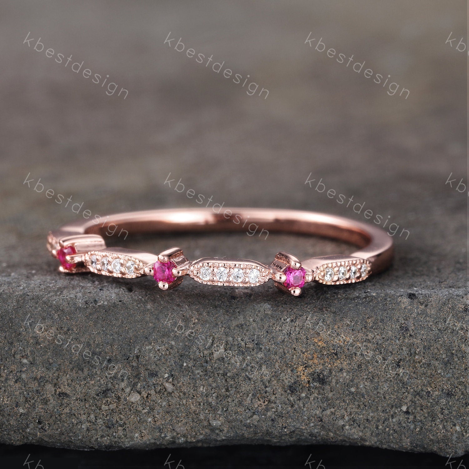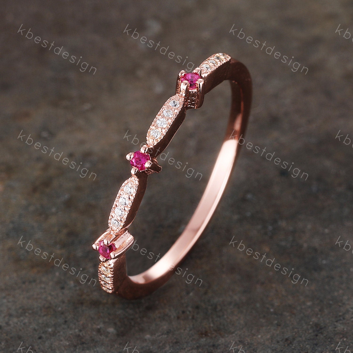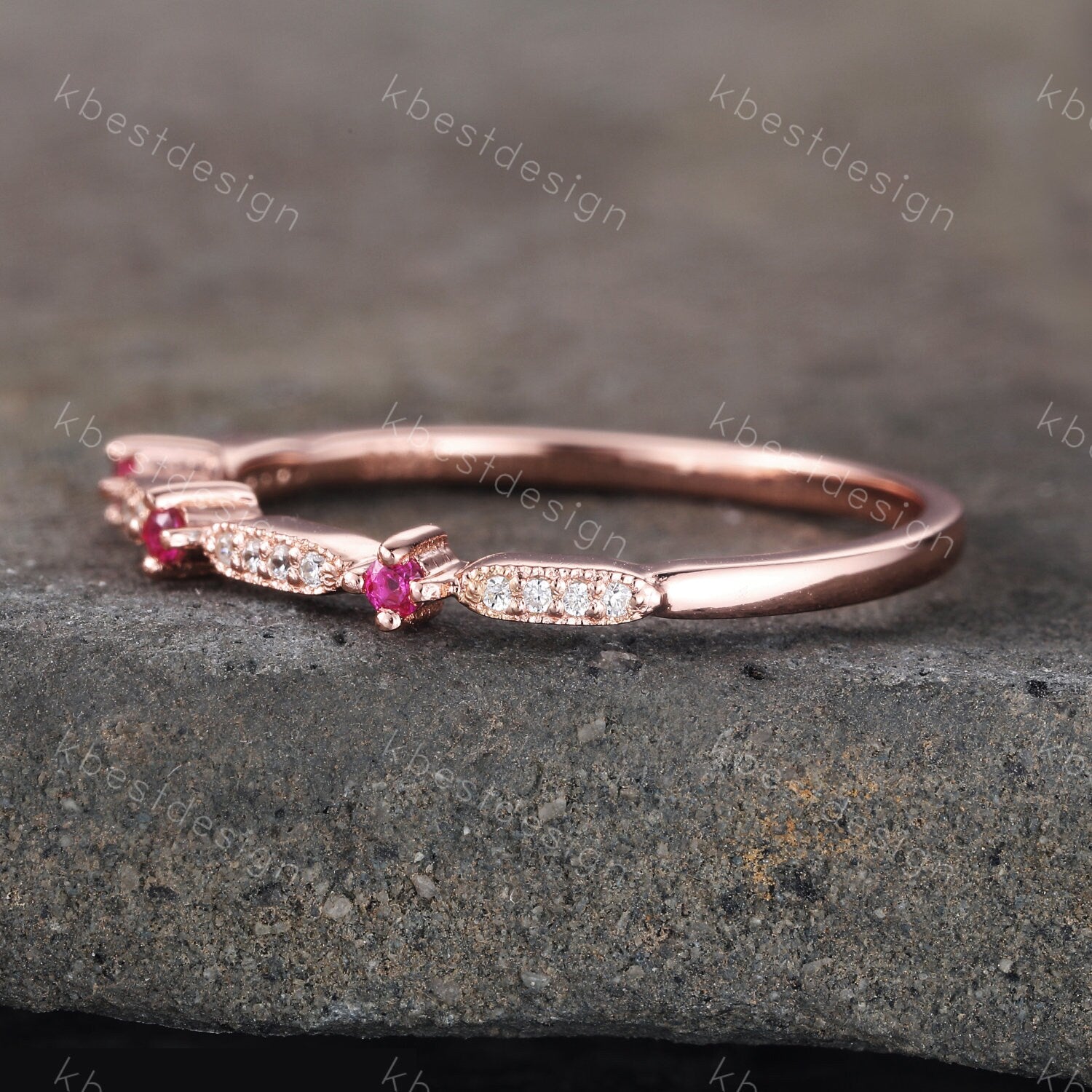 Delicate Ruby Wedding Band Ruby & CZ Diamond Wedding Band Half Eternity Matching Band Stackable Eternity Bridal Wedding Anniversary Ring