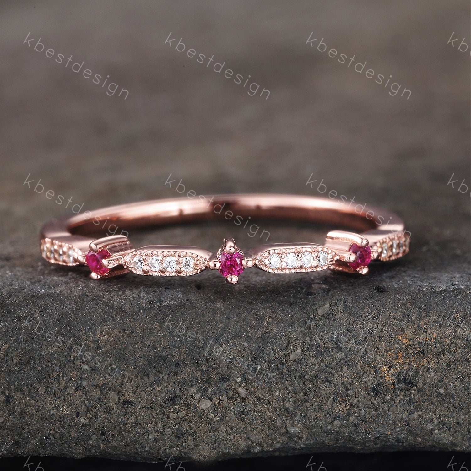 Stones: 1.5mm lab created ruby + CZ diamond. You can also choose other color gems.