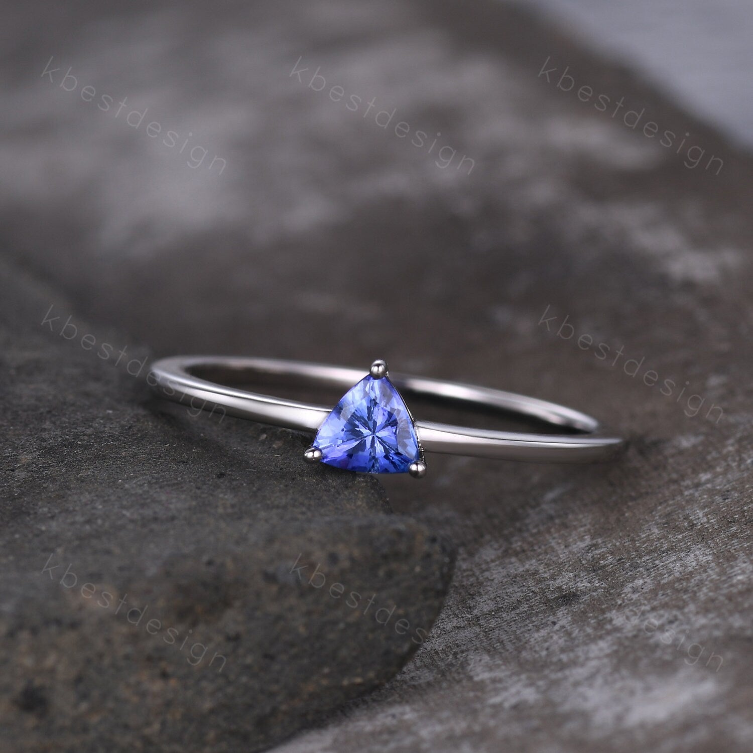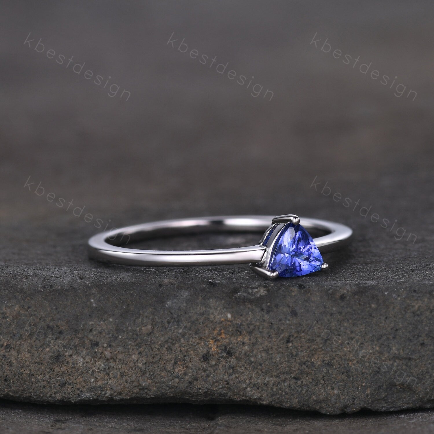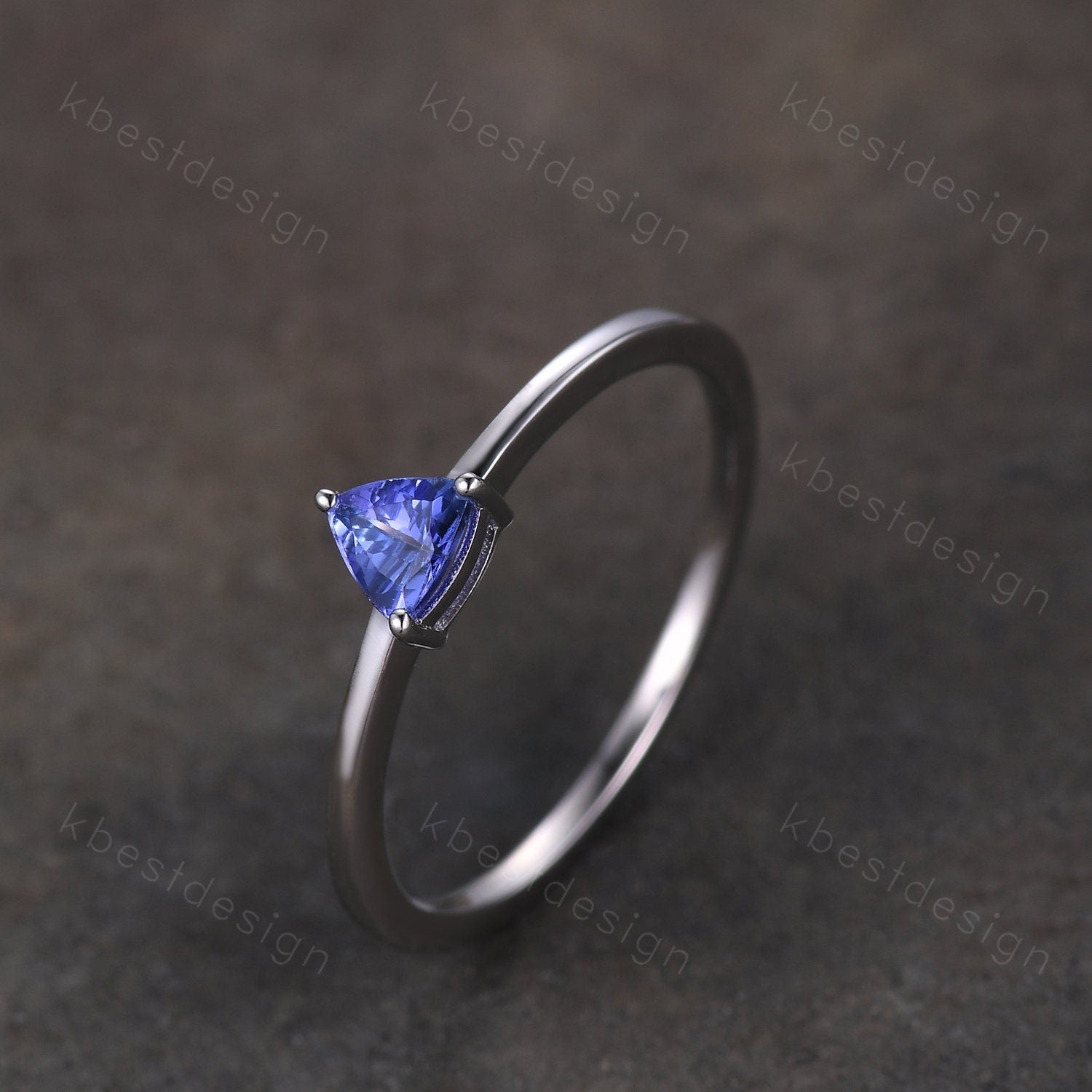 This is a Delicate Tanzanite Ring, Minimalist Silver Ring, Tanzanite Stacking Ring, Trillion Cut Engagement Ring, Unique Anniversary Promise Gifts. Perfect for birthday gift, anniversary gift, promise gift.