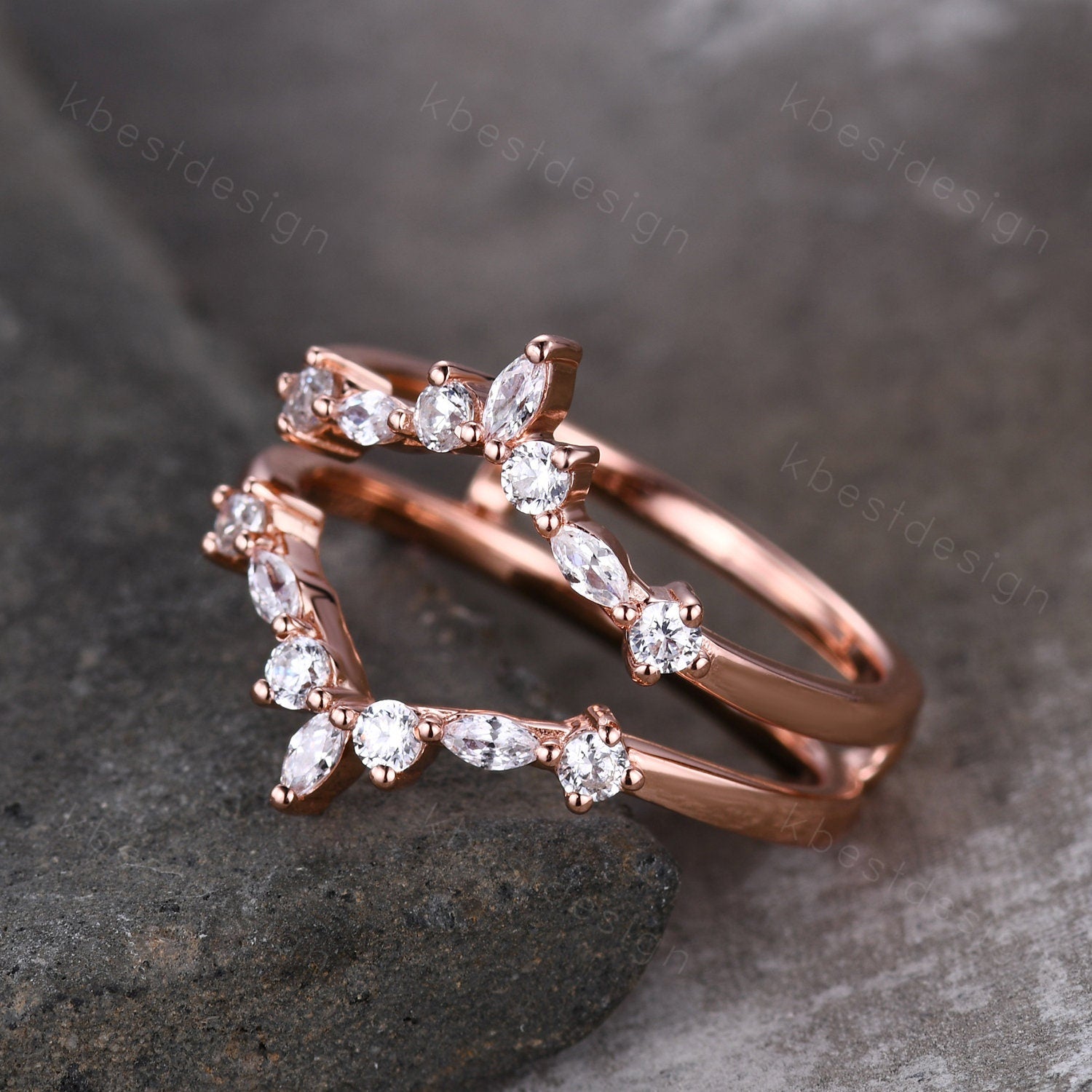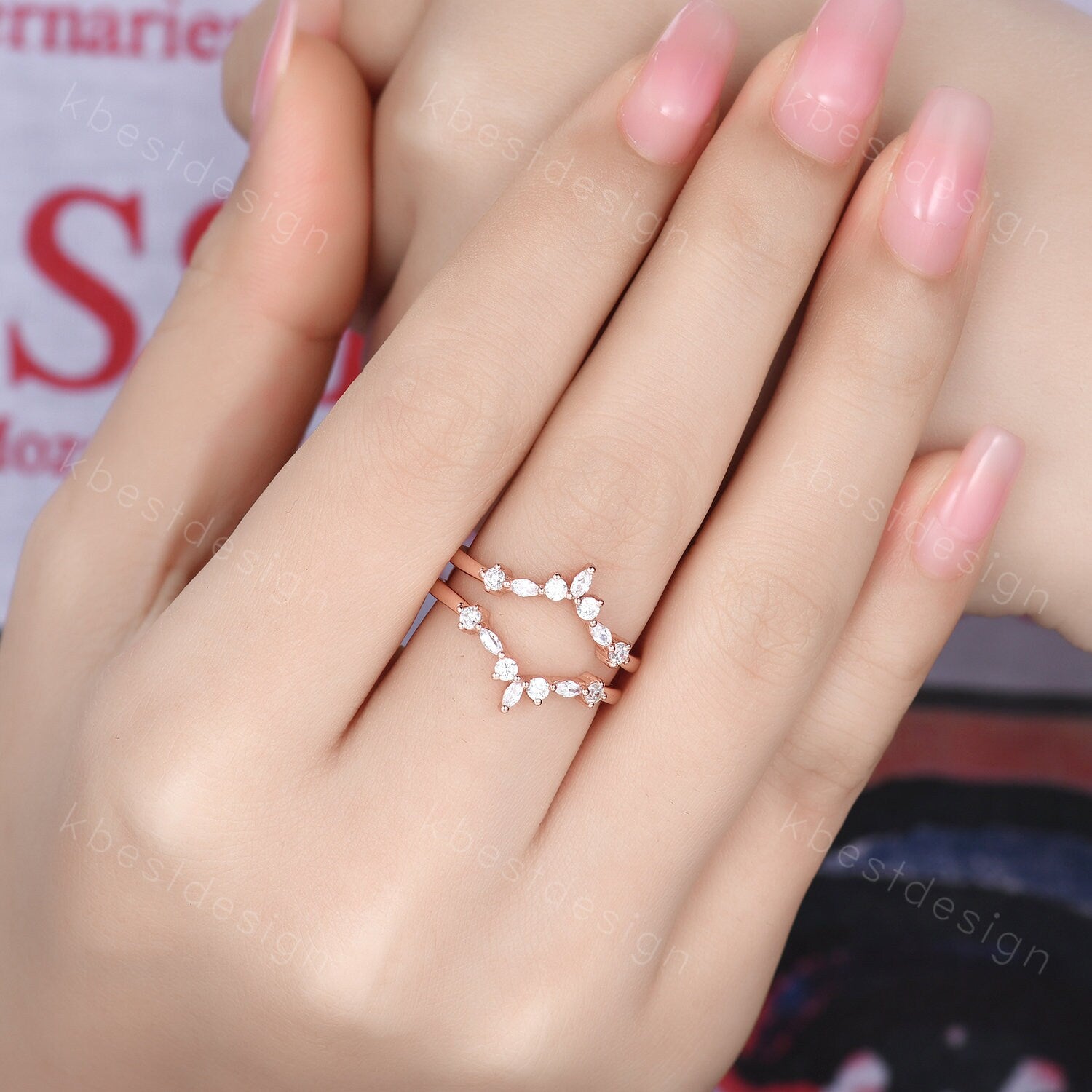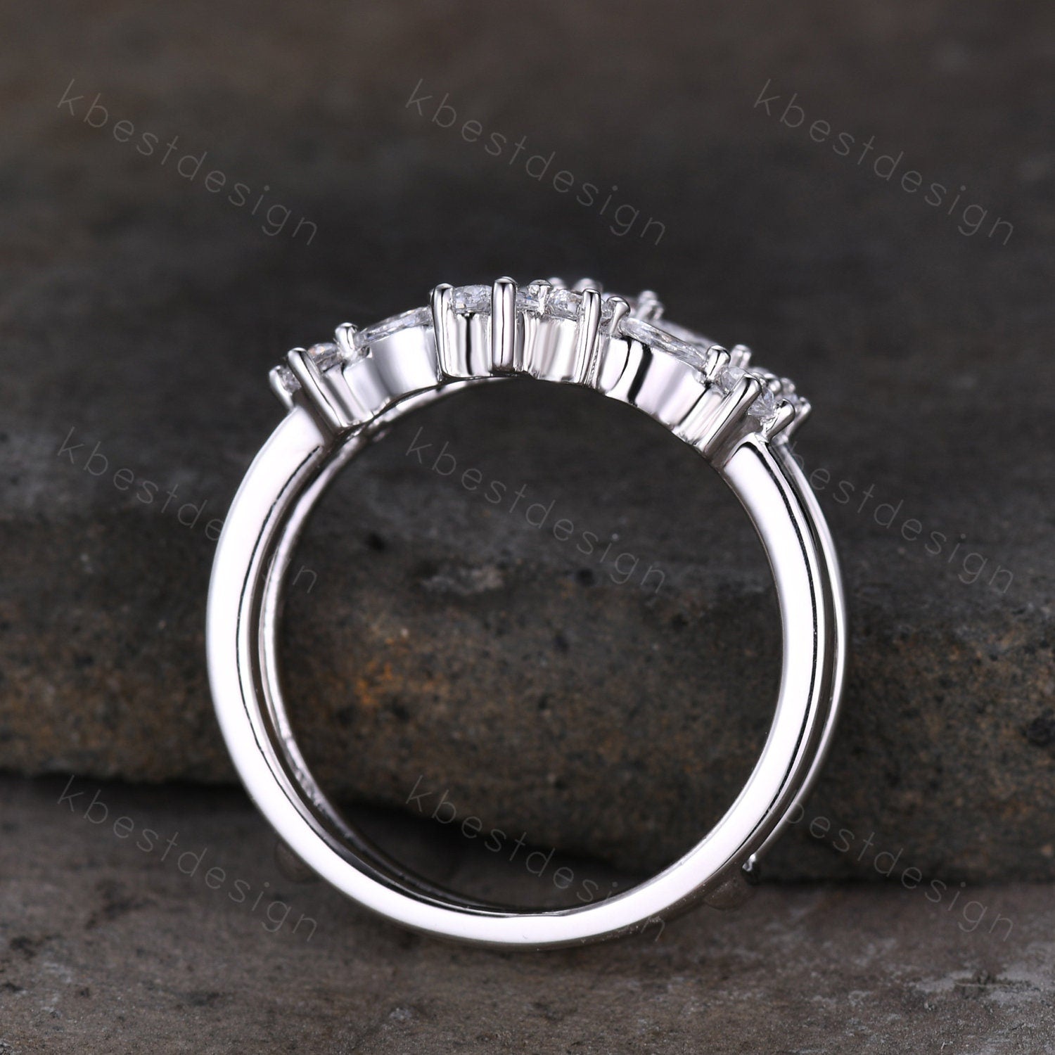 Double curved Moissanite wedding band Vintage marquise cut cluster band Unique stacking matching bridal ring Promise gift Sterling silver
