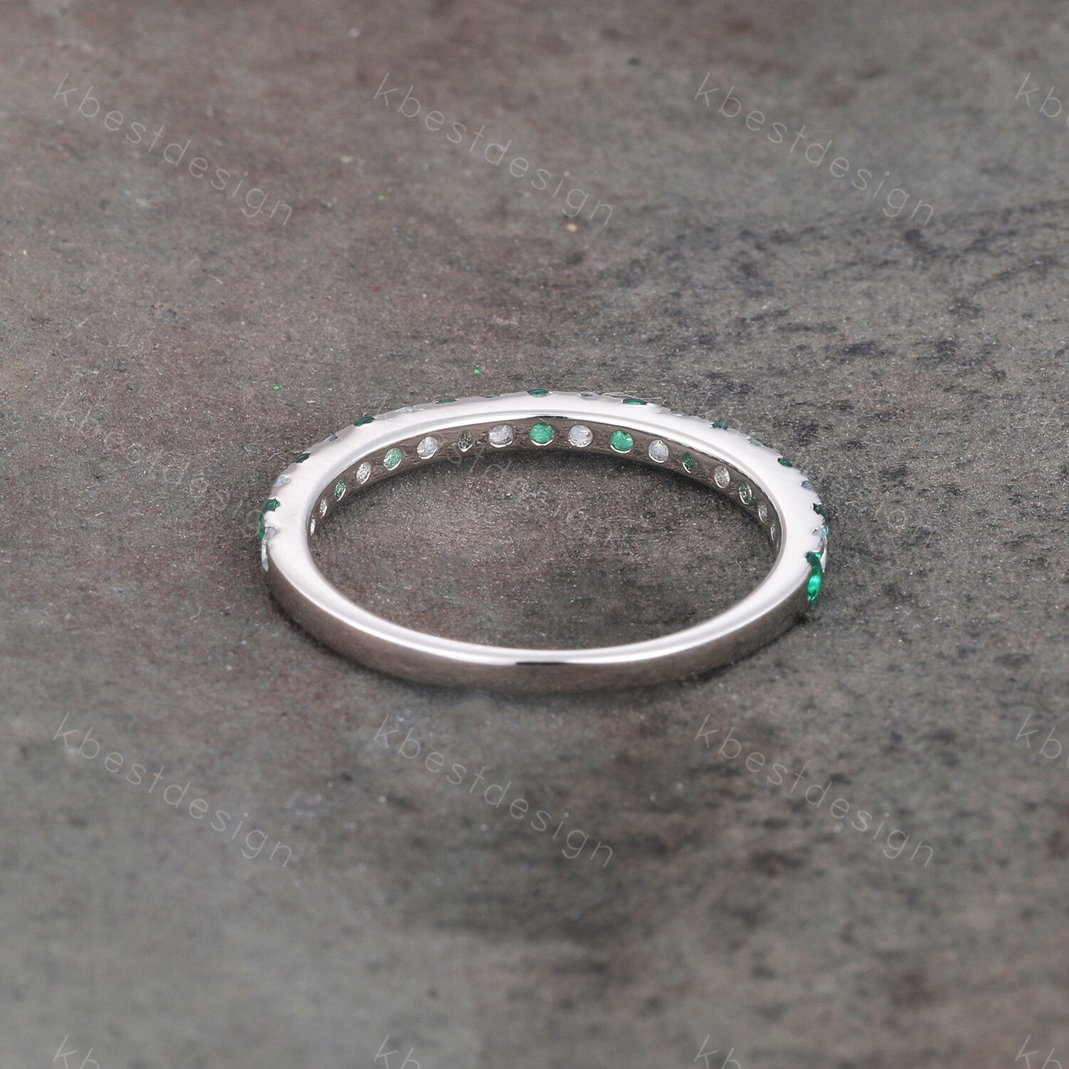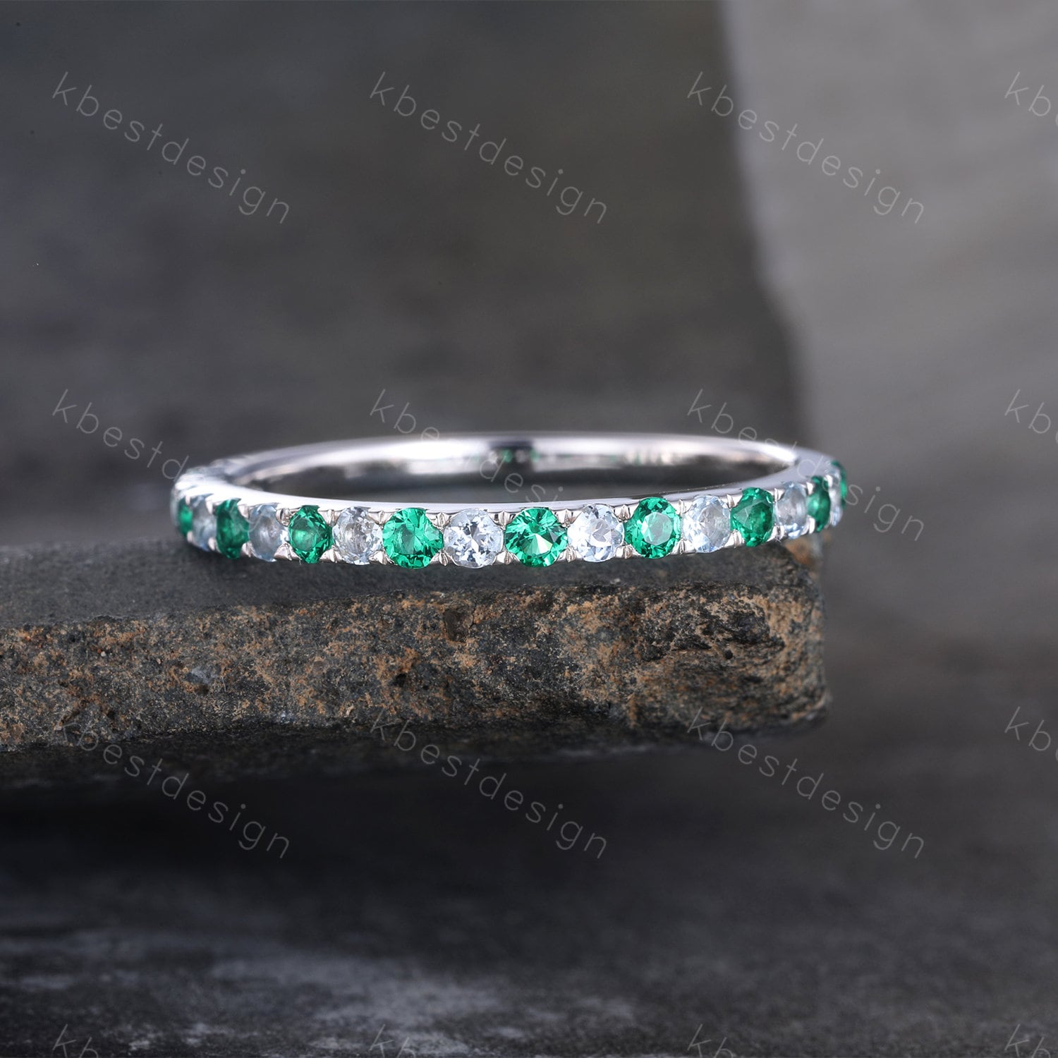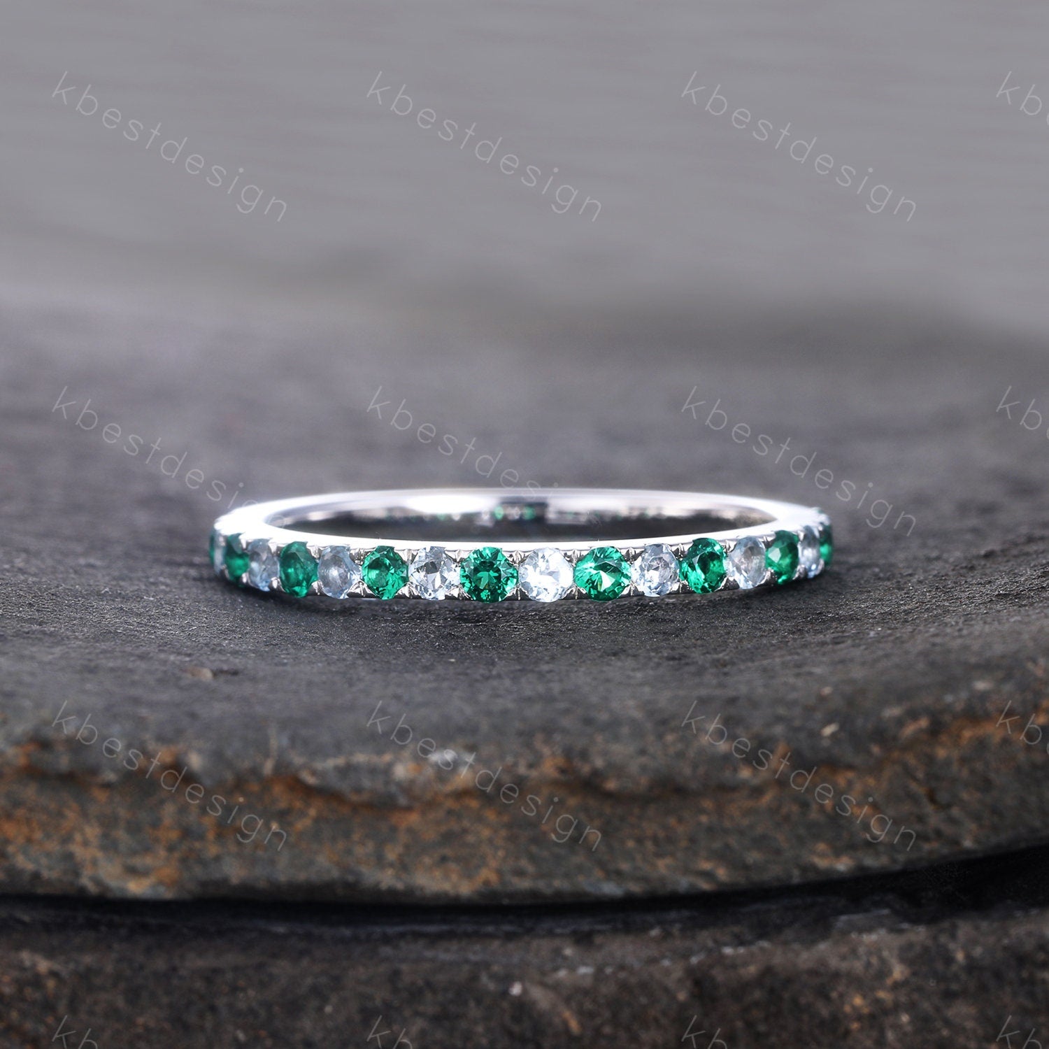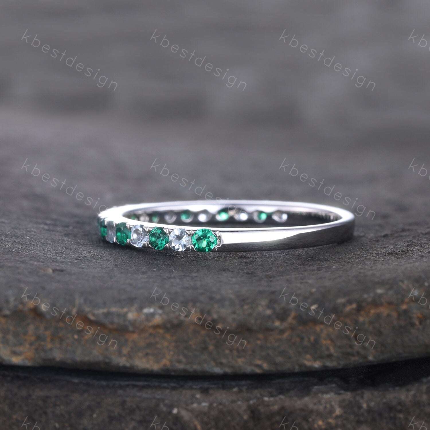 Emerald Aquamarine Wedding Ring Half Eternity Wedding Band May Birthstone Ring Aquamarine Ring Stacking Matching Band Anniversary Gift