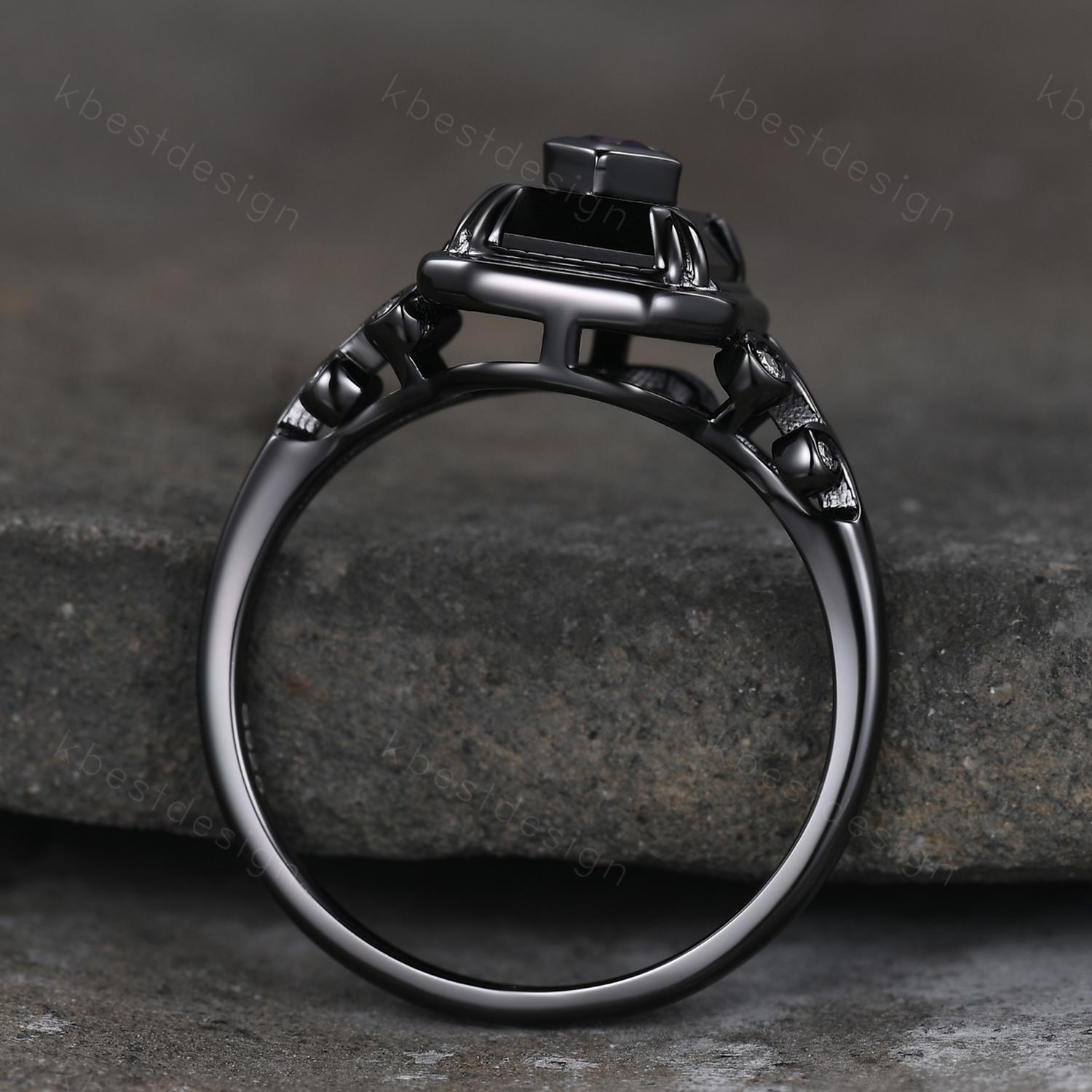 Emerald Cut Black Onyx engagement ring Antique Black Gold Ring For Women Art Deco Alexandrite Gemstone Ring Vintage Bridal Statement Ring