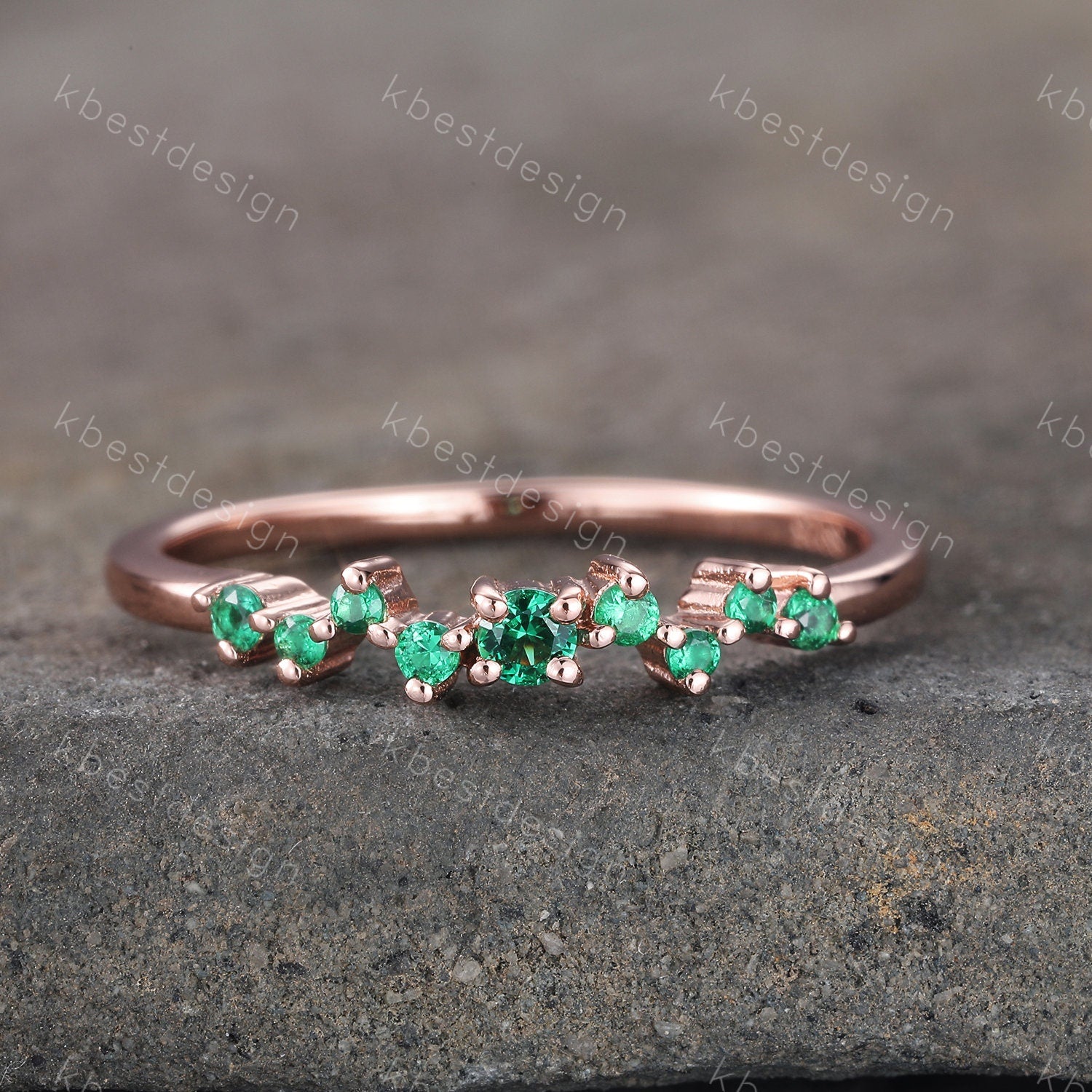 Emerald Ring, Cluster Ring, Dainty Emerald Wedding Ring, Rose Gold Ring, Minimalist Ring, Delicate Stackable Ring, Green Stone Ring