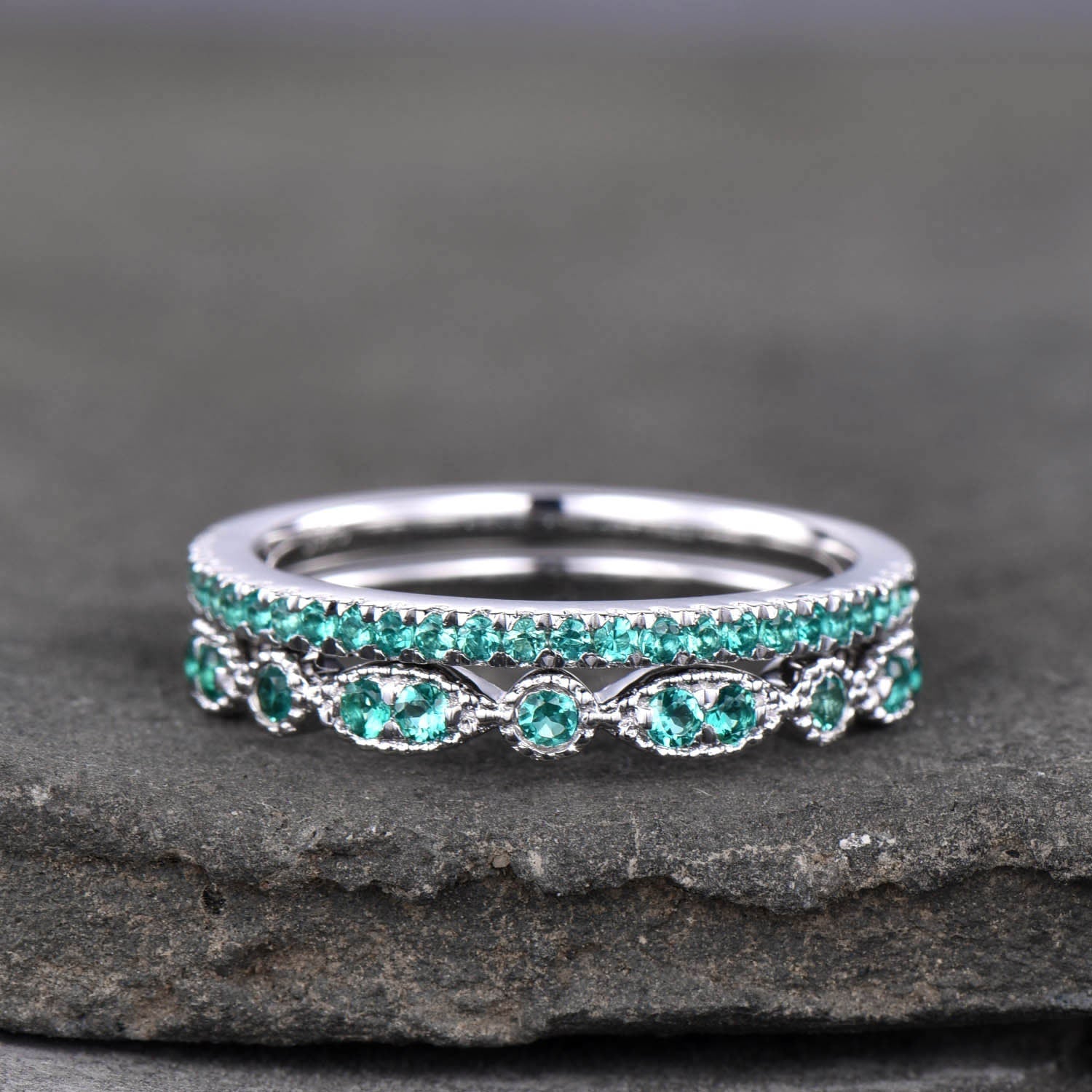 Emerald Wedding Set, Dainty Emerald Ring, Stacking Rings, 925 Sterling Silver, Emerald Gold Rings, Art deco, Anniversary Gift, Delicate