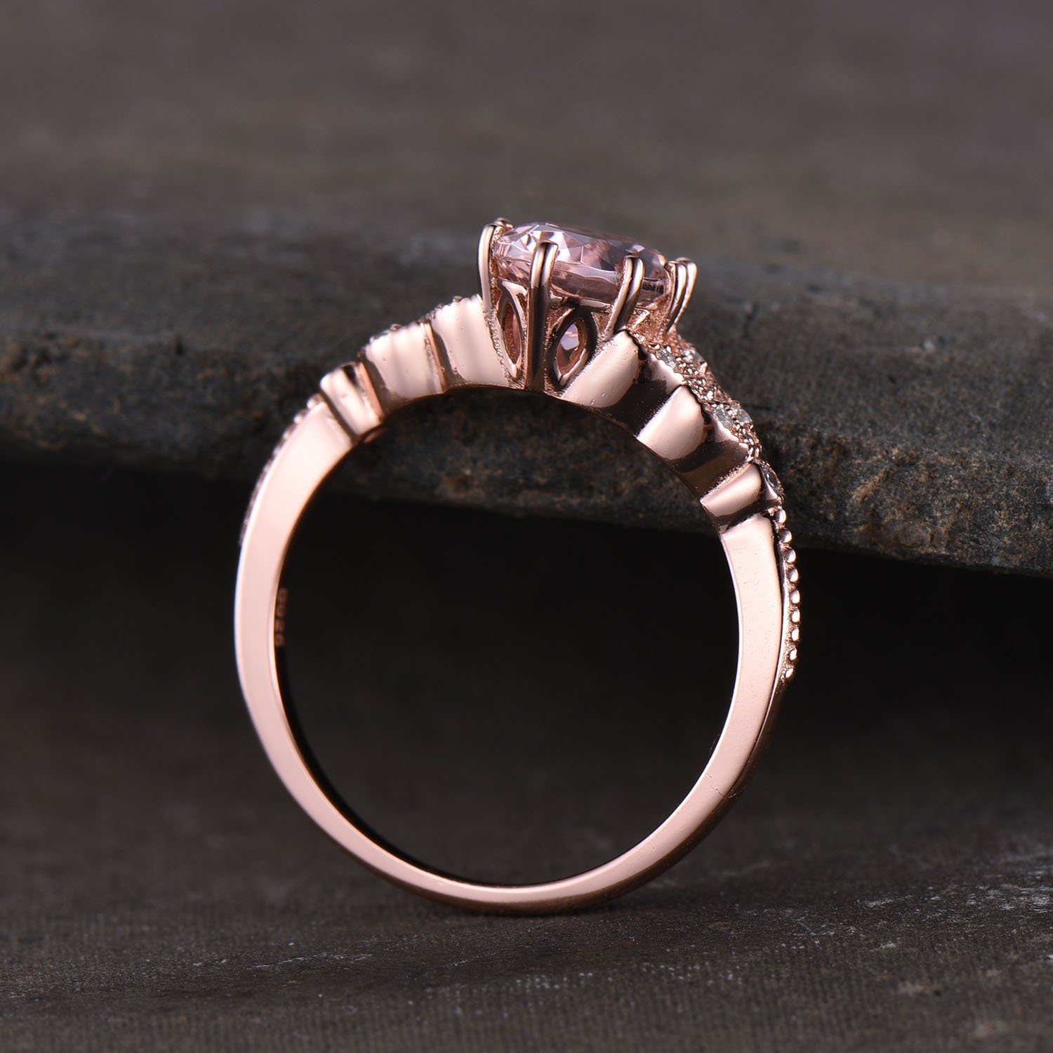 Main stone is 6x8mm oval, side stone is cz.