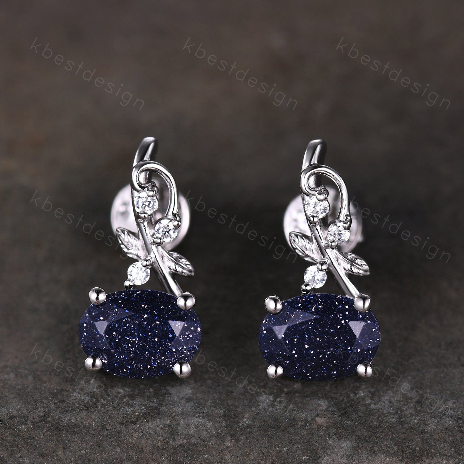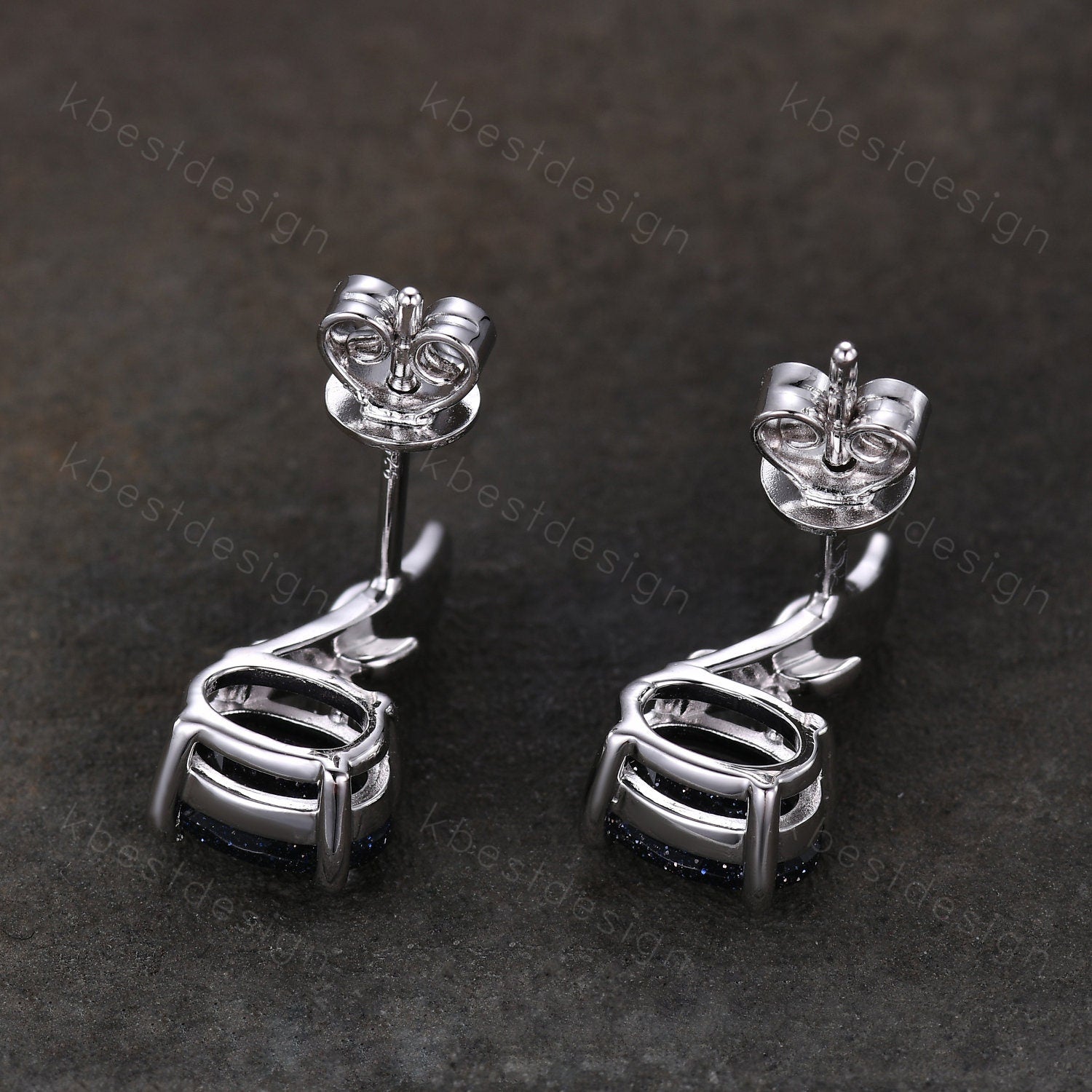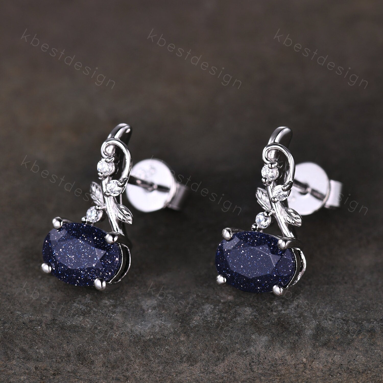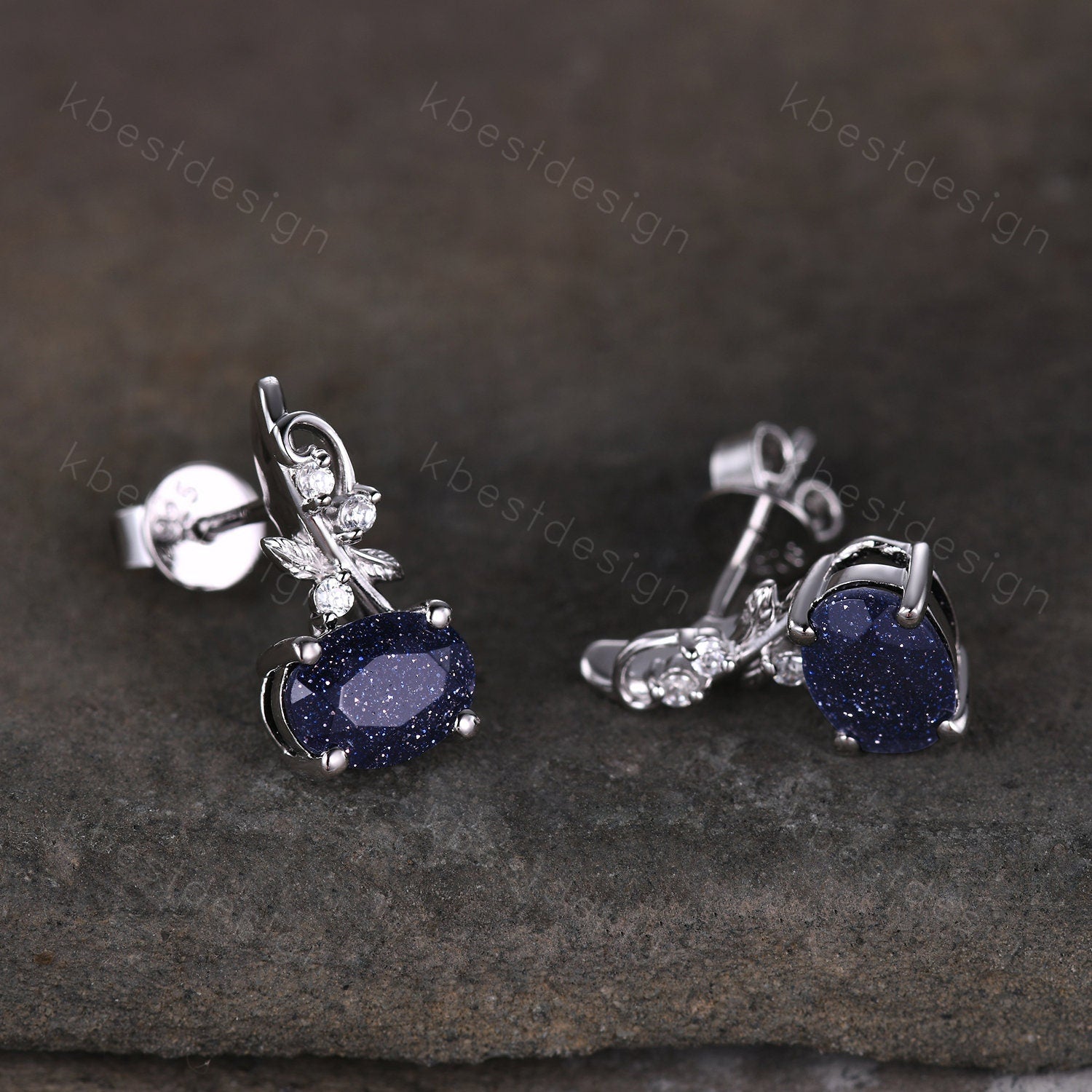Galaxy sandstone stud earrings, oval cut blue sandstone earring studs, best friend gift, nature inspired studs, anniversary gift for her