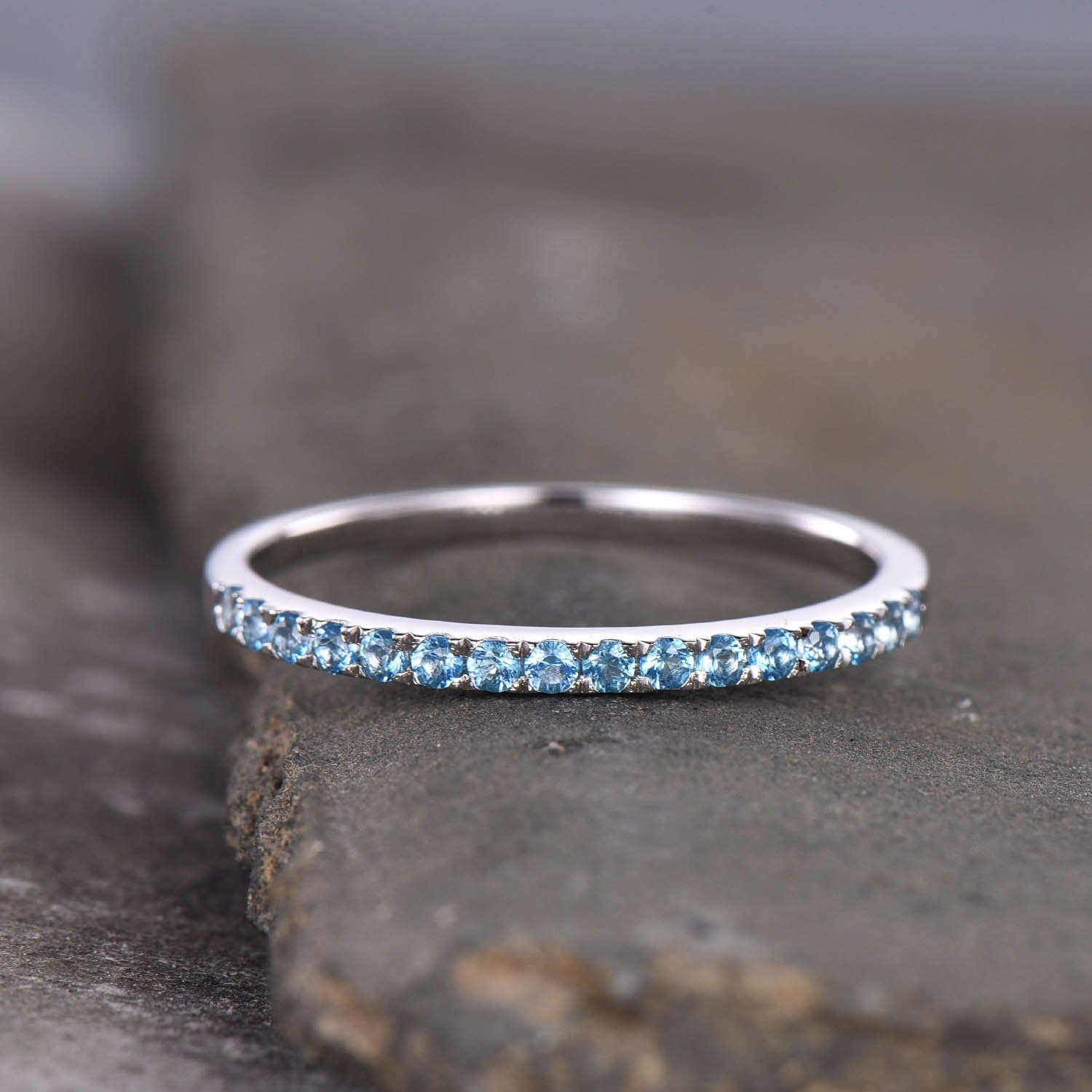 Half Eternity Blue Topaz Ring, Topaz Wedding Band, Blue Gemstone Ring, Sterling Silver Ring, Wedding Ring, December Birthstone, Gold Ring