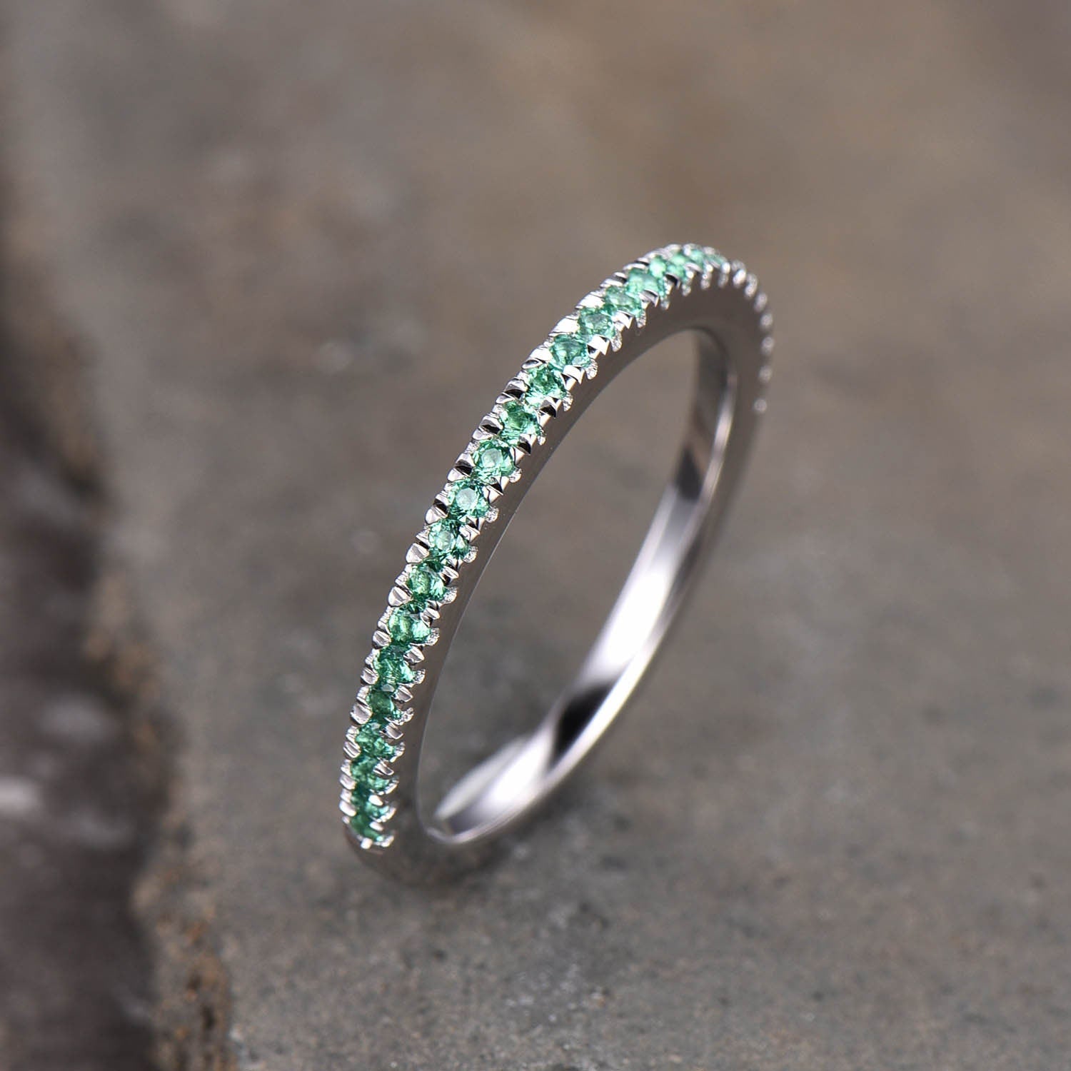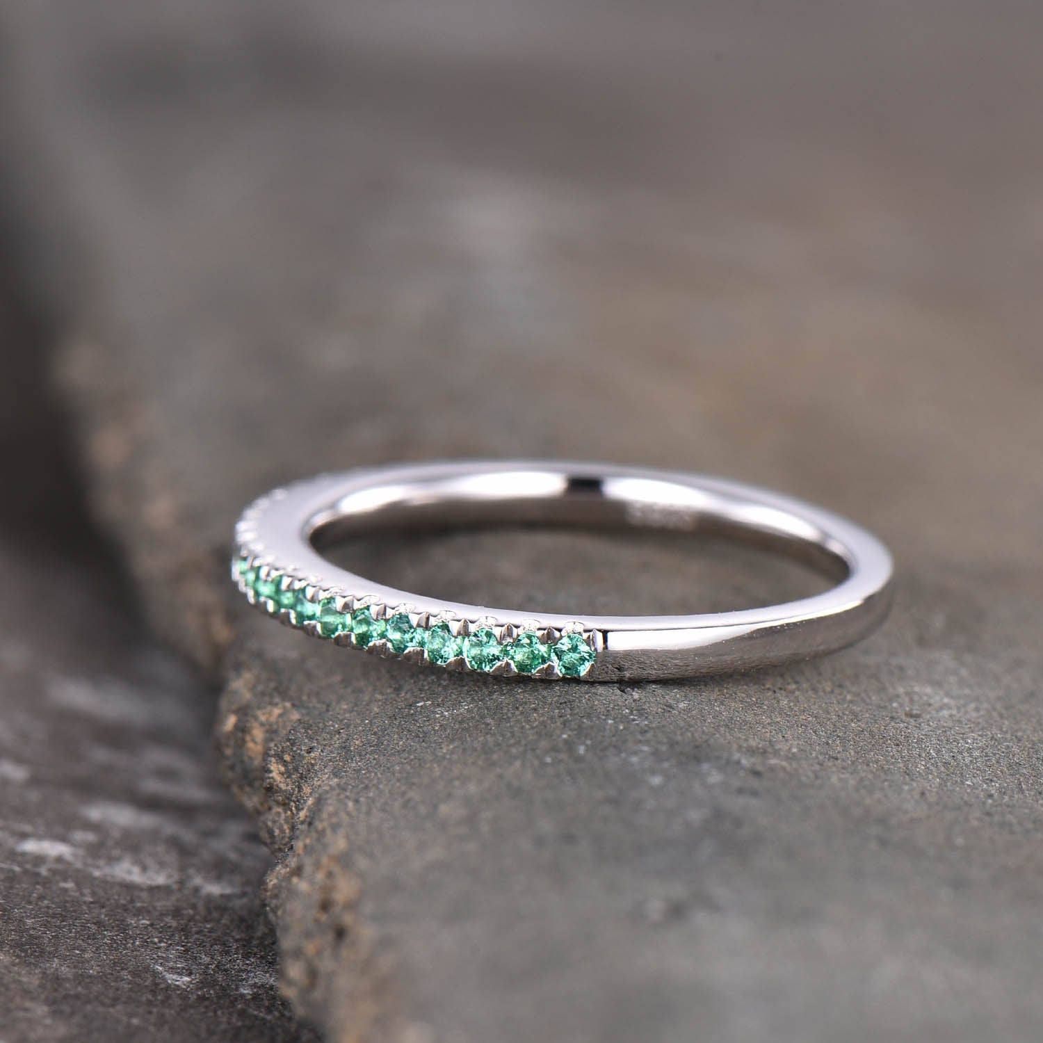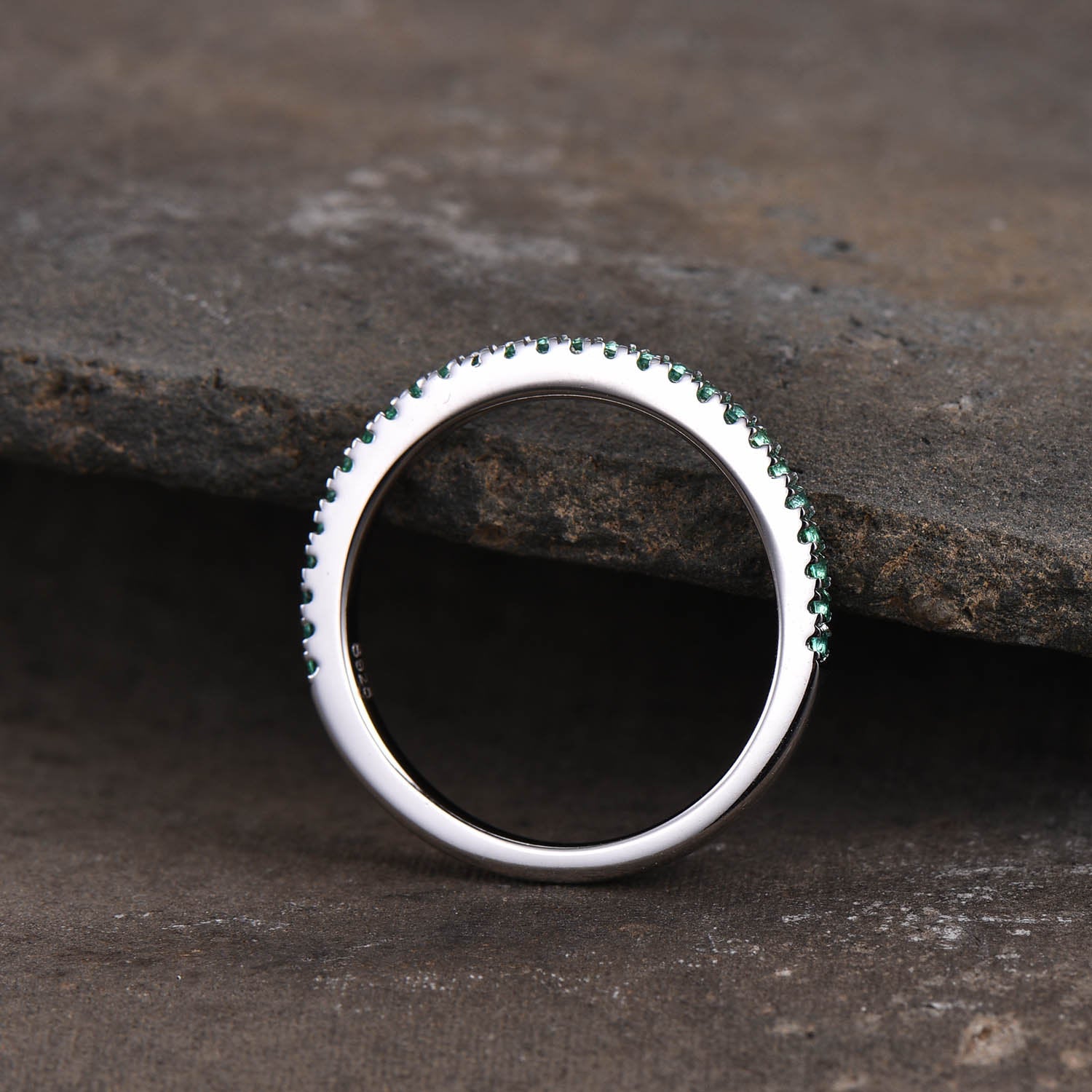 Half Eternity Emerald Band, Emerald Wedding Band, May Birthstone Ring, Dainty Stacking Ring, Silver Rings, Emerald Gold Ring, Gift for her