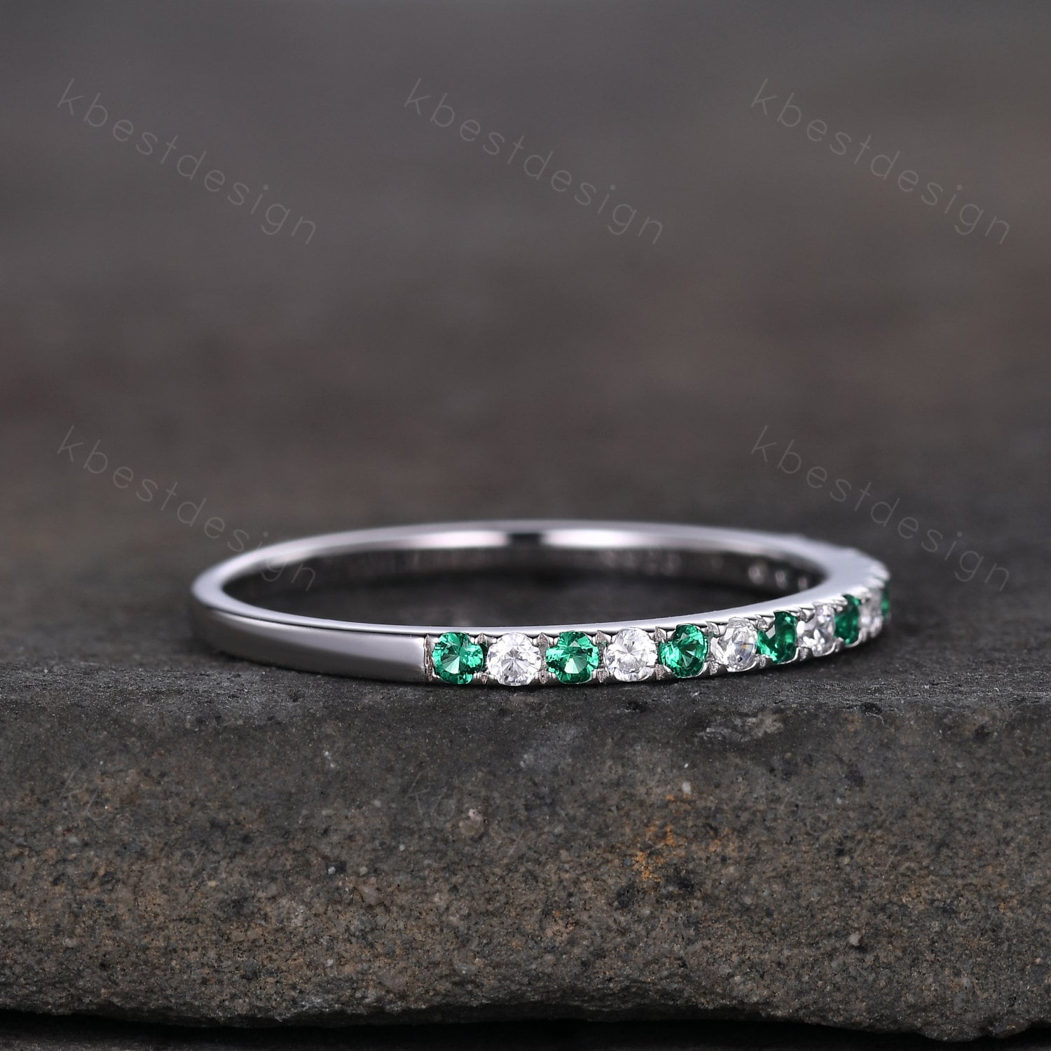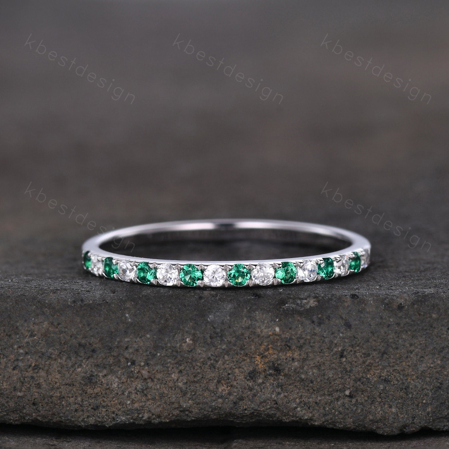Stone: half eternity 1.5mm emerald + moissanite