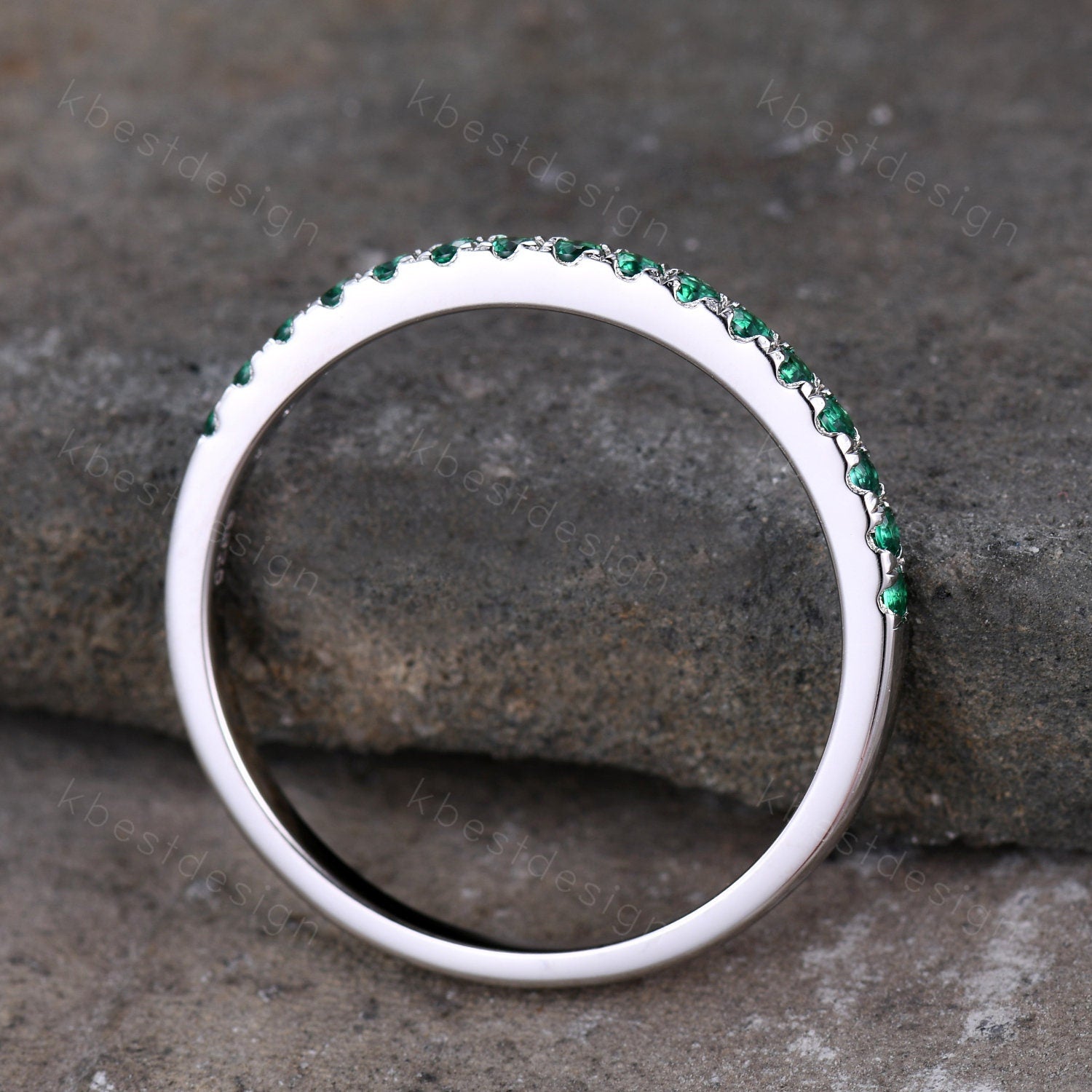 Half Eternity Emerald Wedding Band 925 Sterling Silver Ring May Birthstone Ring Emerald Stacking Matching Band Dainty Ring Anniversary Gift