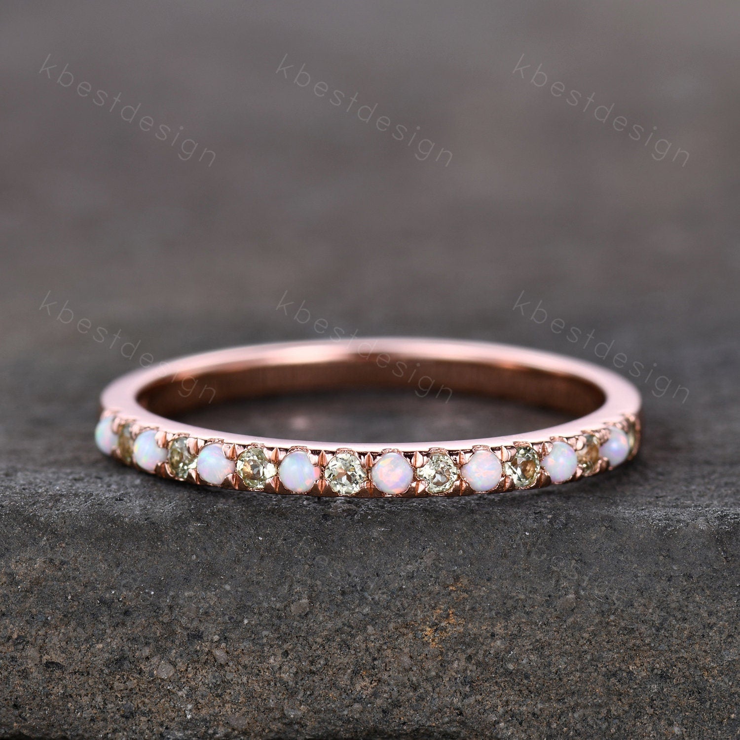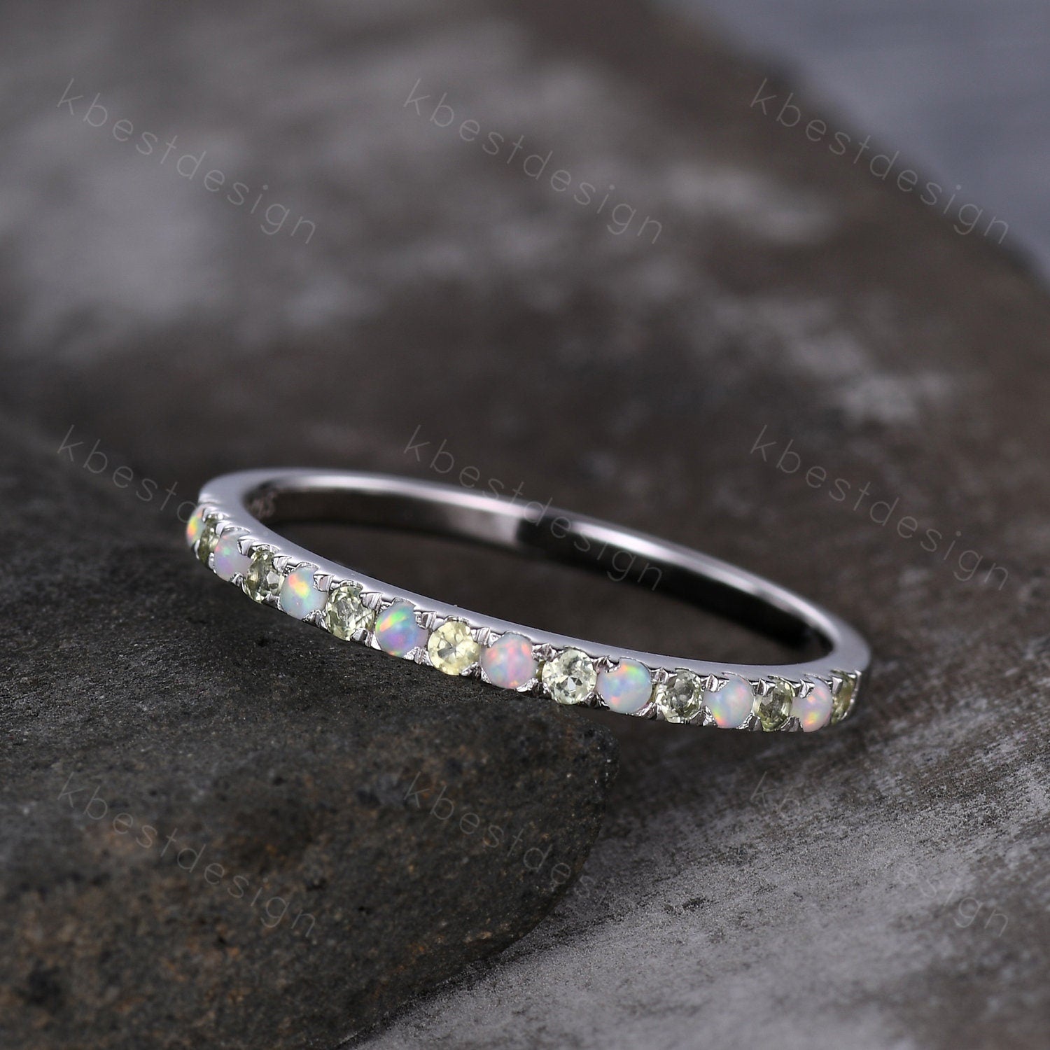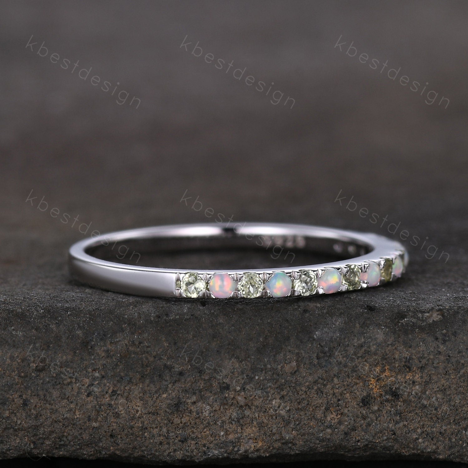 Half Eternity Peridot Opal Wedding Band, Silver Opal Wedding Band, Peridot Wedding Ring Dainty Stacking Matching Band, Anniversary Ring Gift