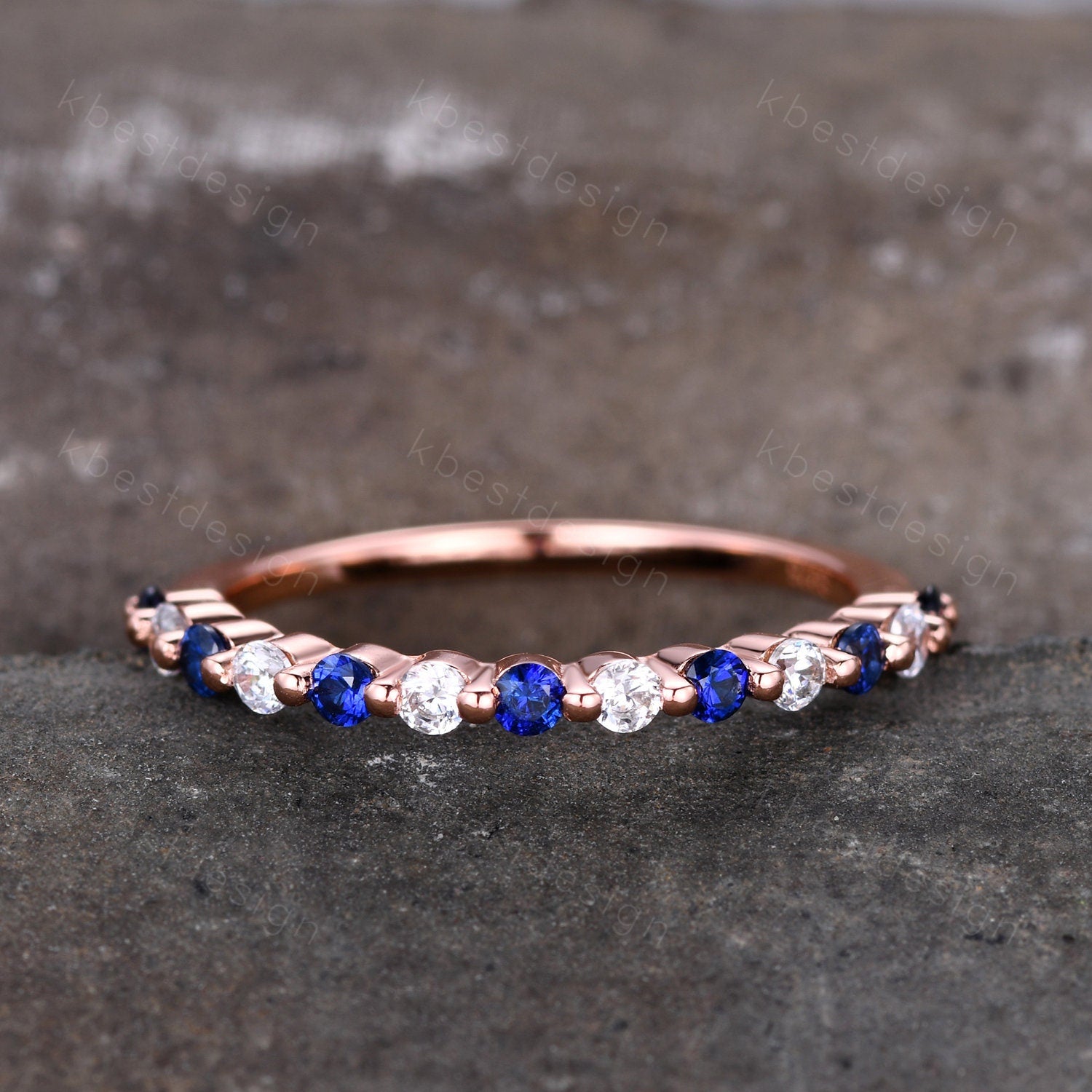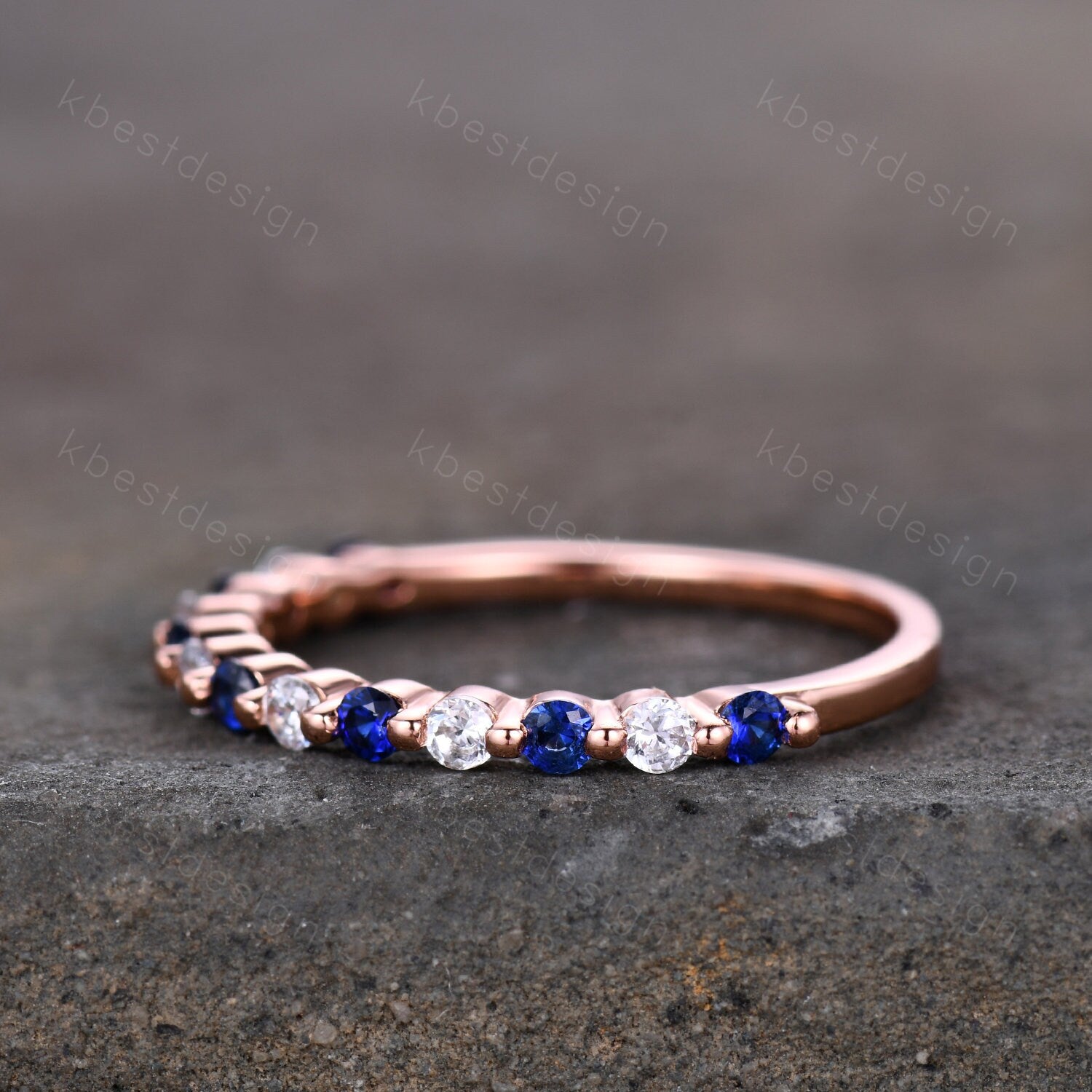 Half eternity Sapphire Moissanite Wedding Band Rose Gold Sapphire Band Unique Moissanite Stacking Band Minimalist Bridal Anniversary Ring