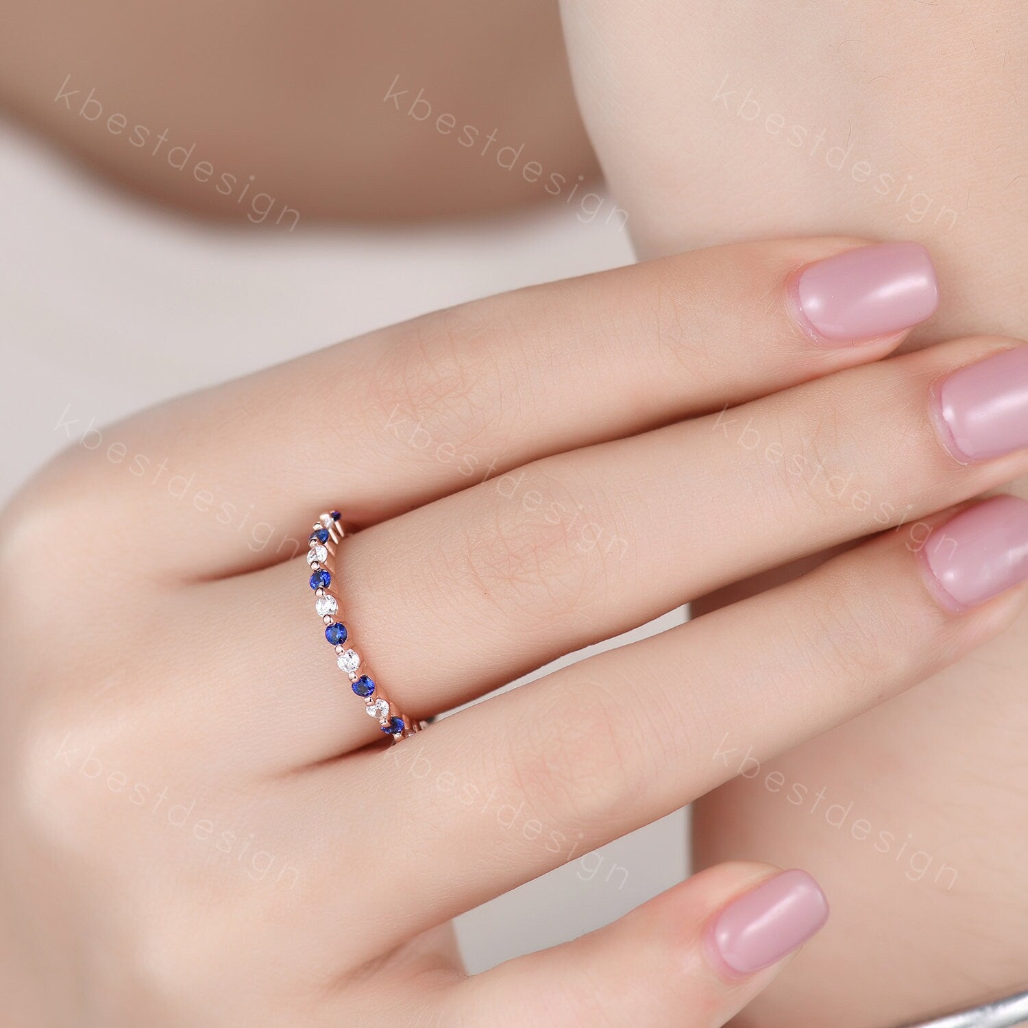 Half eternity Sapphire Moissanite Wedding Band Rose Gold Sapphire Band Unique Moissanite Stacking Band Minimalist Bridal Anniversary Ring.