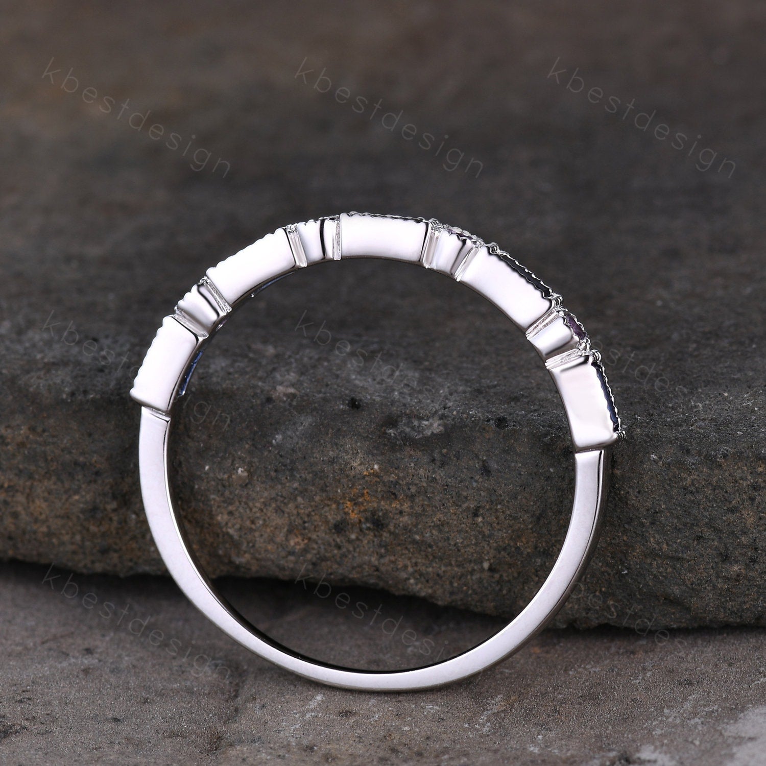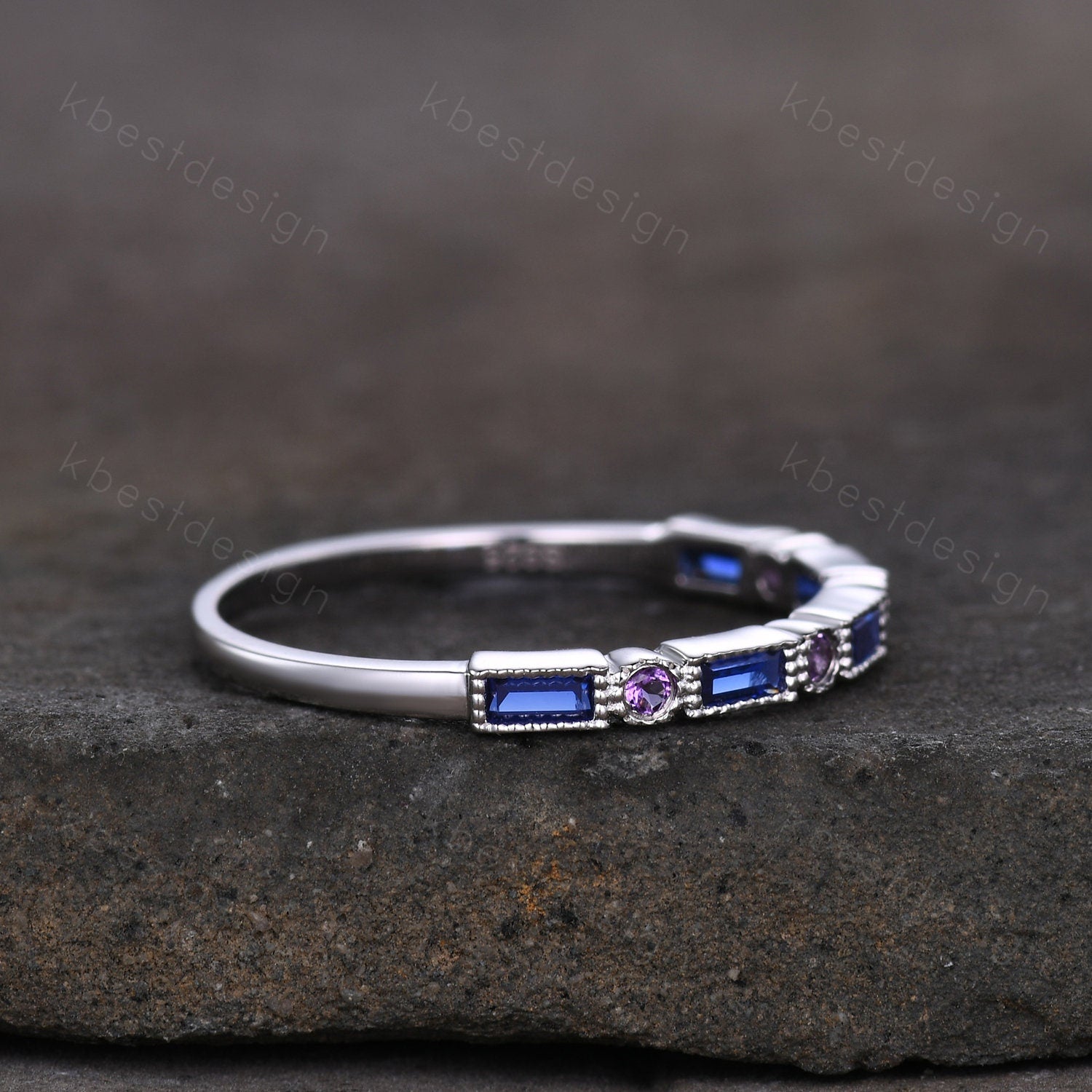 Half Eternity Sapphire Ring Baguette Sapphire and Amethyst Wedding Band Silver Ring Art Deco Vintage Wedding Bridal Anniversary Ring
