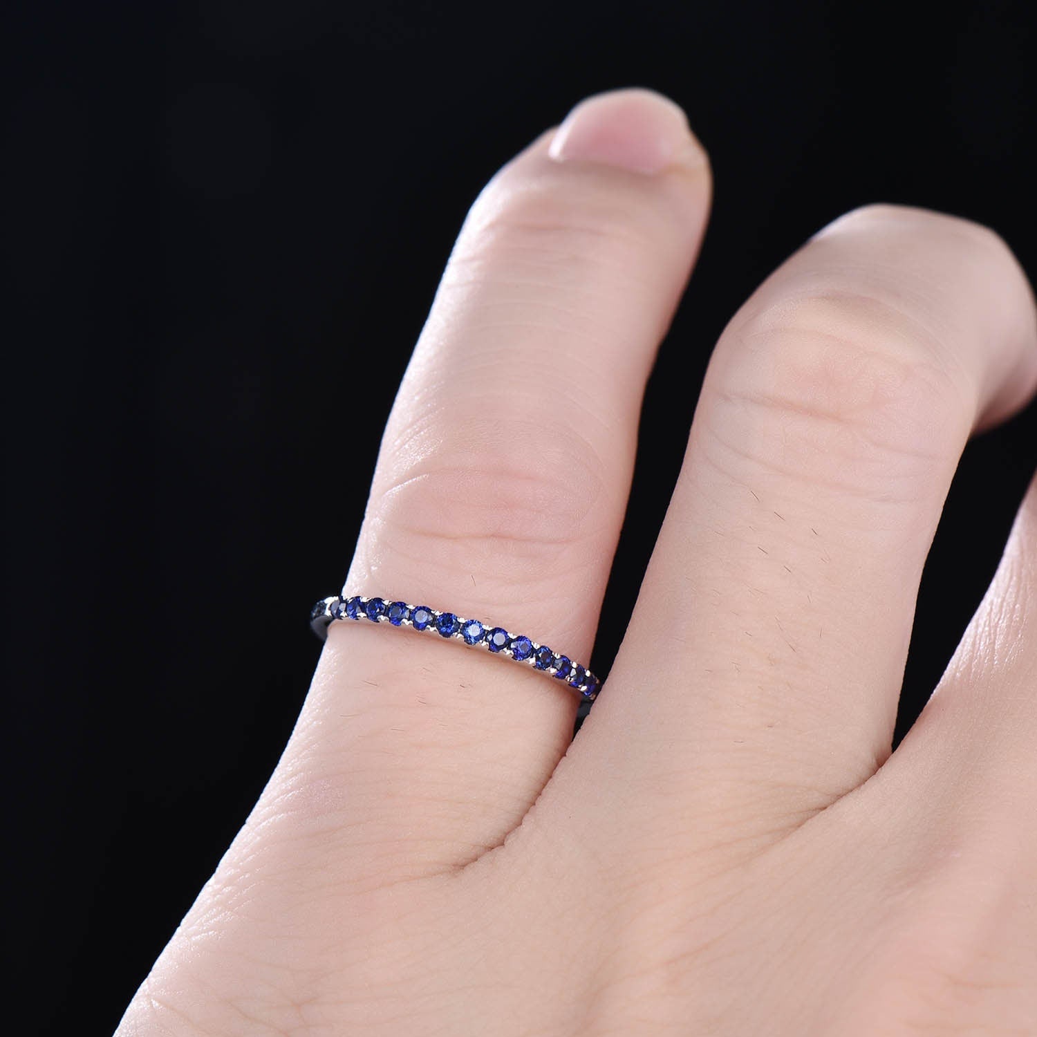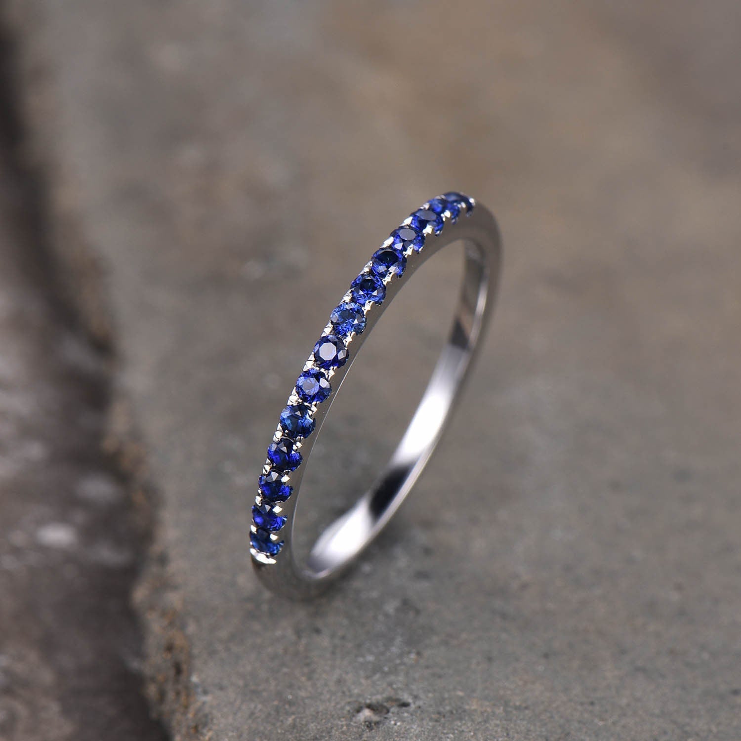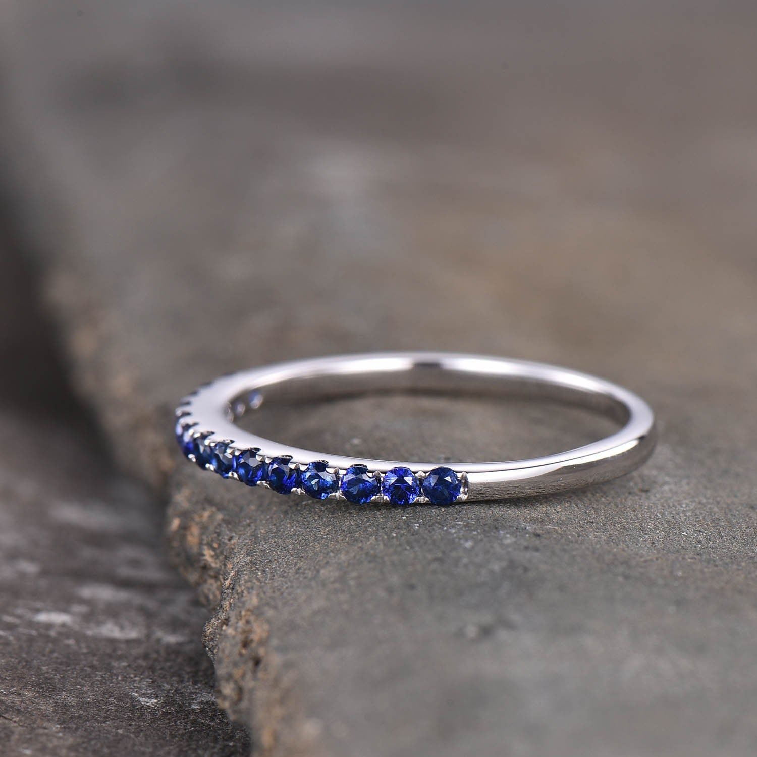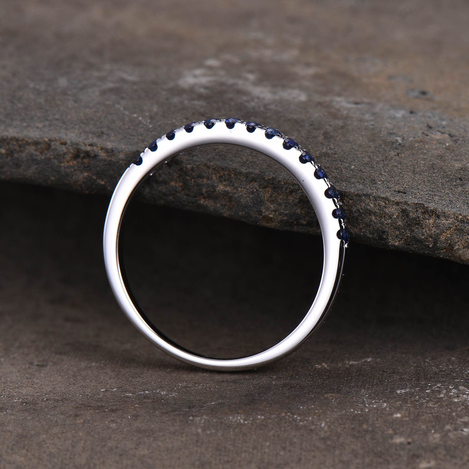 Half Eternity Sapphire Ring, Sapphire Wedding Band, Silver Sapphire Ring, Gemstone Band, Stacking Ring, Matching Band, Anniversary Gift