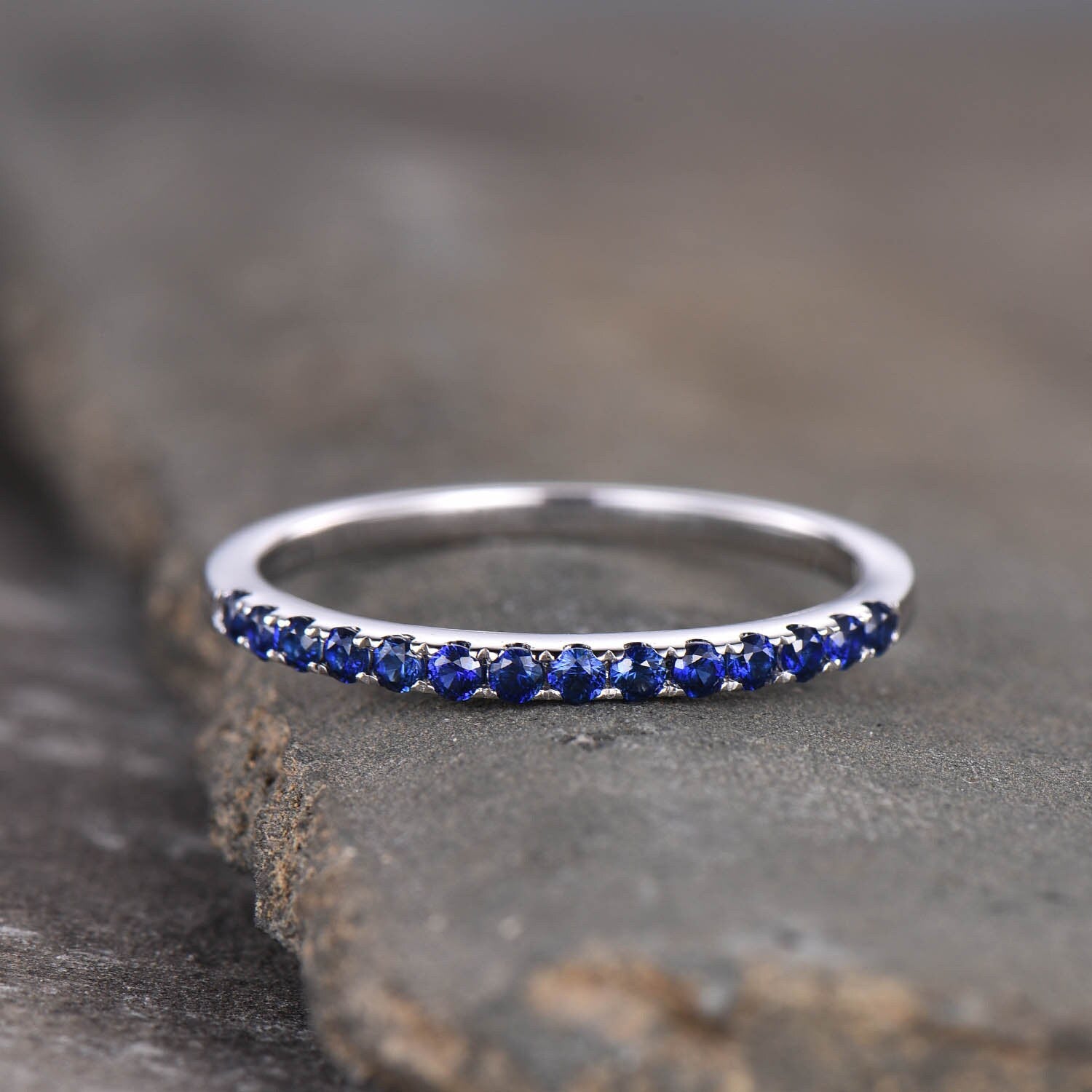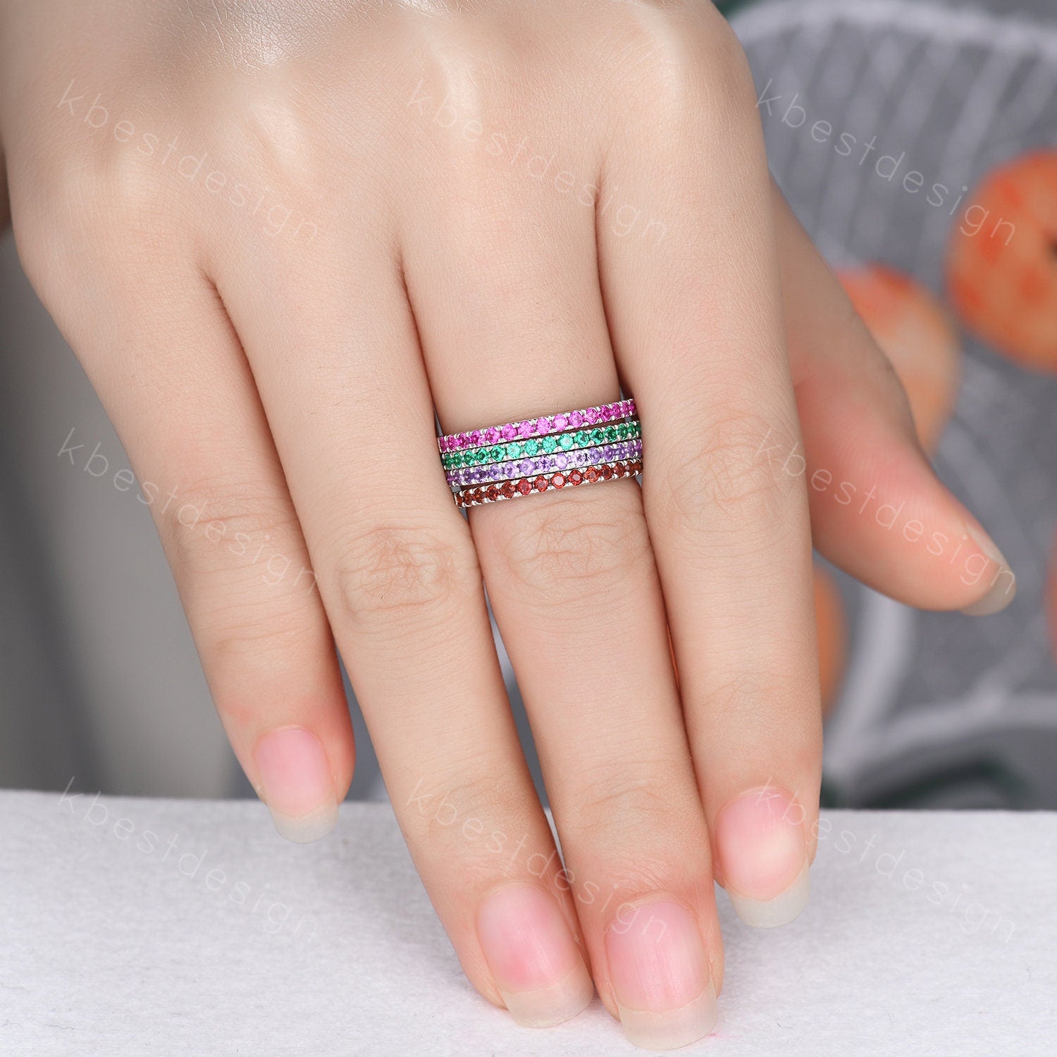 Half Eternity Wedding Band, Emerald Band, Ruby Ring, Gemstone Band, Birthstone Ring, Pave Stacking Band, Gift for her, Sterling Silver Ring
