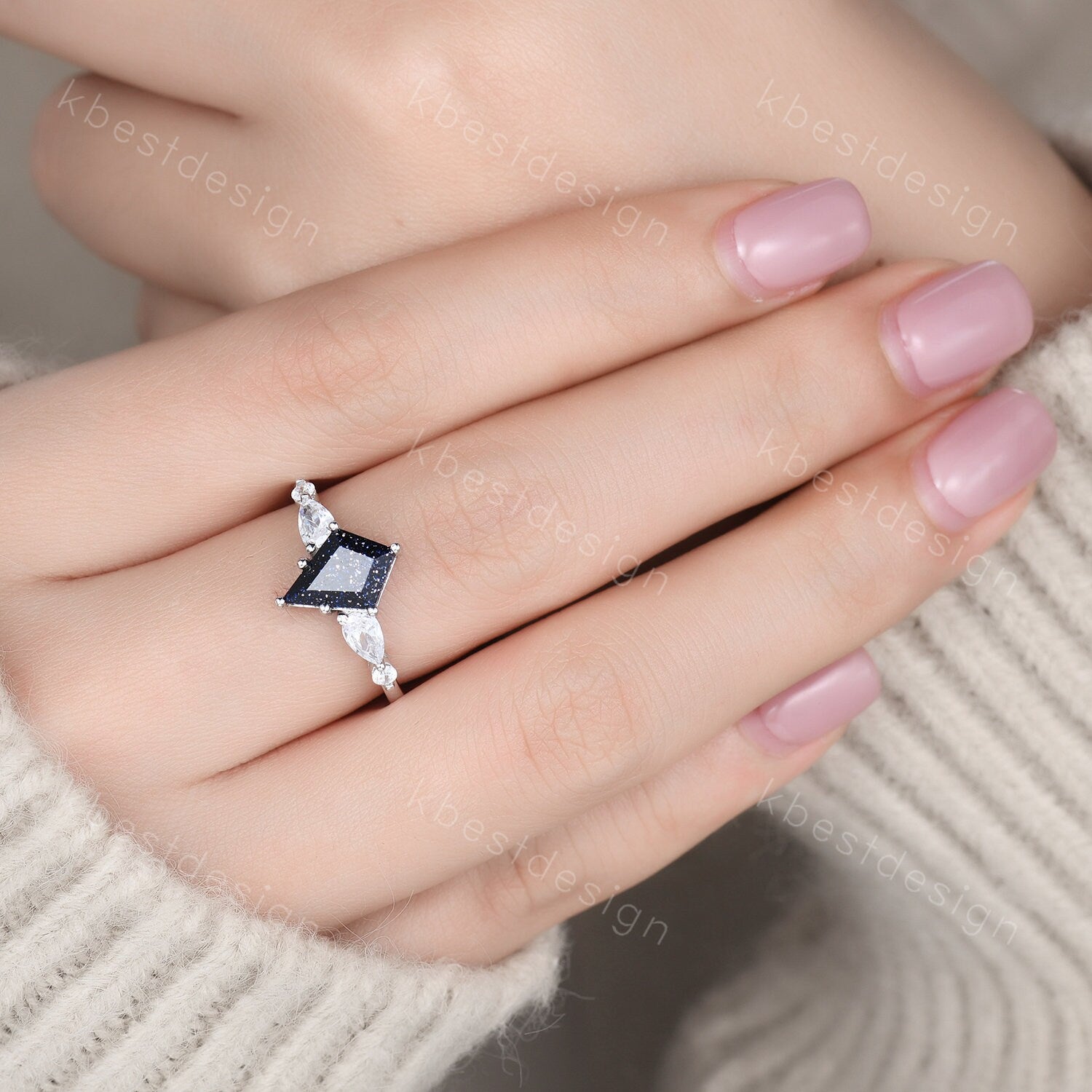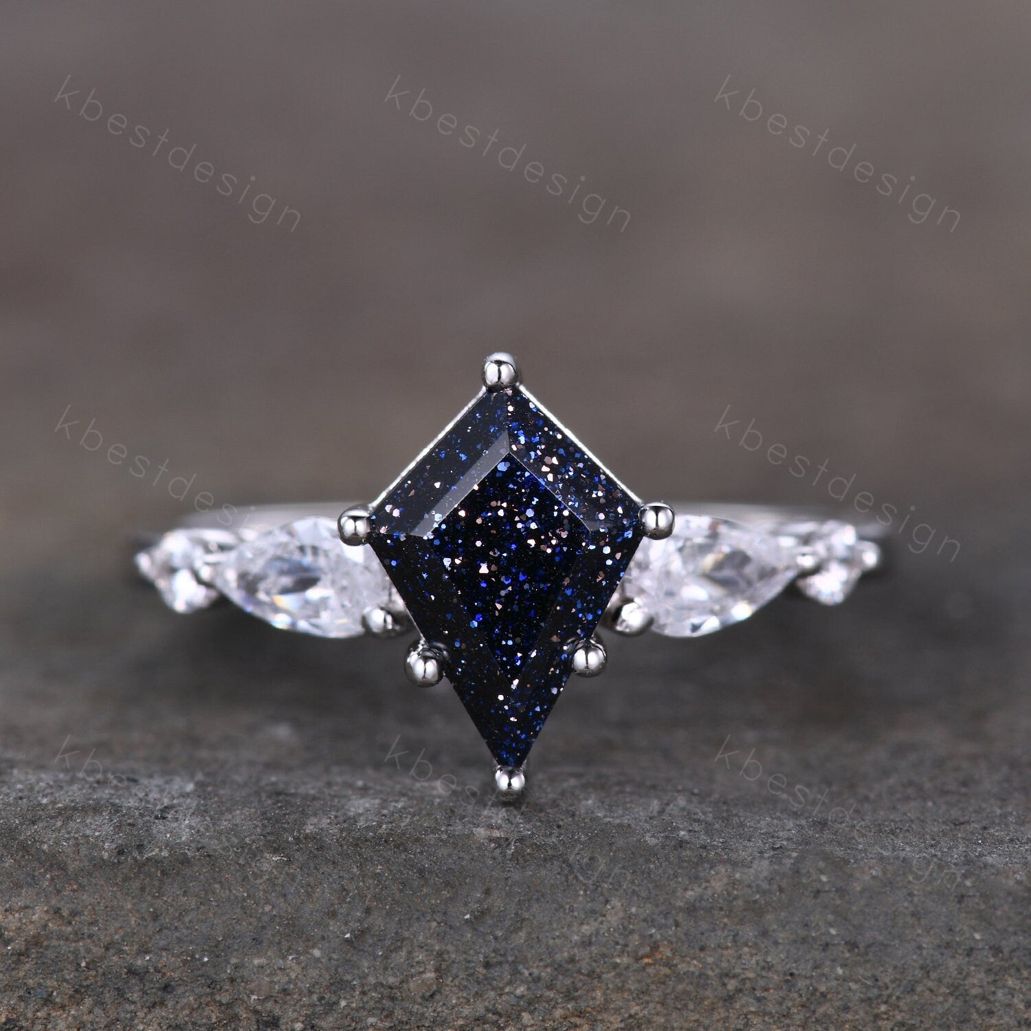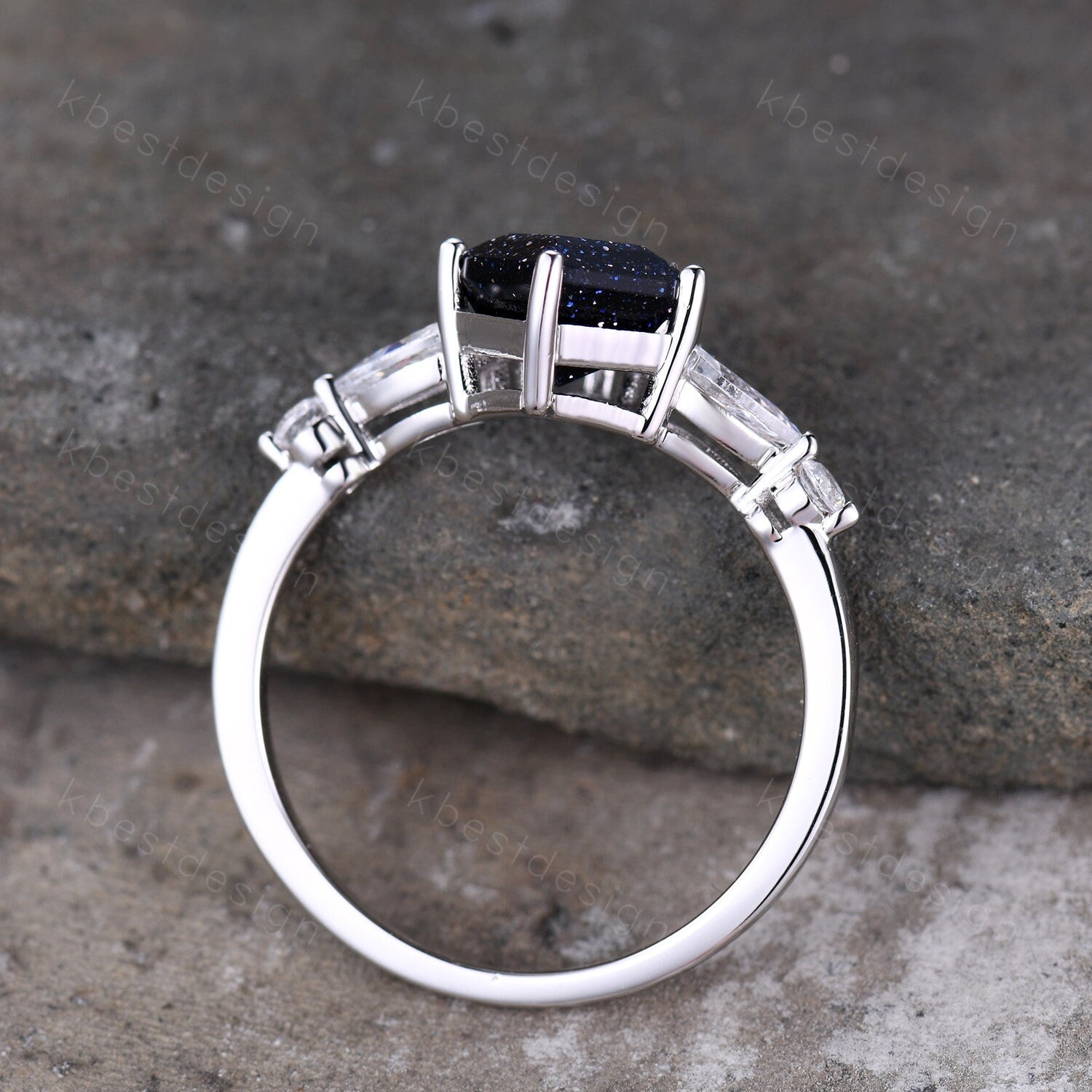 Kite cut blue sandstone engagement ring unique pear shaped diamond wedding ring for women sterling silver ring promise ring gift for her