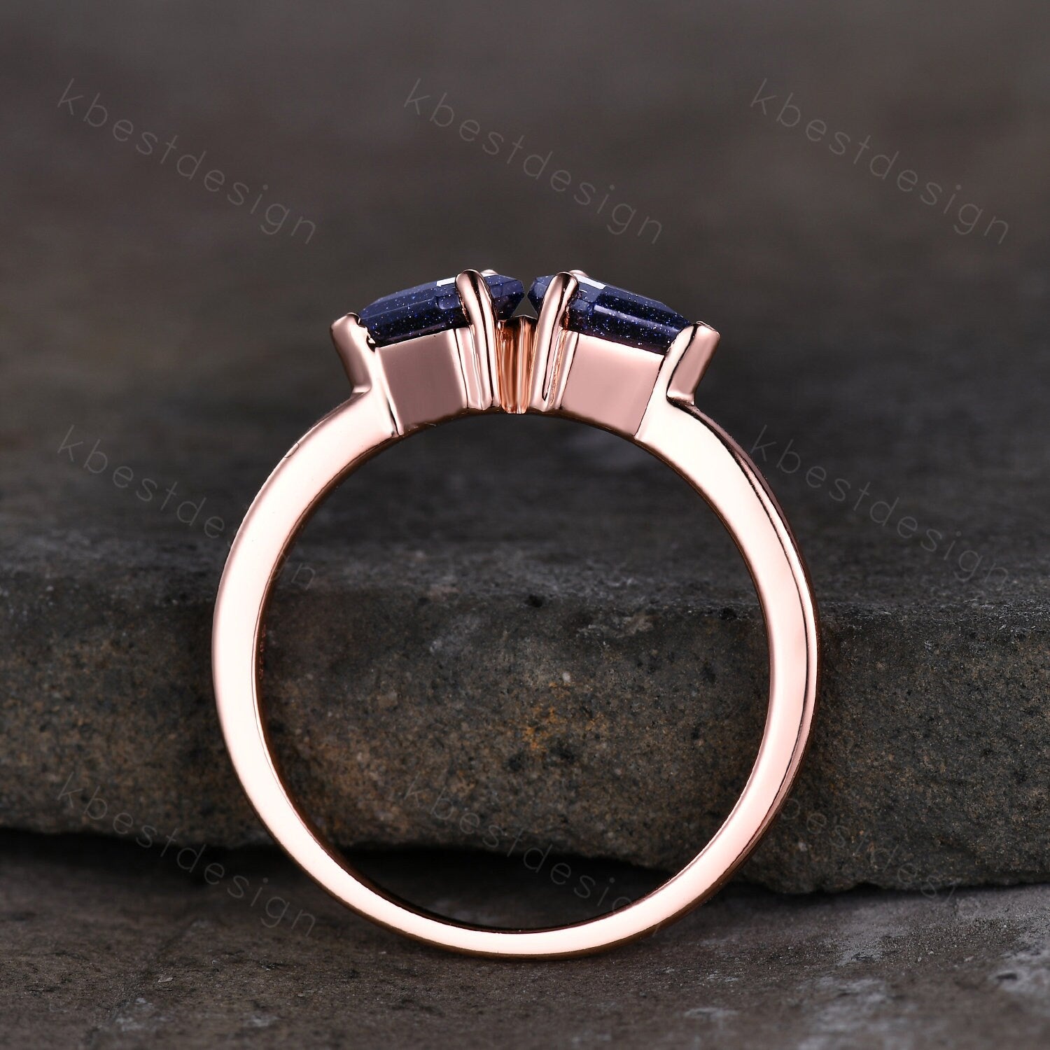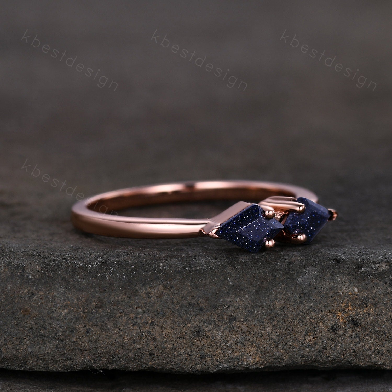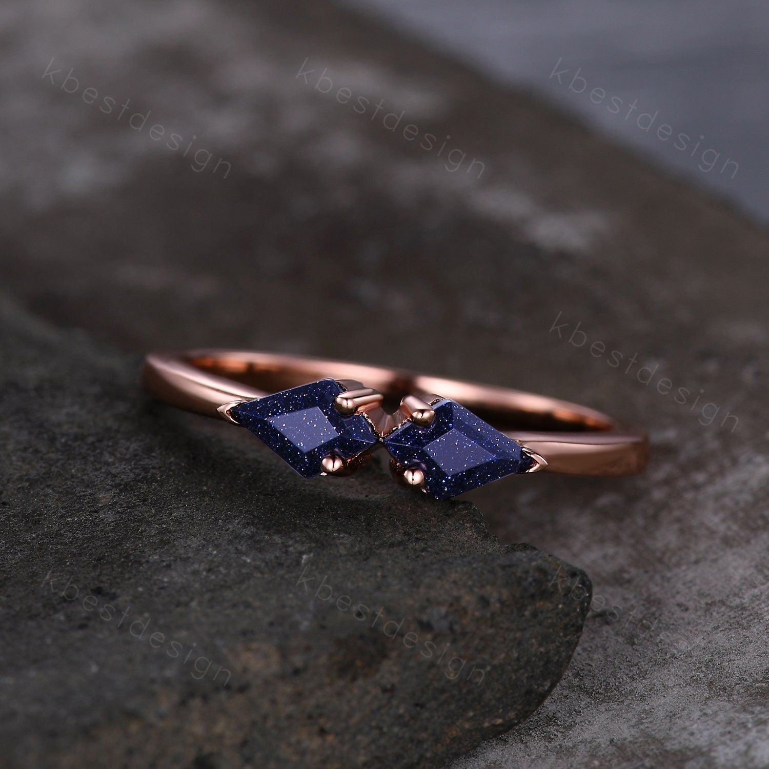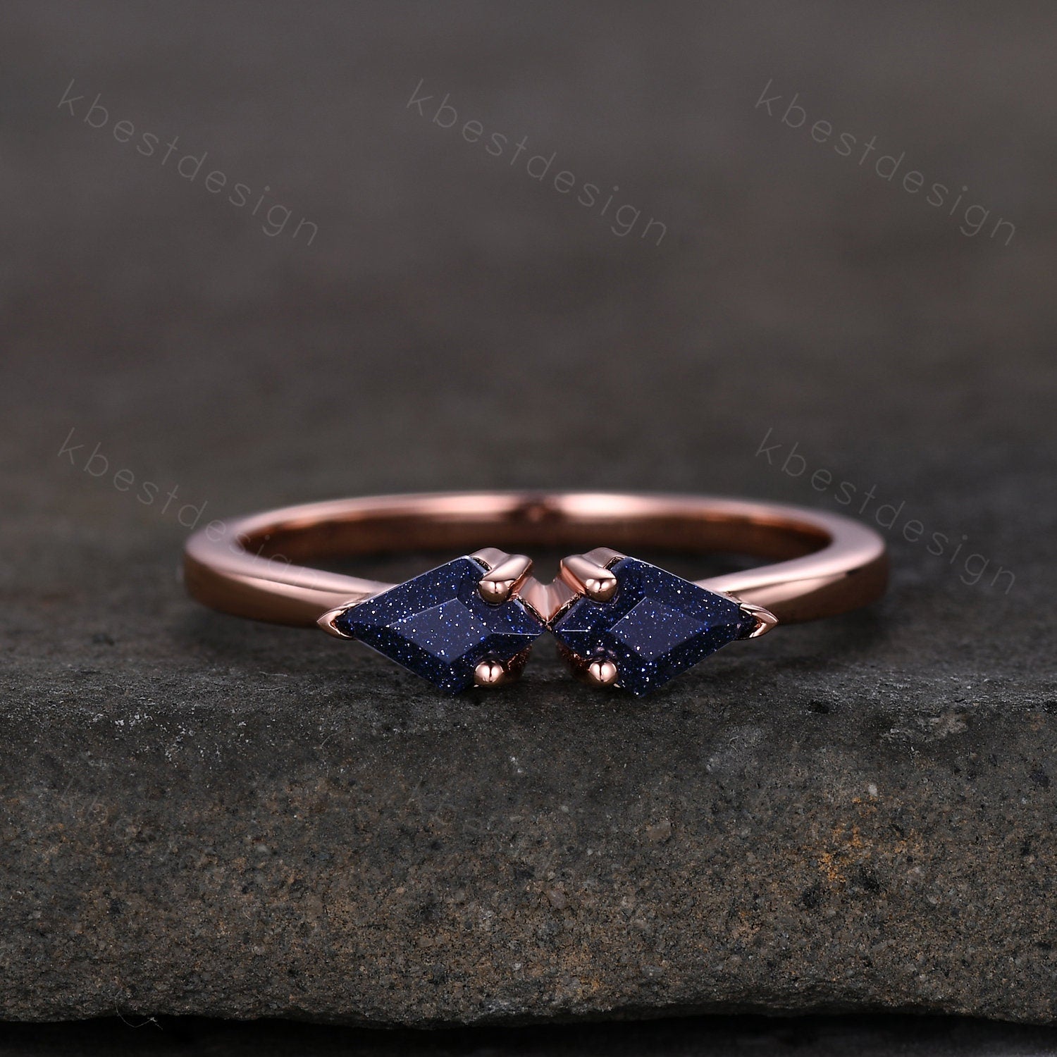 Kite cut blue sandstone wedding band solid 14k rose gold stacking unique vintage wedding ring band for women anniversary ring gift