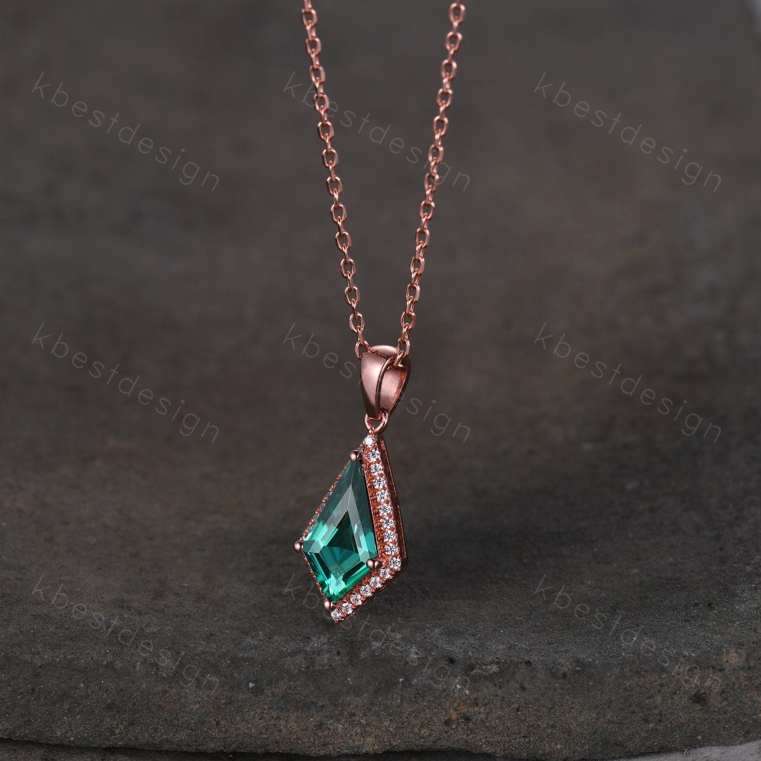 Kite cut green emerald necklace solid 14k 18k gold vintage unique customized pendant necklace women May birthstone bridal anniversary gift