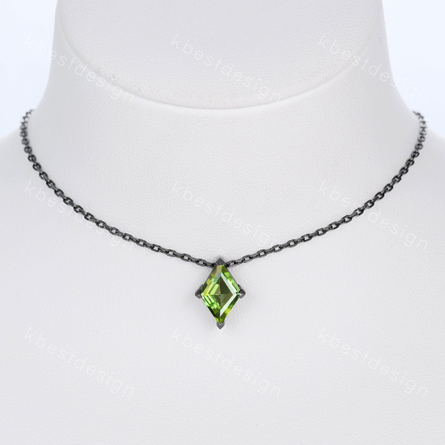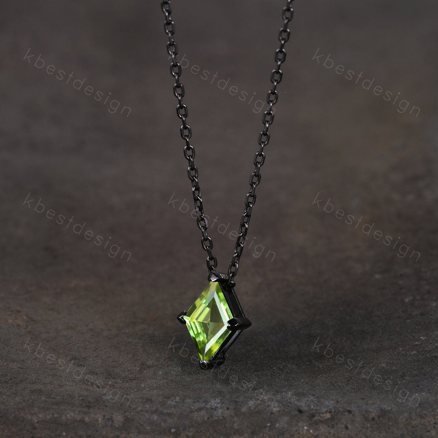 Lozenge cut Peridot Necklace Black Gold Rhodium Plated Necklace August Birthstone Necklace Unique Personalized Pendant Gift for Her