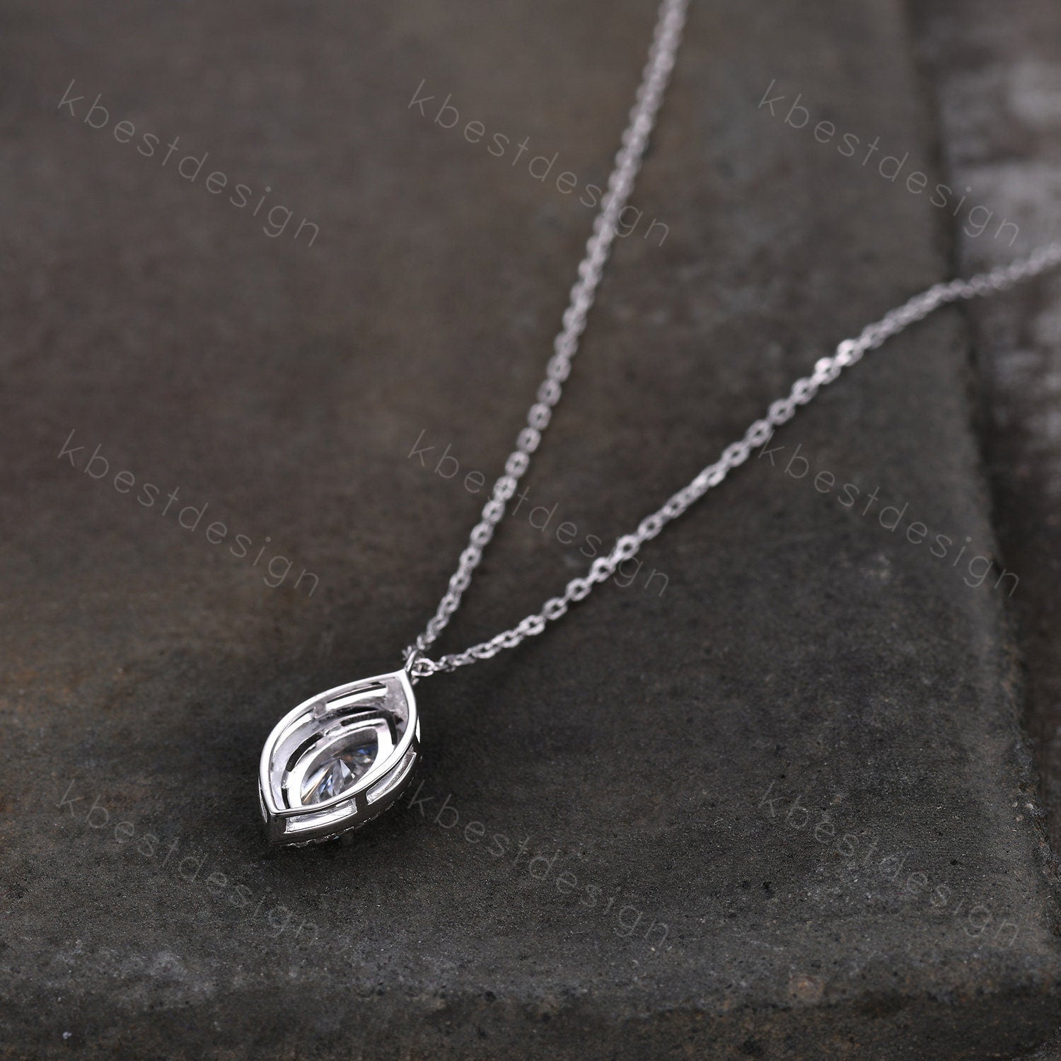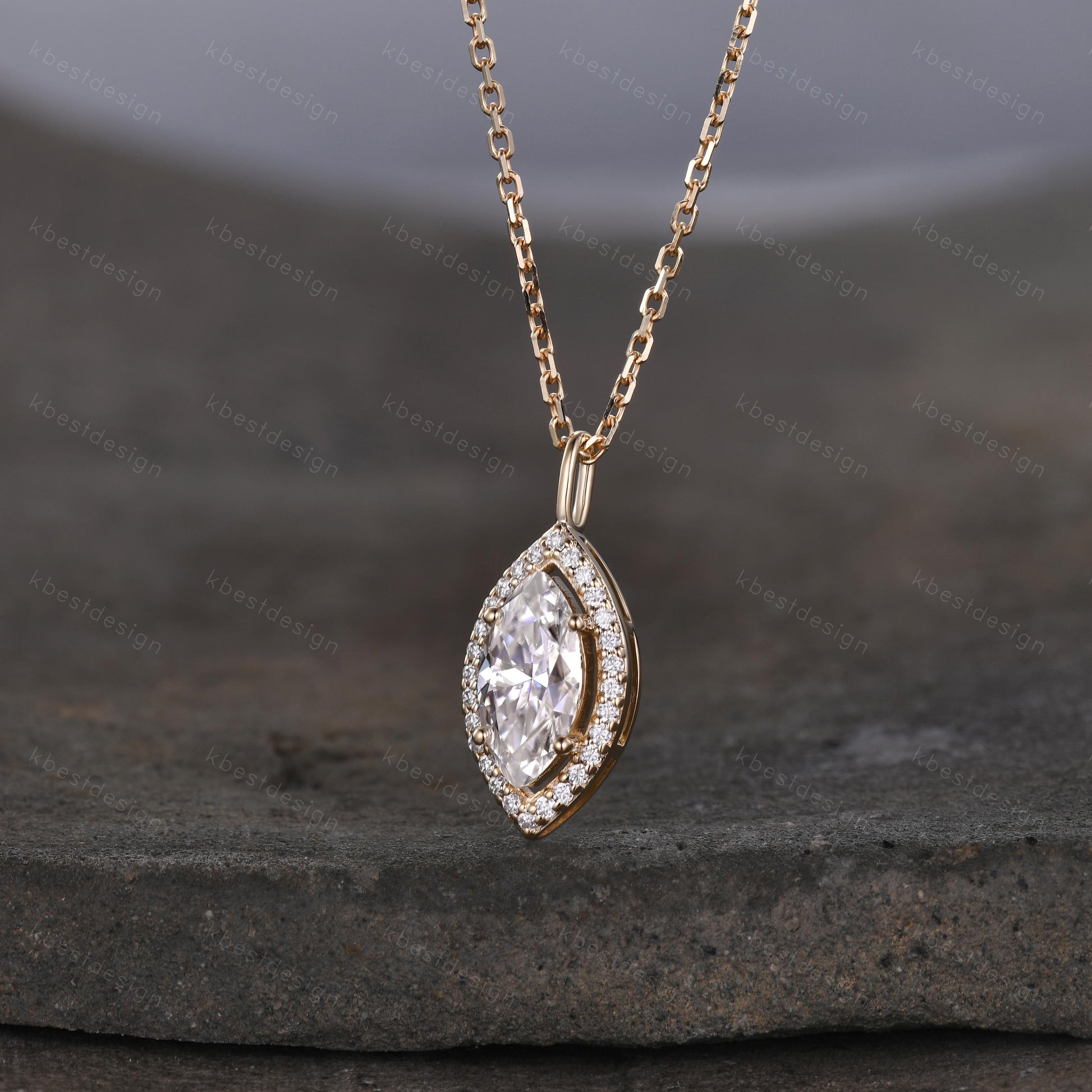 This beautiful marquise cut Moissanite Necklace surrounded by Moissanite/Simulated Diamonds. For those who are looking for agate jewelry which is handcrafted in details, this unique moissanite necklace would be a perfect choice for you. Whether it be a Birthday gift for her, an anniversary gift her, or a celebration of yourself, this moissanite jewelry is the perfect gift from the heart.