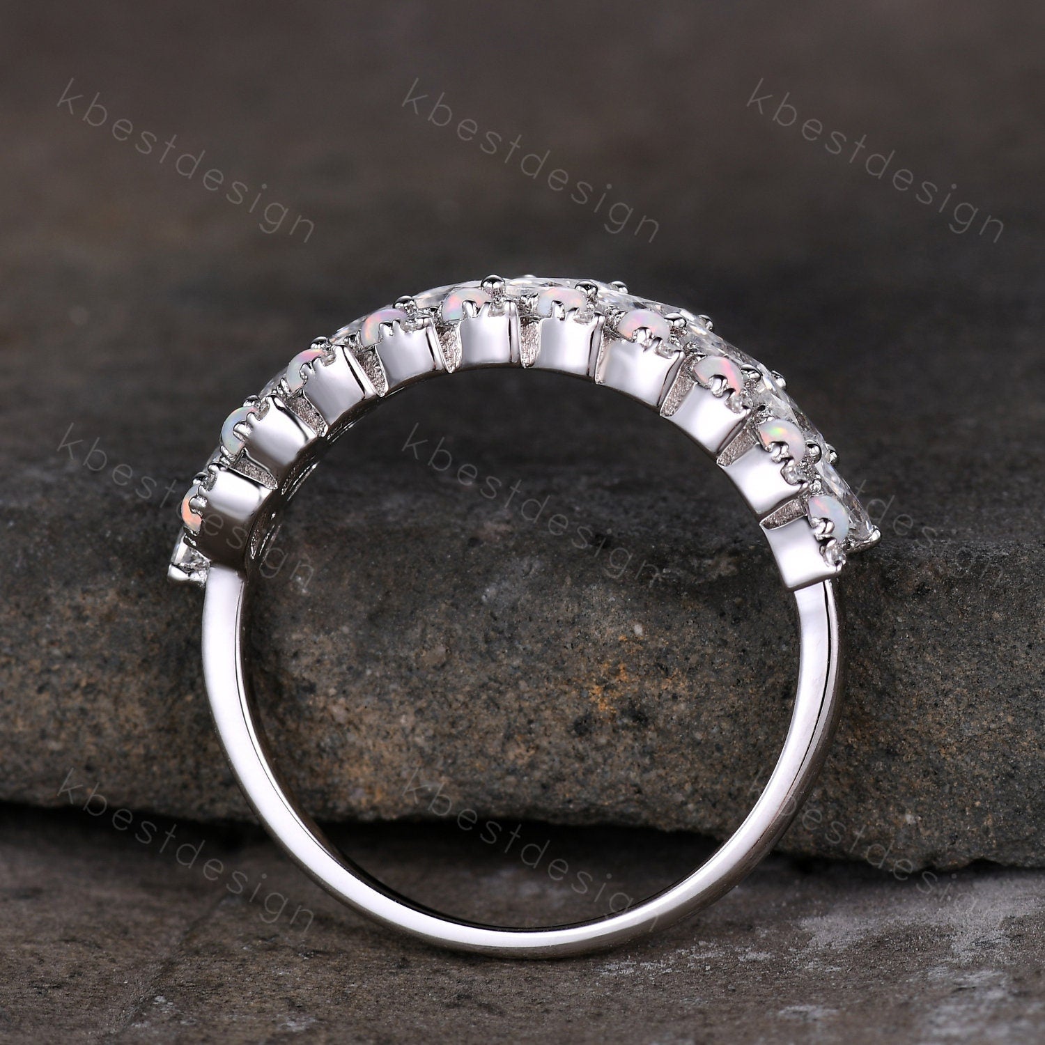 Marquise cut Moissanite Wedding Band Half Eternity Stacking Band Unique Opal Wedding Ring Women Matching Band Promise Anniversary Ring