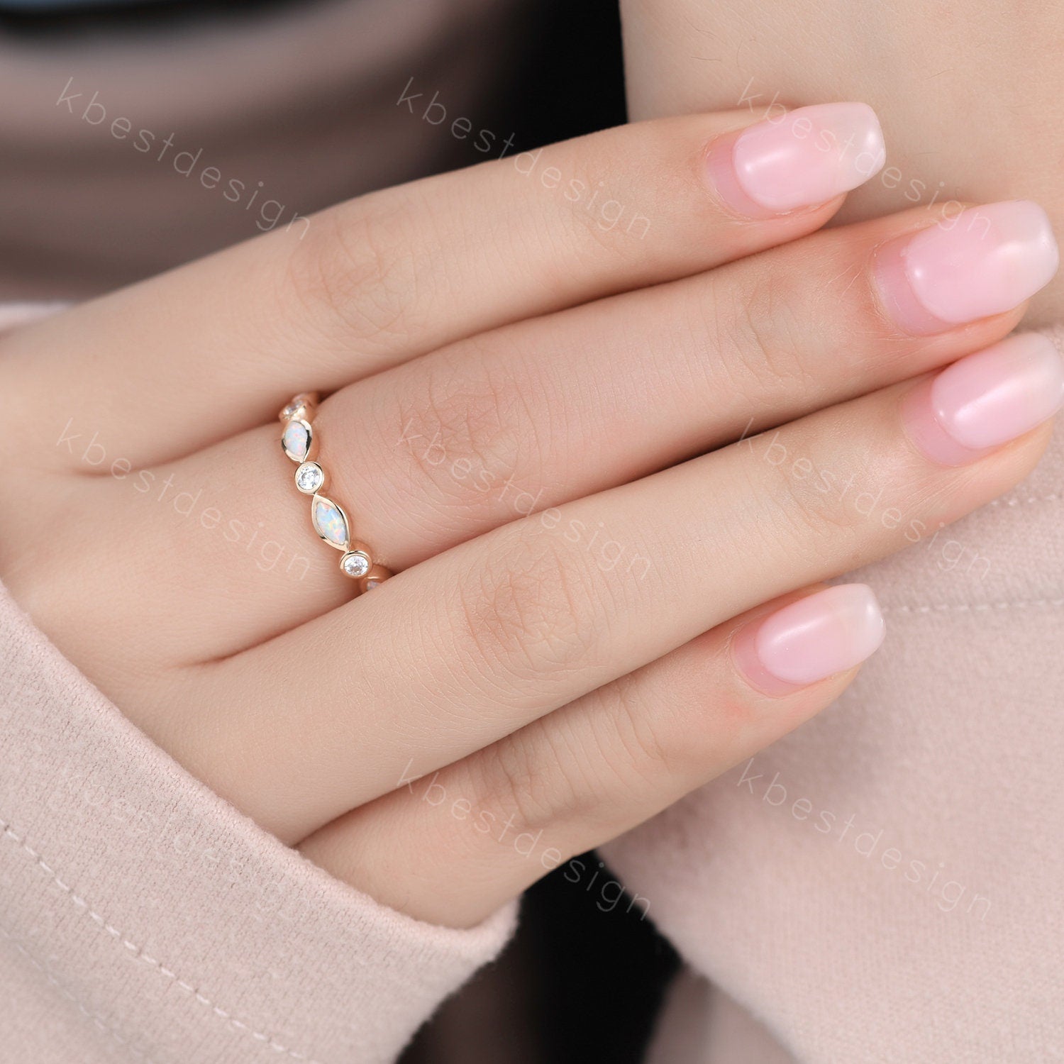 Marquise Opal Ring Full Eternity Opal Wedding Band Moissanite Wedding Ring Art deco Stacking Matching Band Anniversary Band Solid Gold Ring