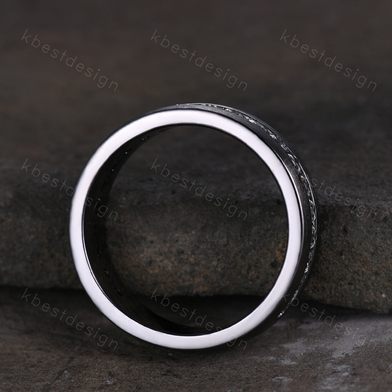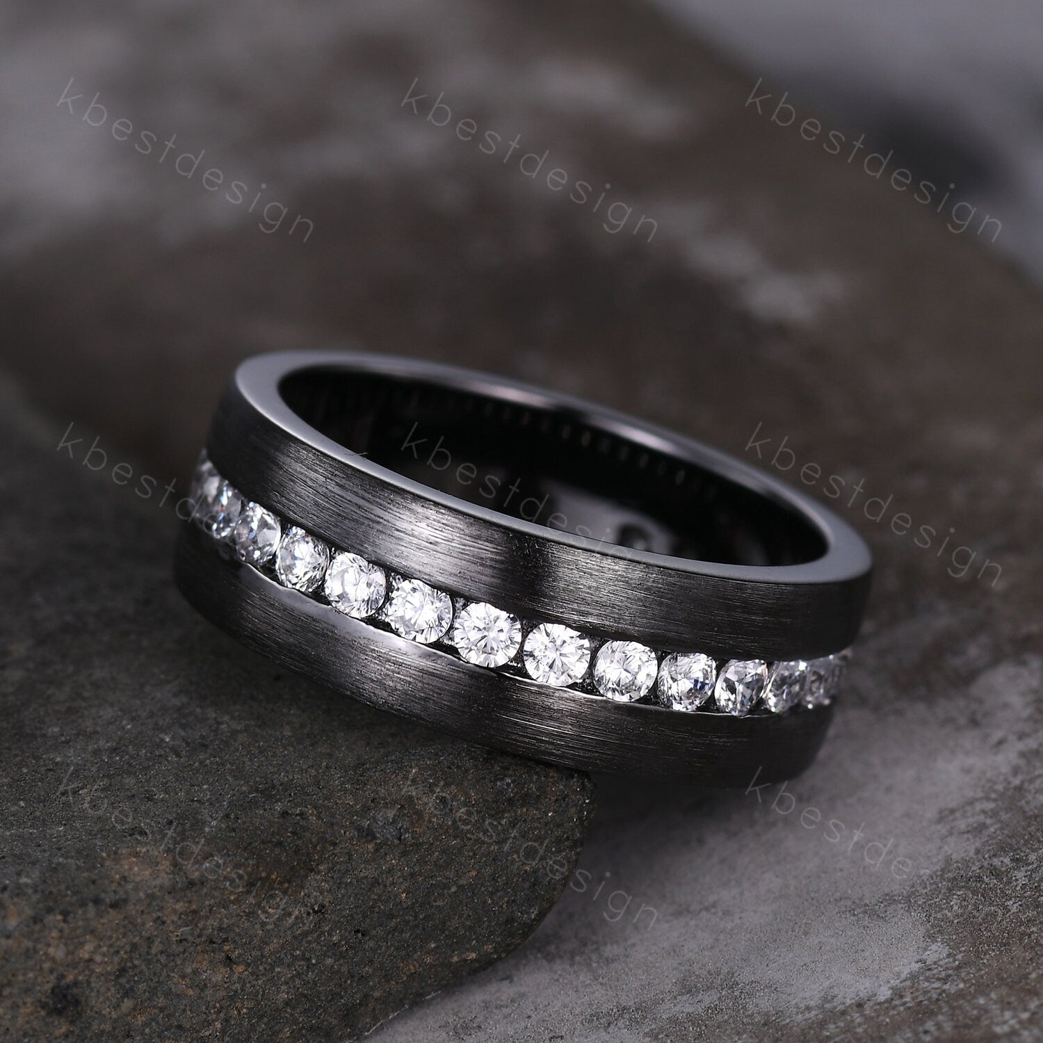 This is a Mens Moissanite Wedding Band Black Gold Moissanite Band Brushed Finish Band Mens 7mm Stacking Matching Band Retro Vintage Ring