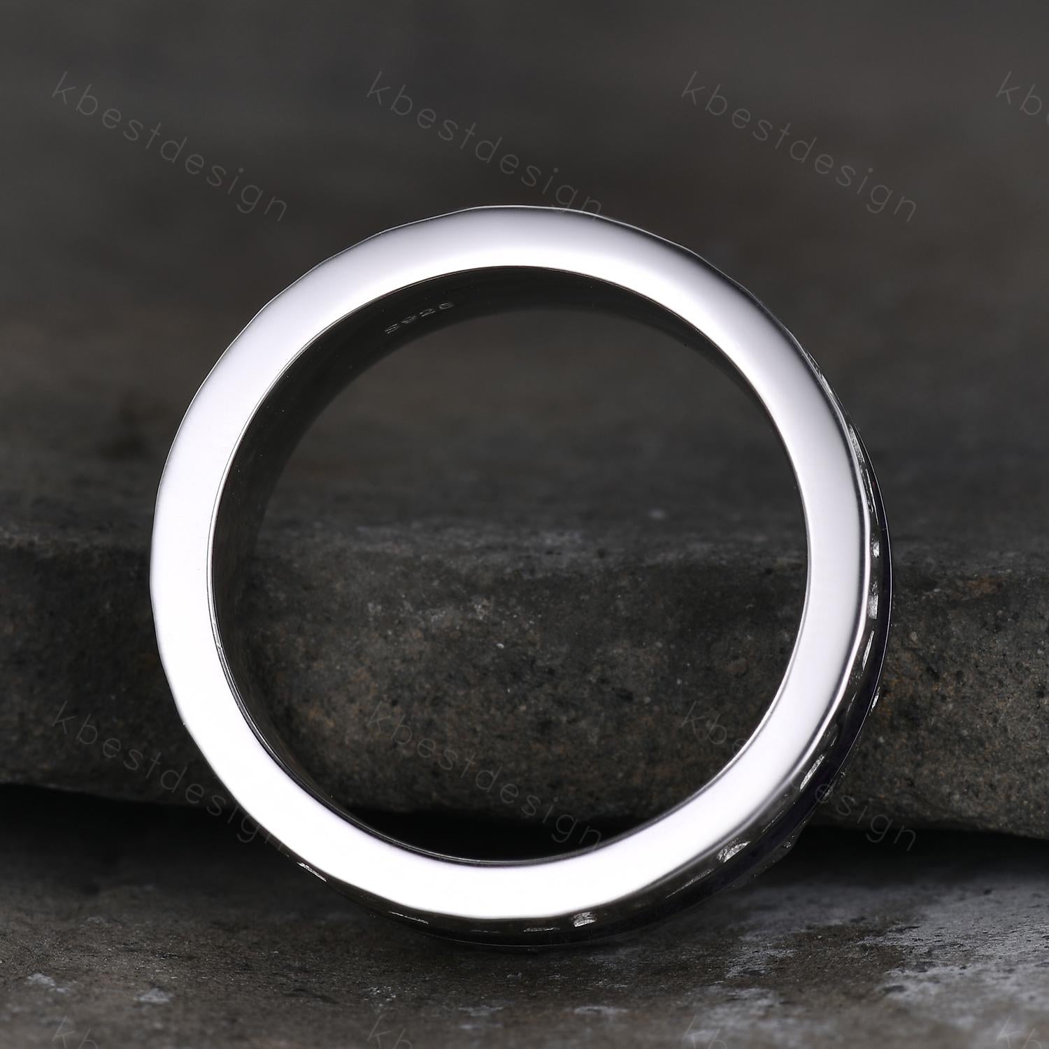 Mens Purple Enamel Wedding Band Unique Eternity Wedding Ring 925 Sterling Silver Ring Mens Hammered Stacking Matching Band Personalized Gift