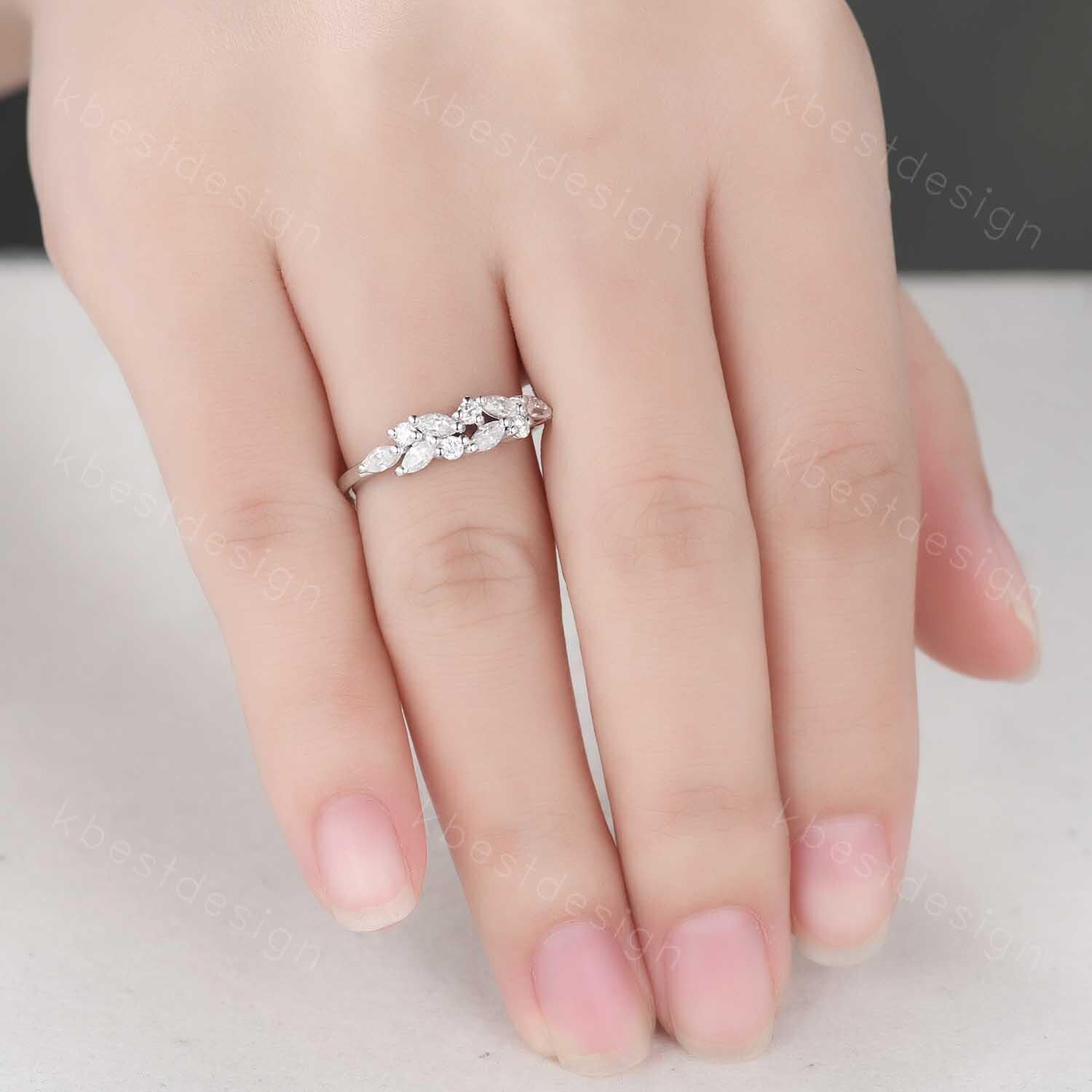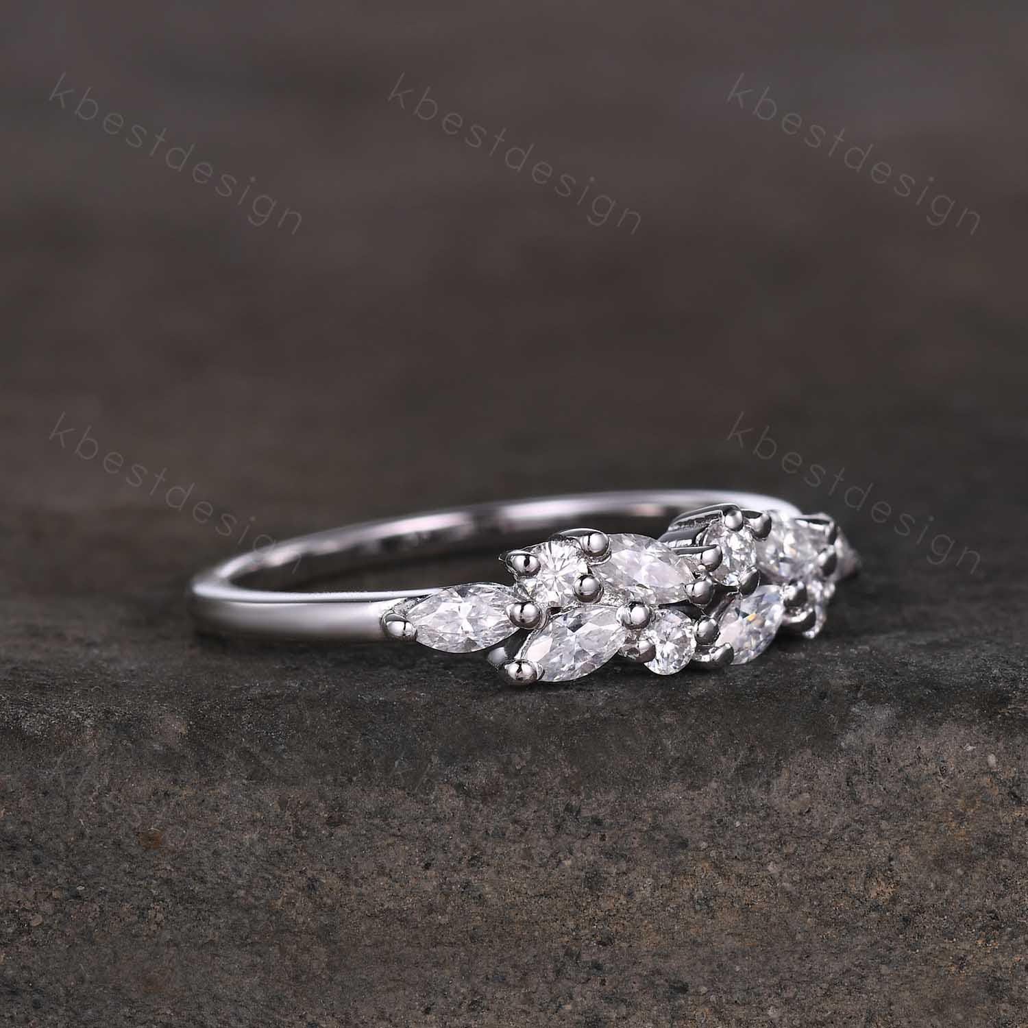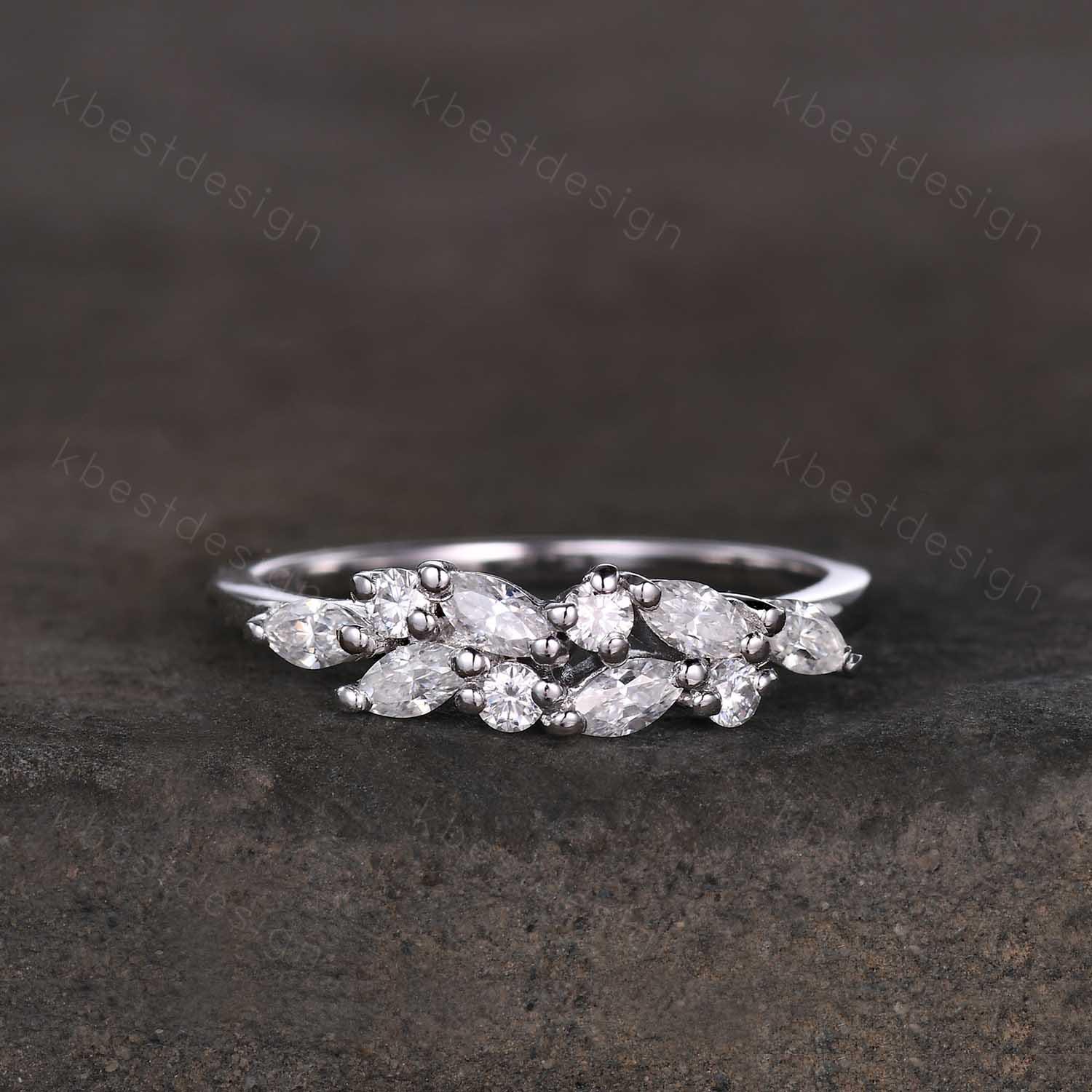 This is a Moissanite cluster wedding band Unique marquise cut moissanite wedding band Vintage stacking matching band Silver ring Anniversary gift