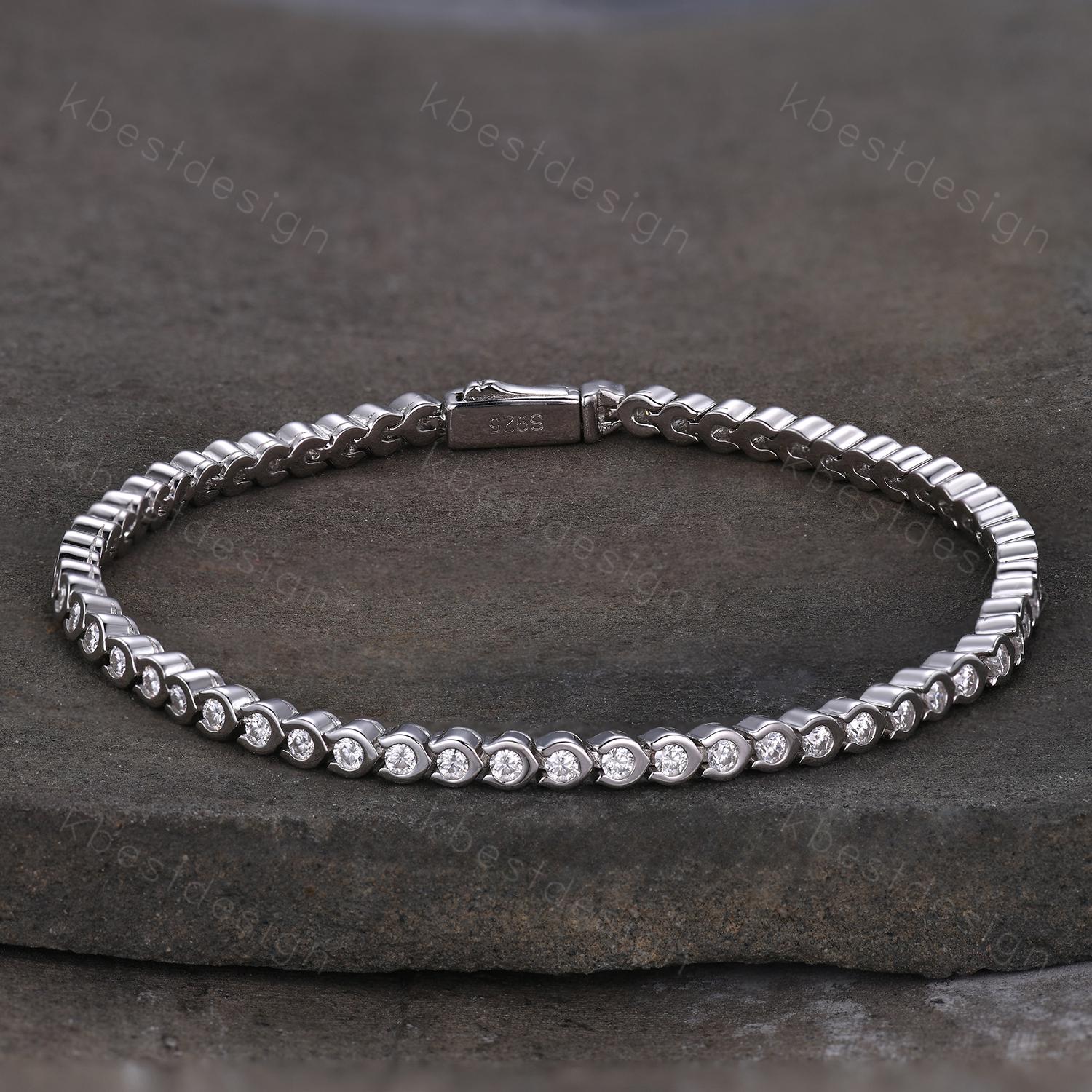 Moissanite Dainty Tennis Bracelet, 925 Silver Moissanite Bracelet, Moissanite Chain Bracelet, Minimalist Bracelet, Maid of Honor Gift