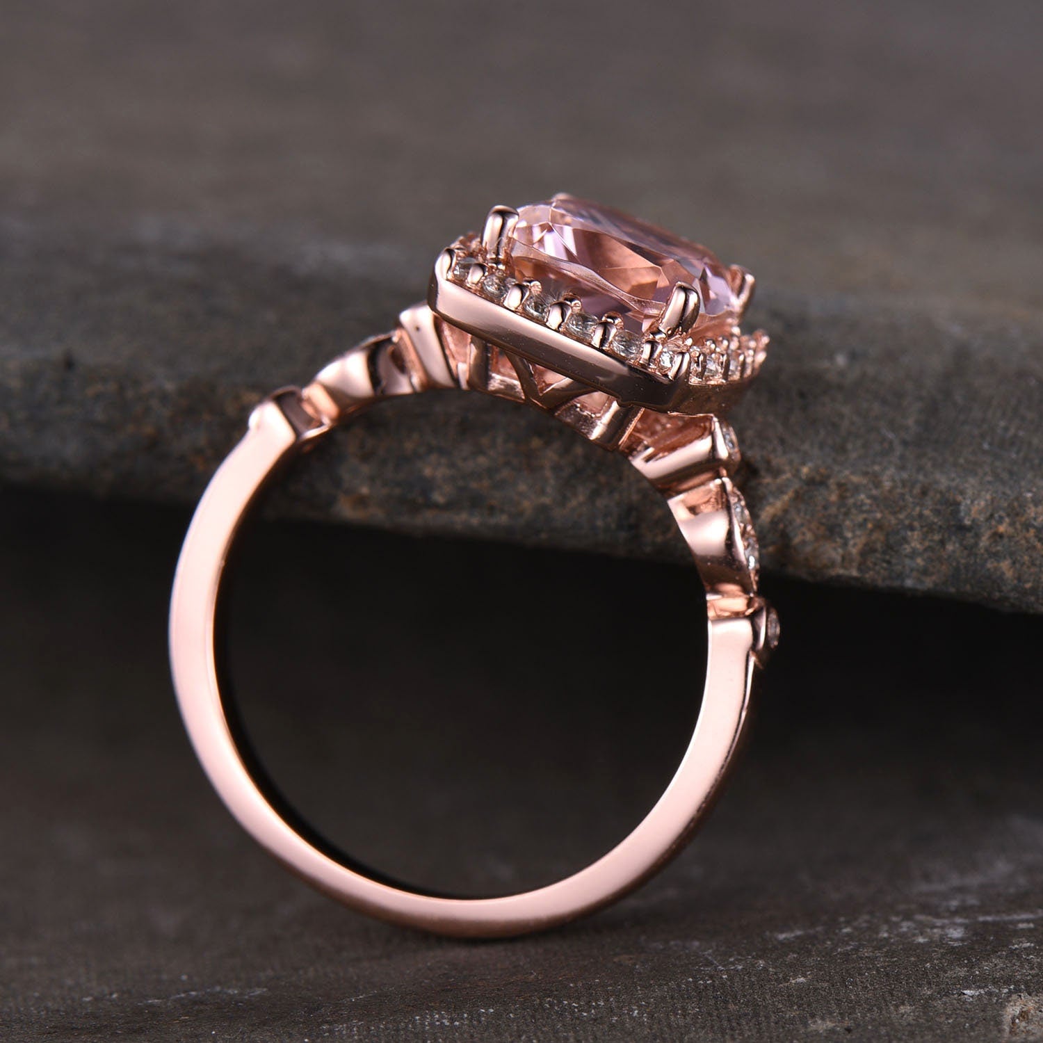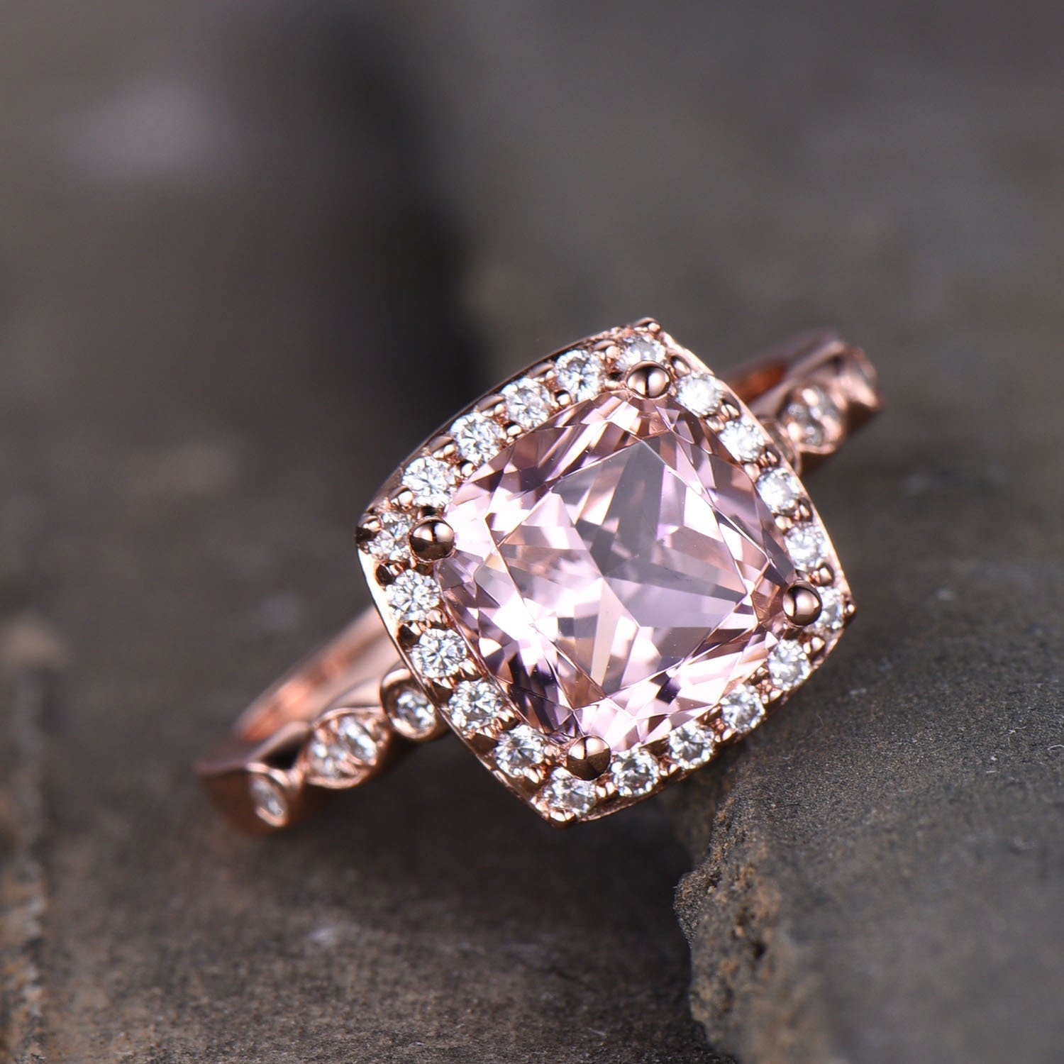 Morganite Engagement Ring, Pink Morganite Ring, Cushion Gemstone ring, Stackable Ring, Rose Gold Ring, Gift for Her, Bridal Ring, Silver