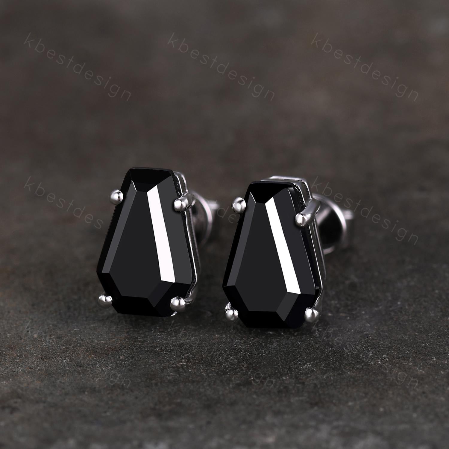 This tiny coffin cut earrings made with natural black onyx. Each pair of earrings is lovingly made with hand selected black onyx to add a little extra shine and magic to your look overall.