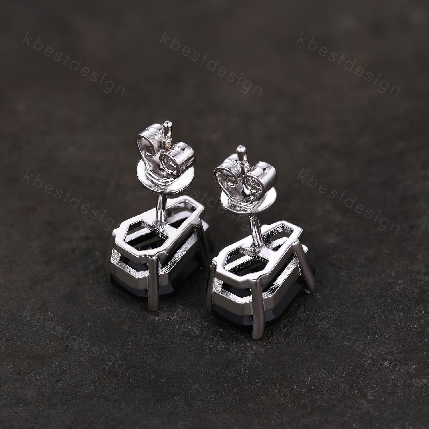 Natural black onyx stud earrings, coffin cut black onyx earring studs, best friend gift, minimalist, tiny studs, anniversary gift for her