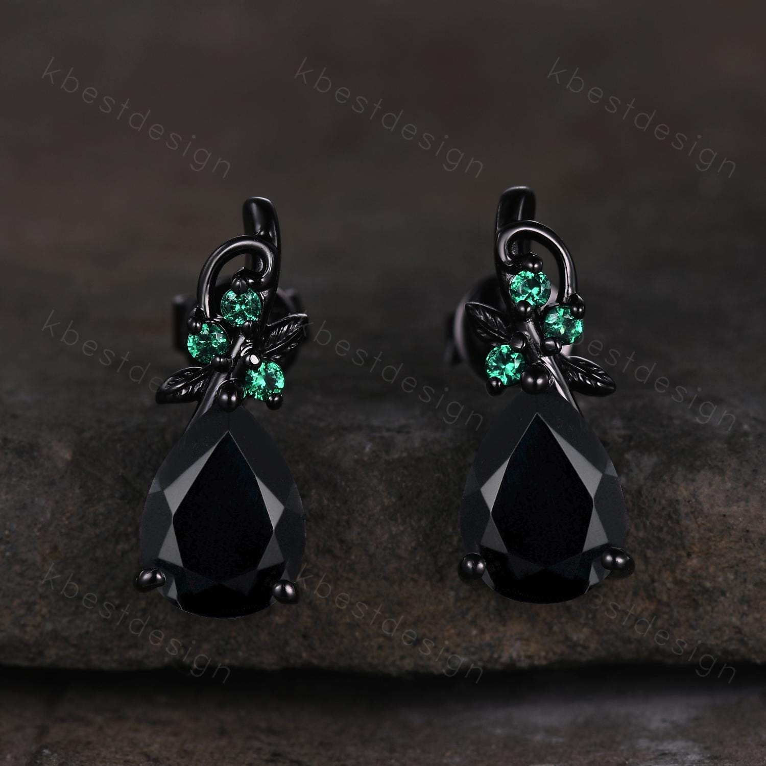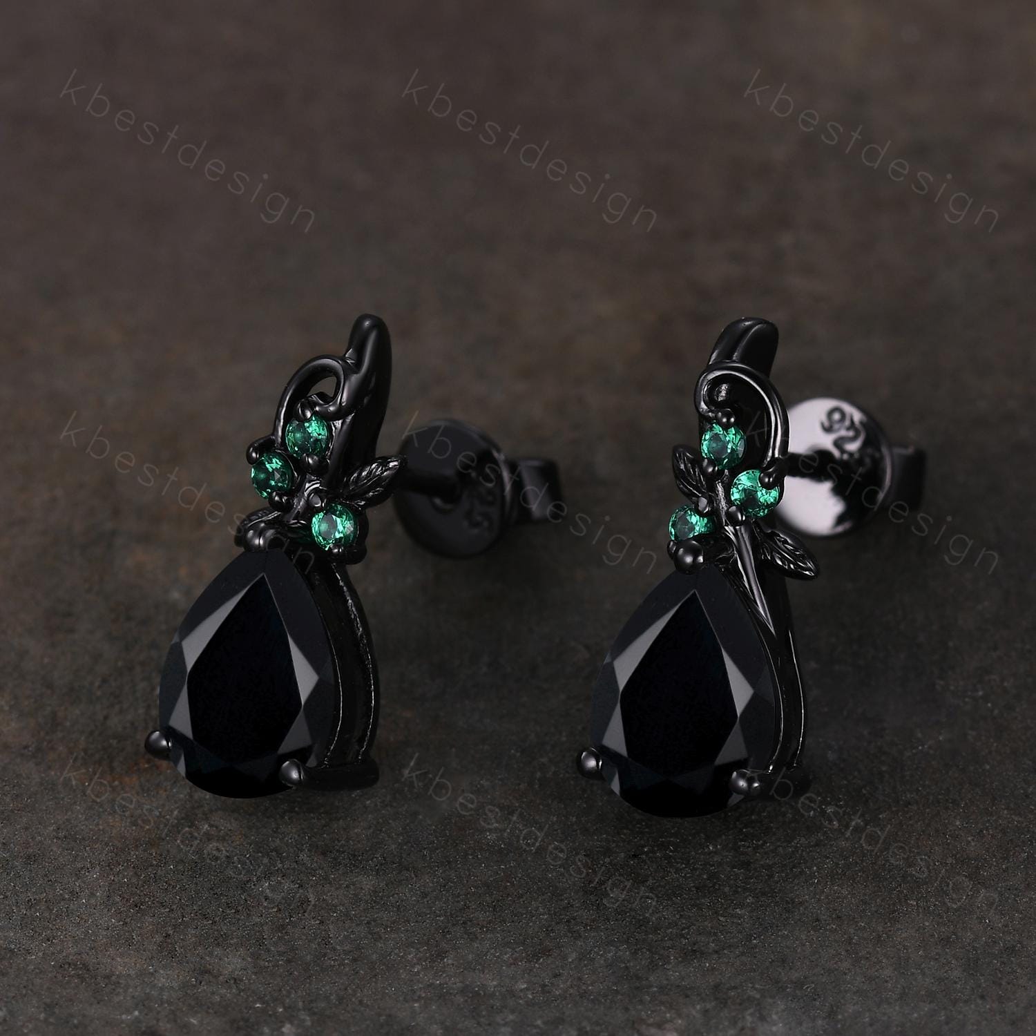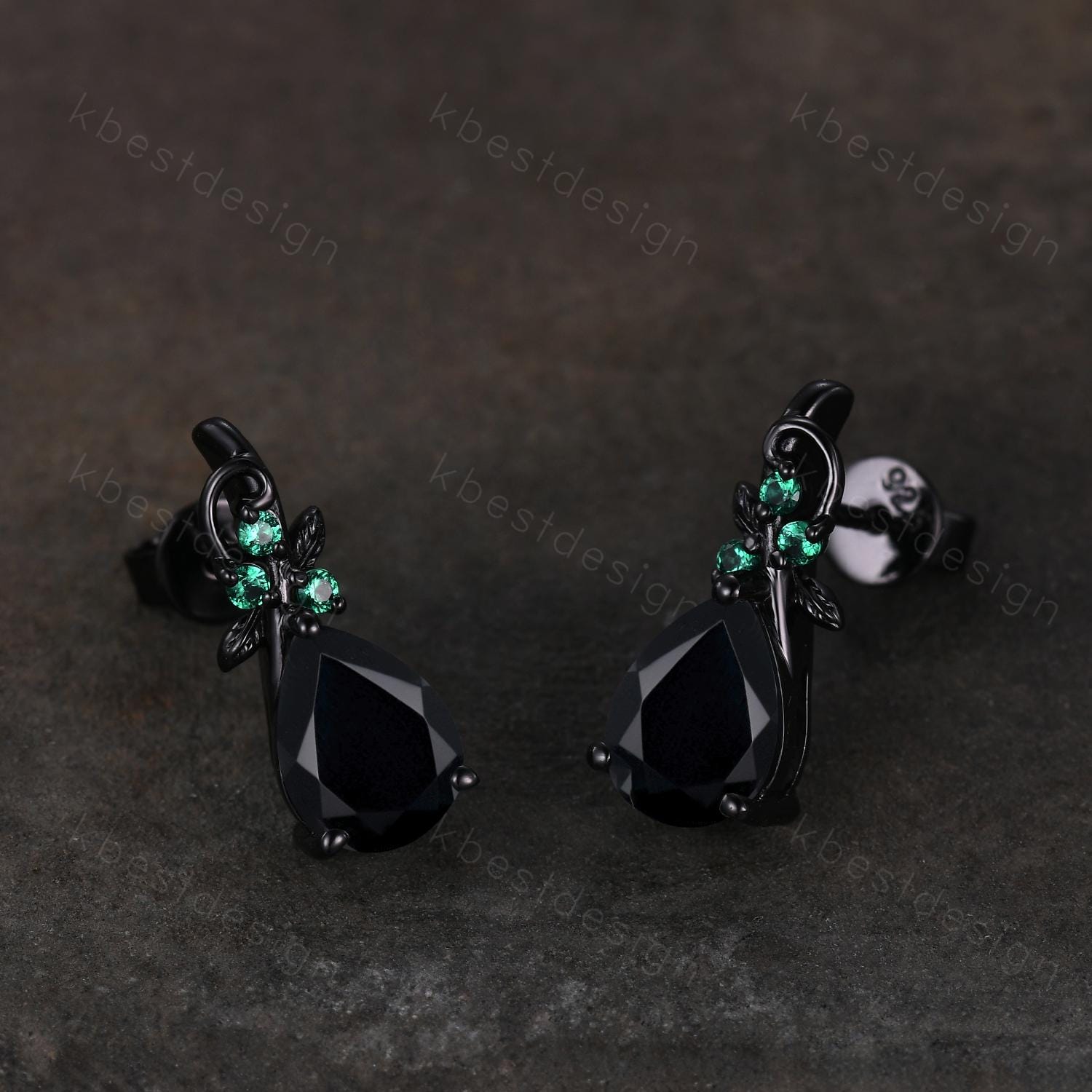 This tiny nature inspired style earrings made with pear cut black onyx. Each pair of earrings is lovingly made with hand selected black onyx to add a little extra shine and magic to your look overall.