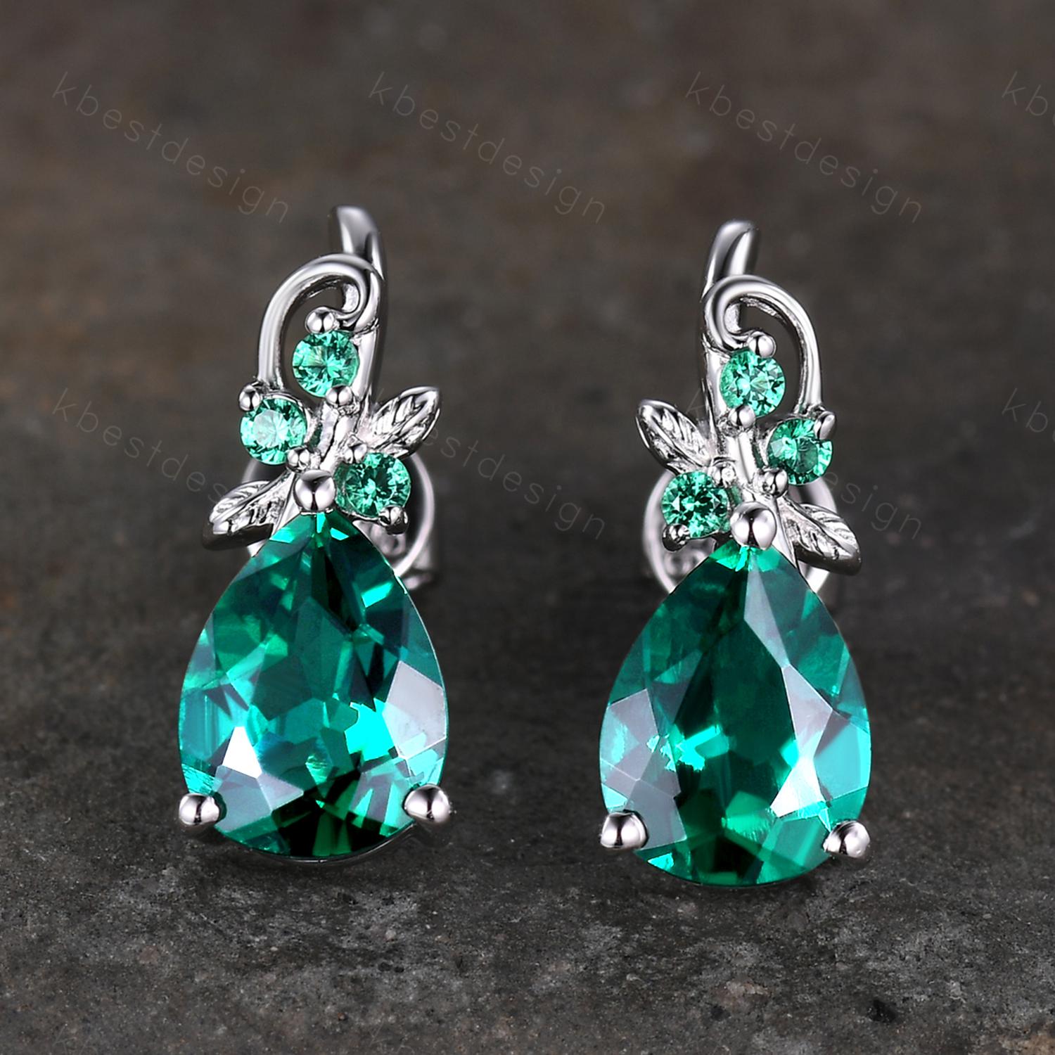Nature inspired emerald earrings women 925 silver earring studs teardrop earrings art deco May birthstone studs anniversary gift for her