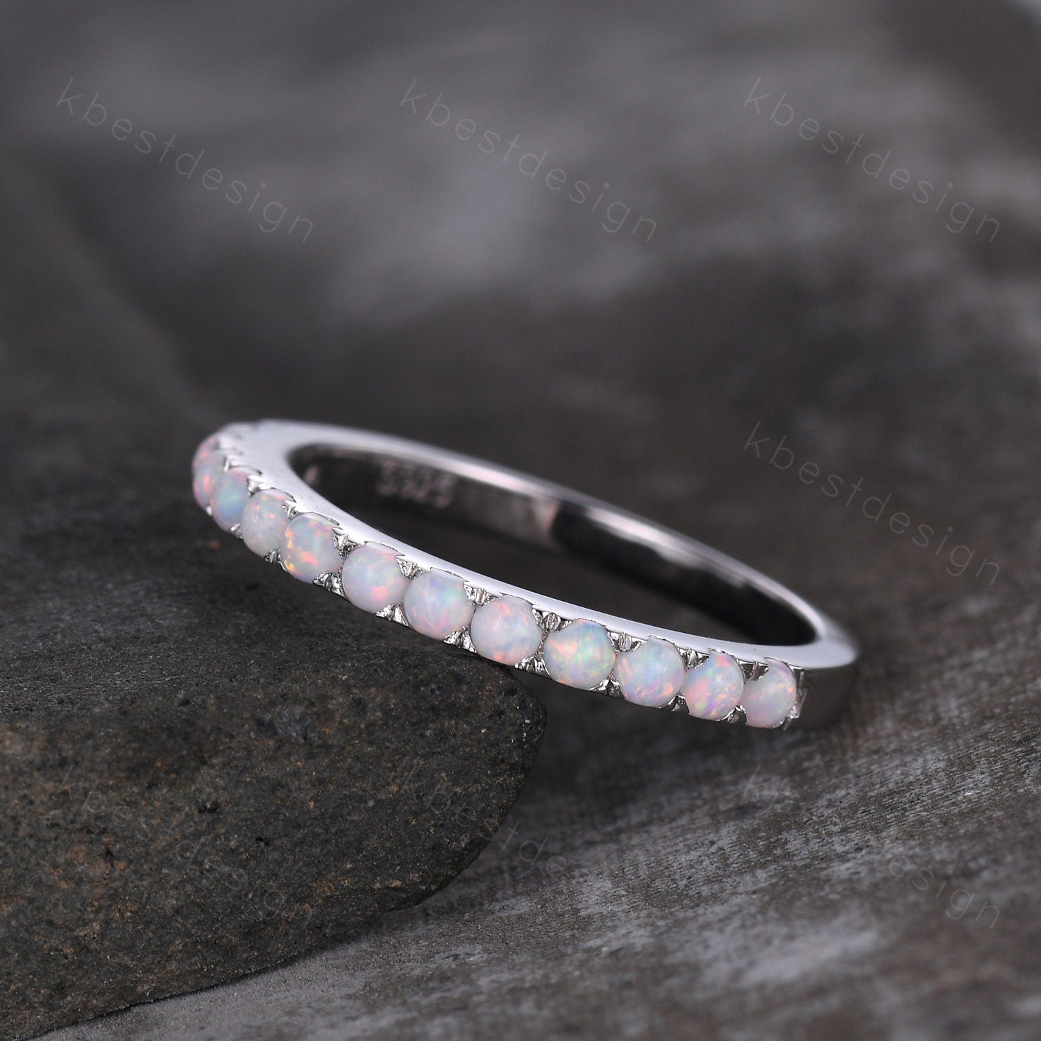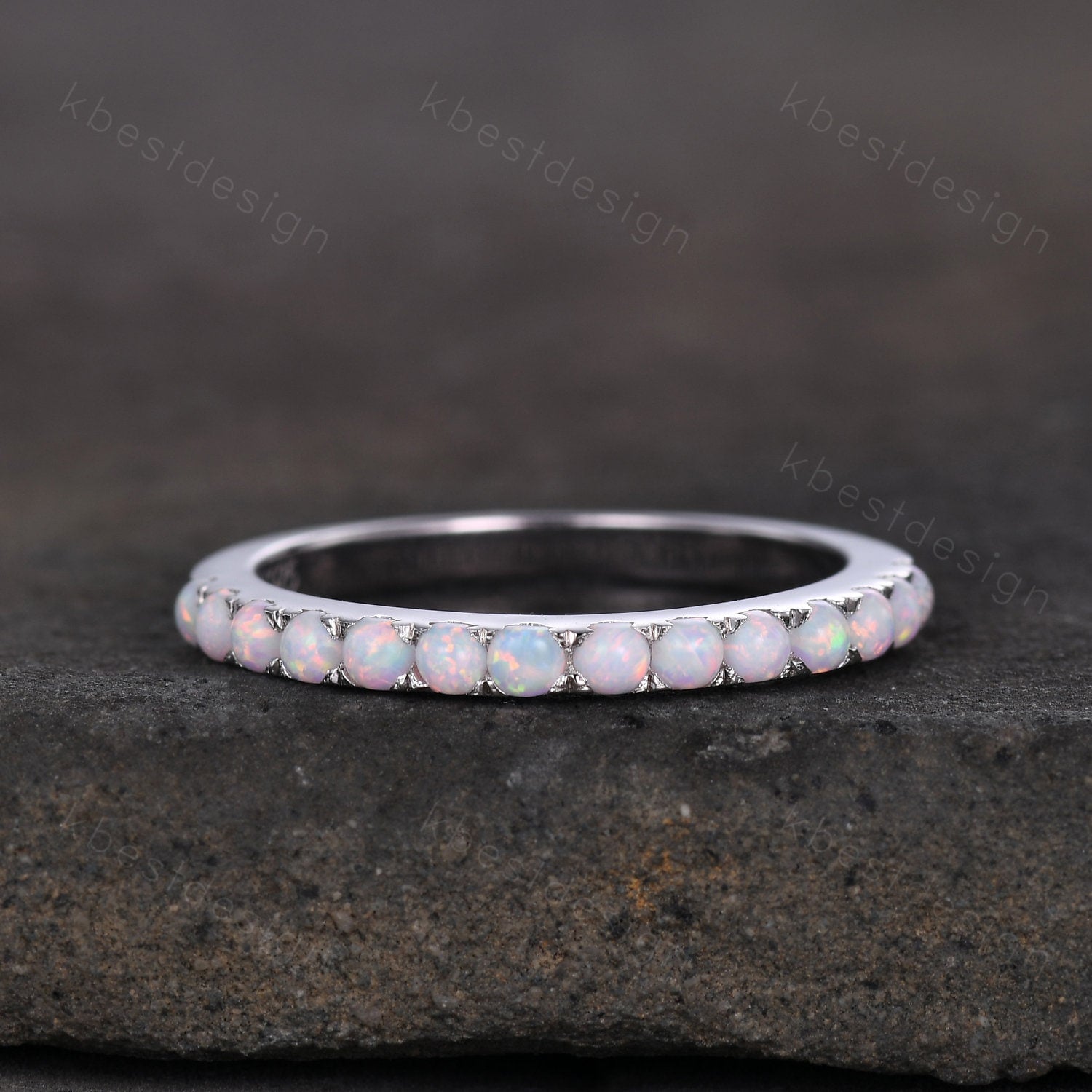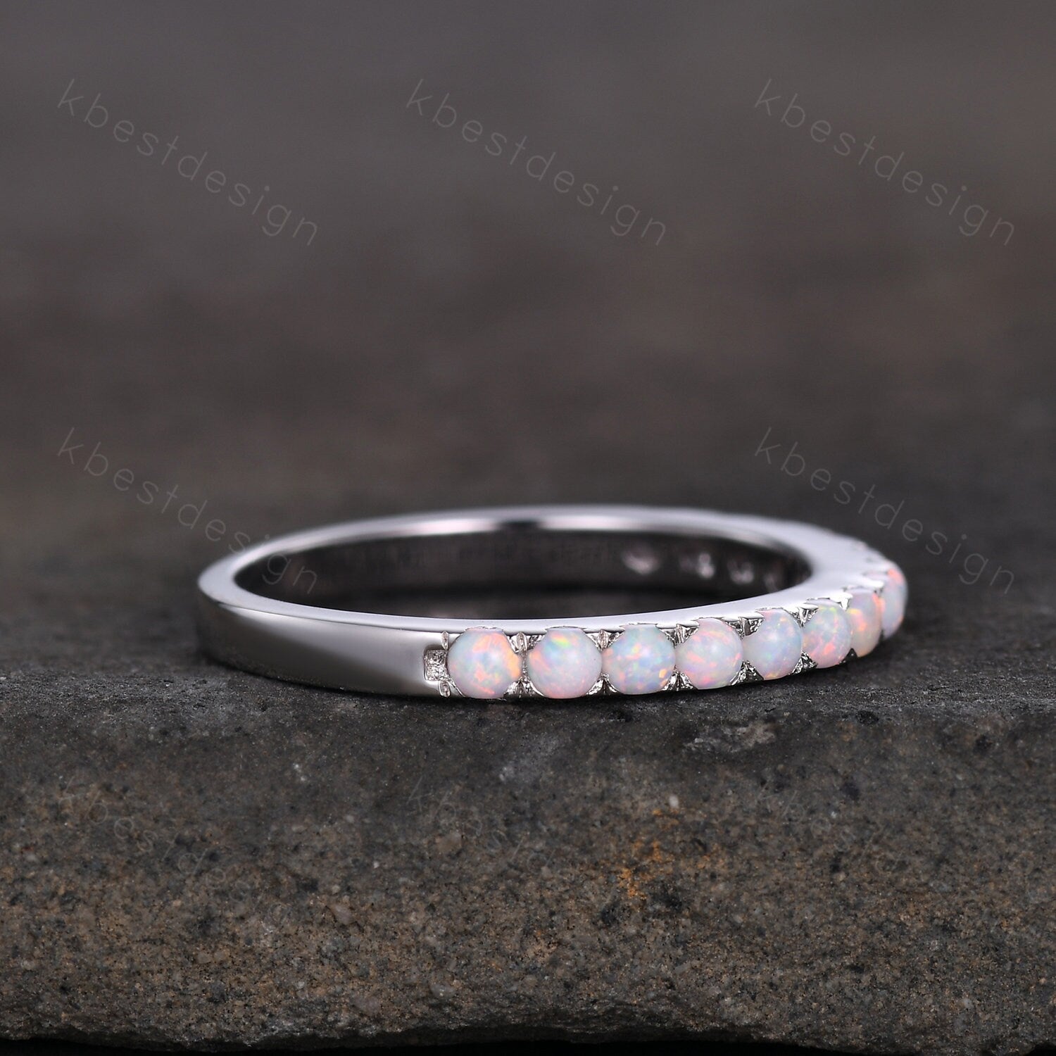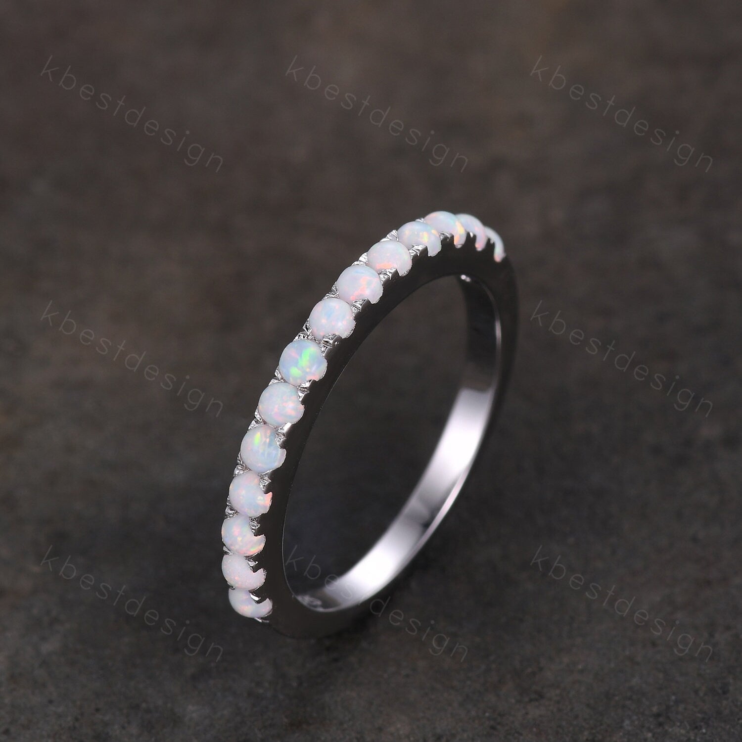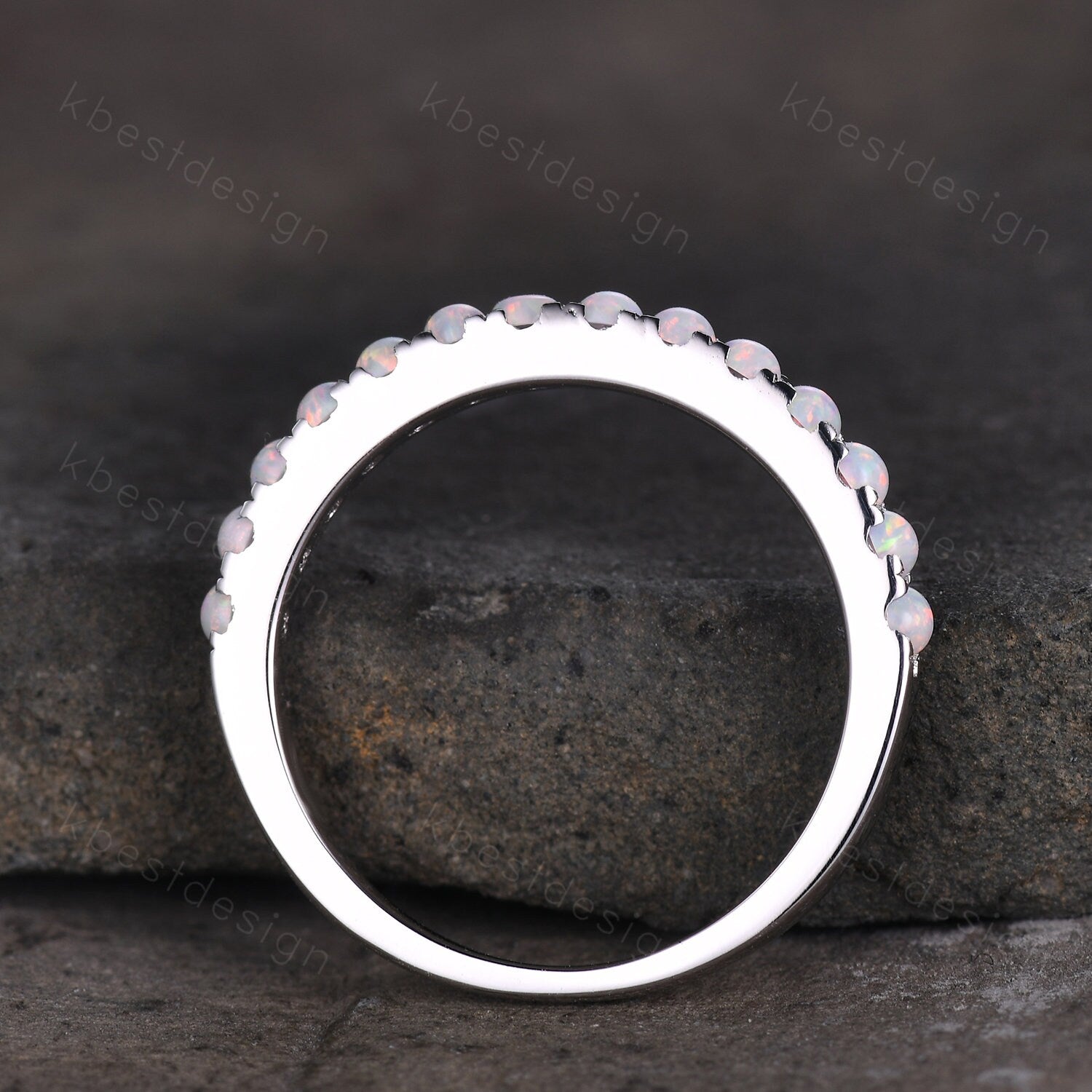 Opal Ring, Half Eternity Opal Wedding Band, Opal Stacking Matching Band, October Birthstone Ring, Anniversary Ring, White Gold Ring