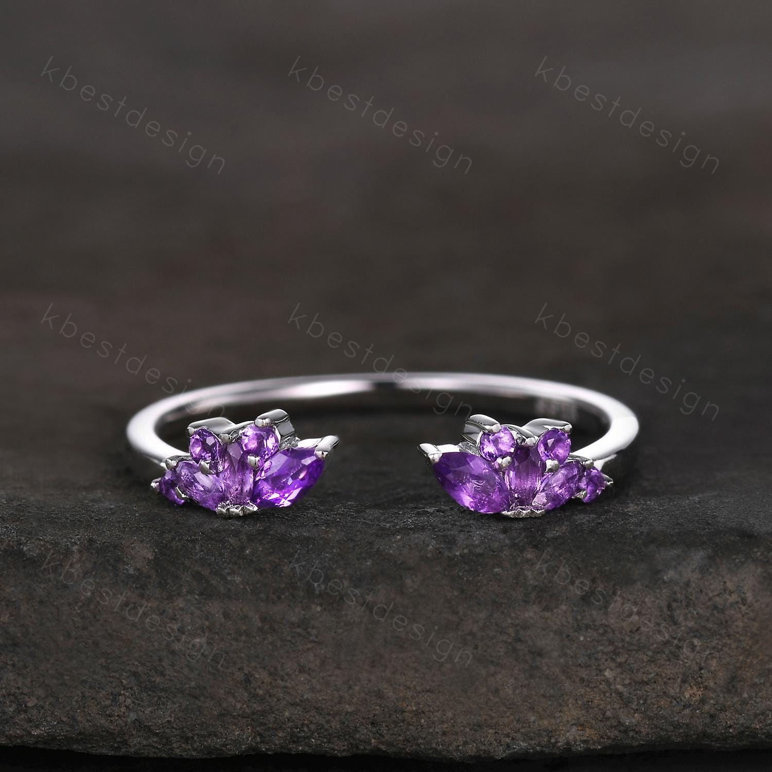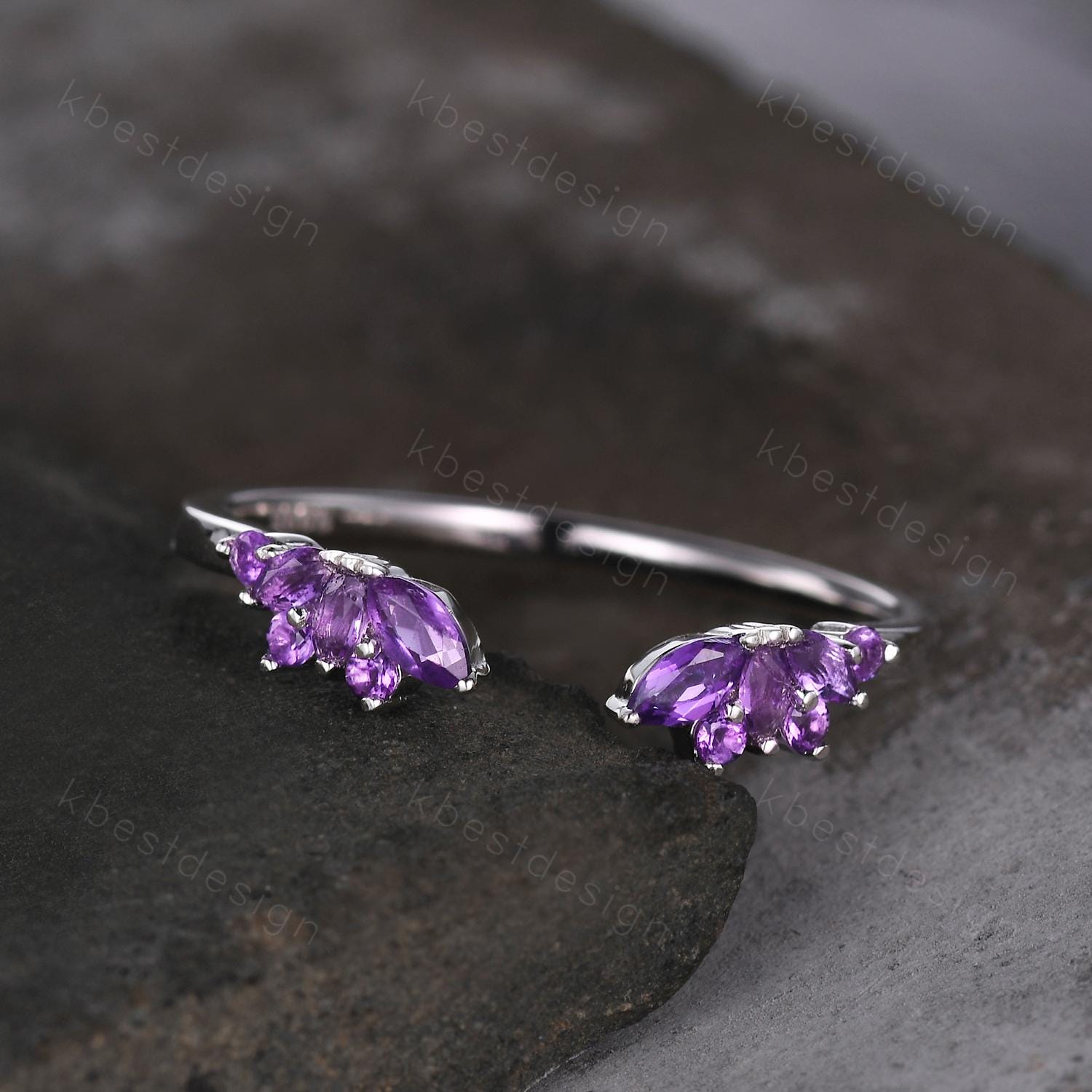 Open gap Amethyst Wedding Band sterling silver vintage petal wedding ring Delicate Stacking matching curved wedding band bridal ring gift