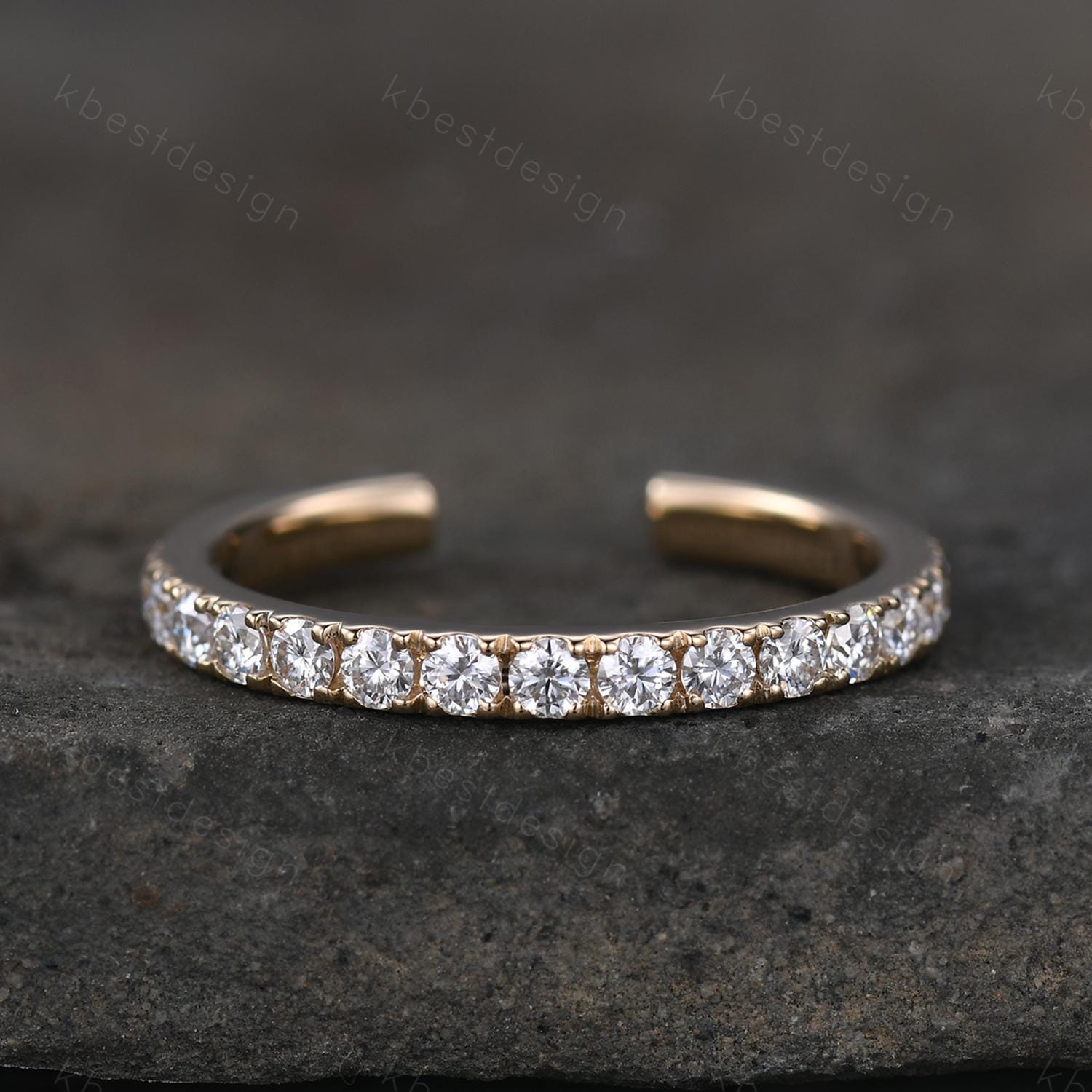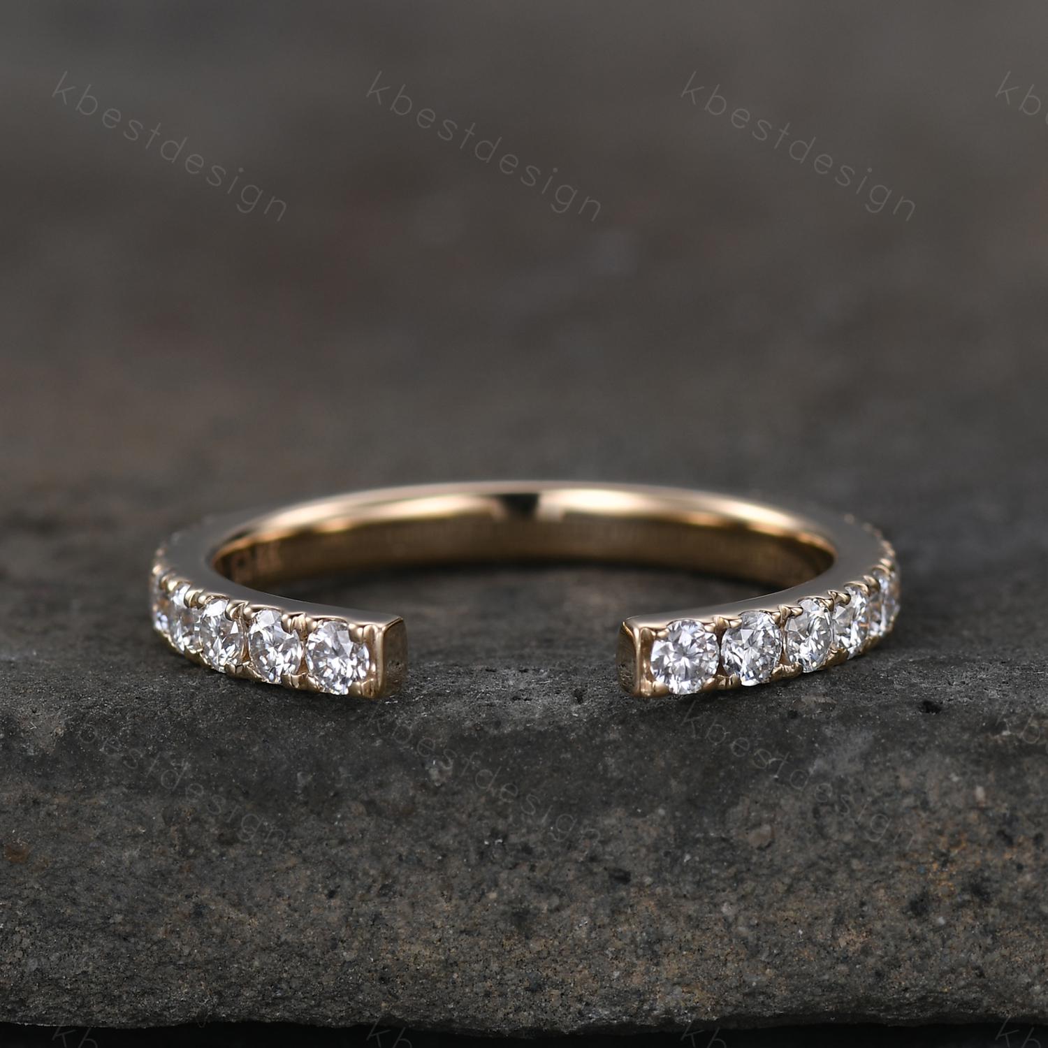 This is a Open Gap Band 2mm Moissanite Wedding Band Eternity Stacking Band Colorless Moissanite Ring Women Matching Band Promise Anniversary Ring