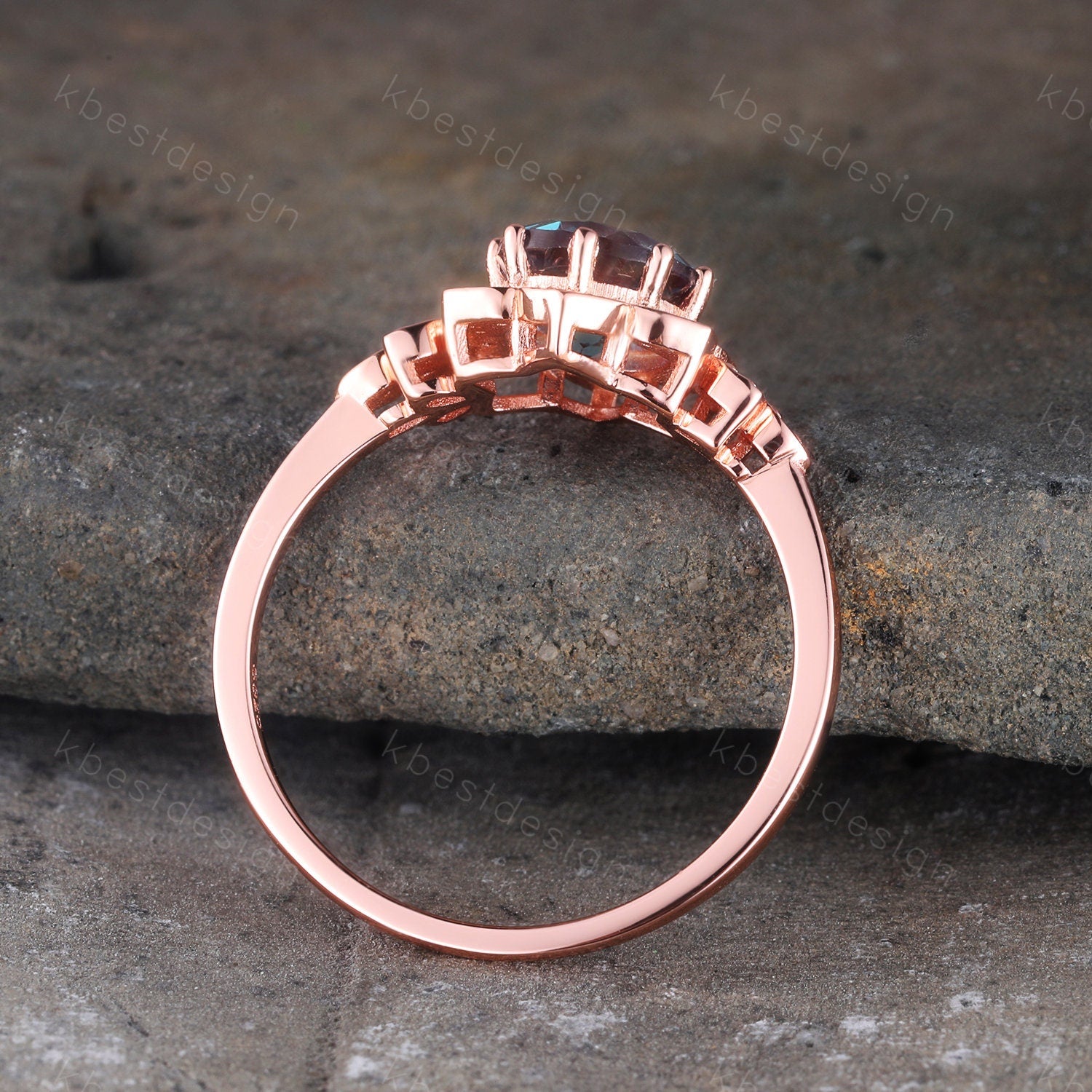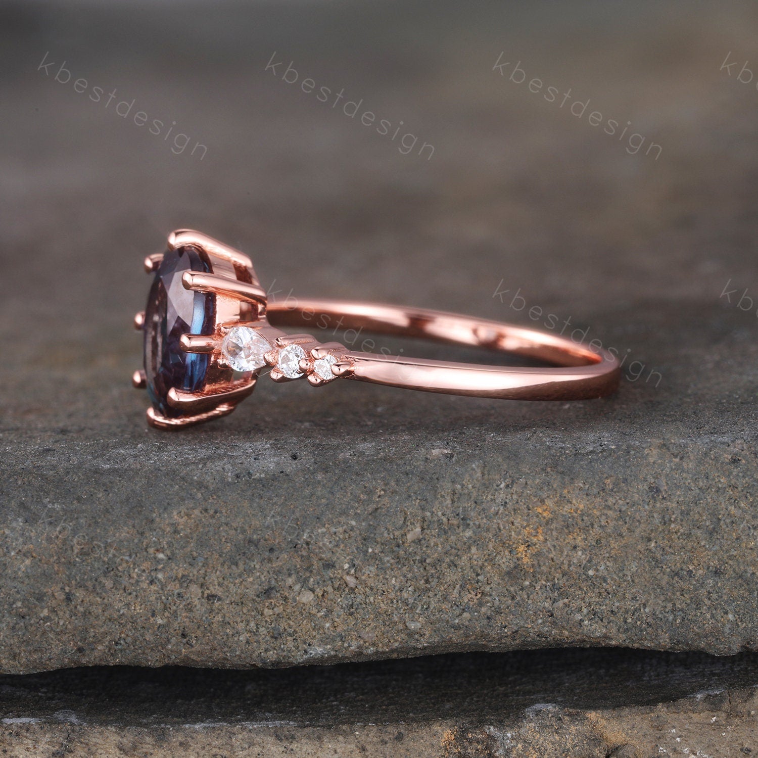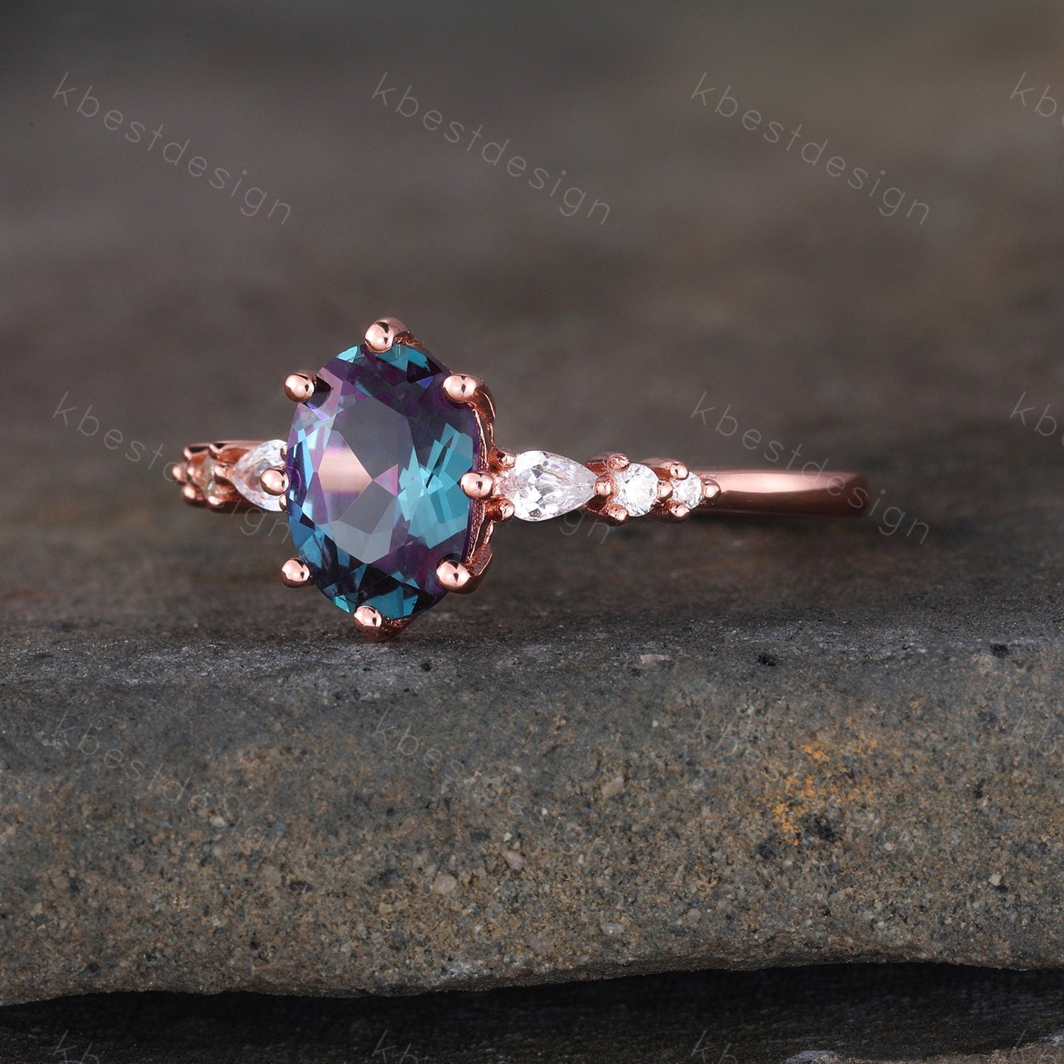 Oval alexandrite engagement ring, wedding ring, color changing stone ring, June birthstone ring, art deco bridal ring promise ring